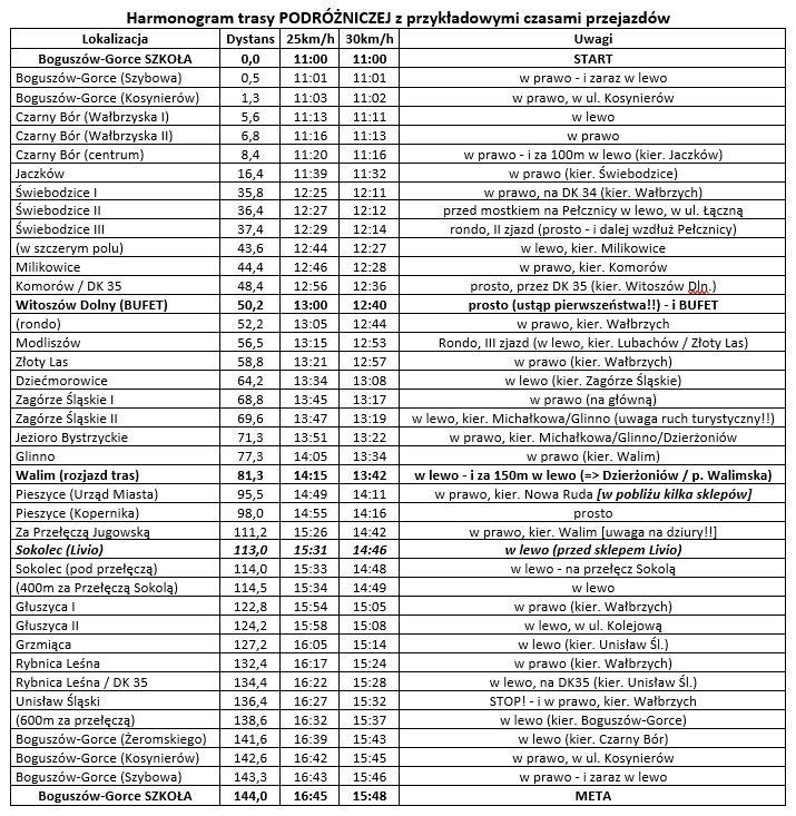 4) w przypadku skrócenia trasy lub zmiany dystansu w trakcie rajdu – prosimy o informację na mecie.