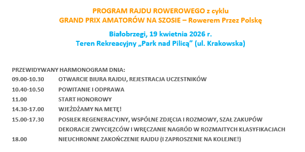 Na drugą część weekendu otwierającego tegoroczną edycję Grand Prix Amatorów na Szosie przenosimy się na Mazowsze! Gospodarzem etapu zupełnie premierowo będą pięknie położone nad Pilicą Białobrzegi, które w tym czasie powinny wiosennie zakwitnąć – a naszym wydarzeniem rozpocząć sezon sportowo-rekreacyjny ![]()