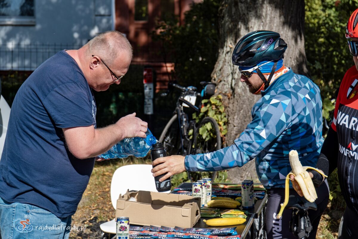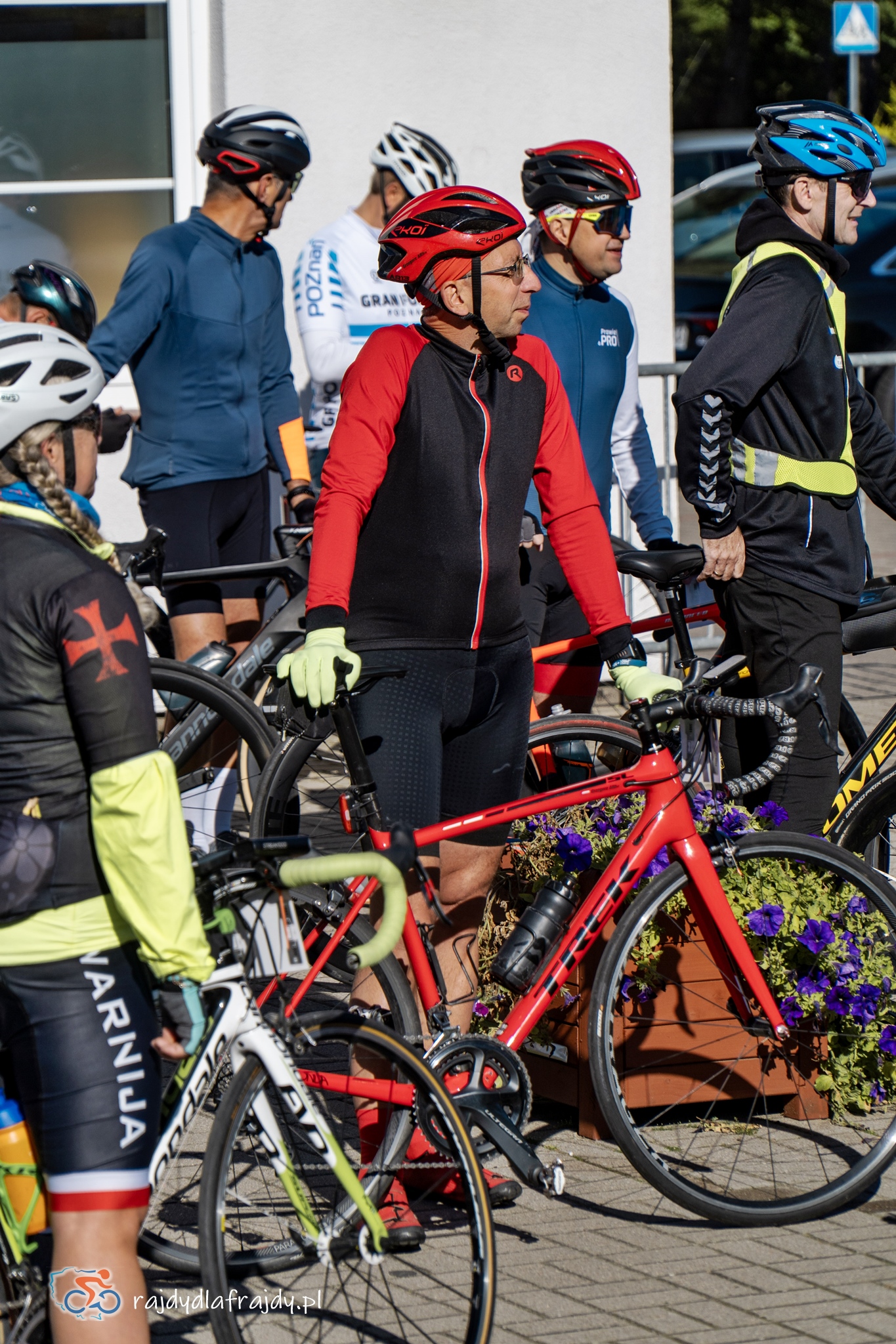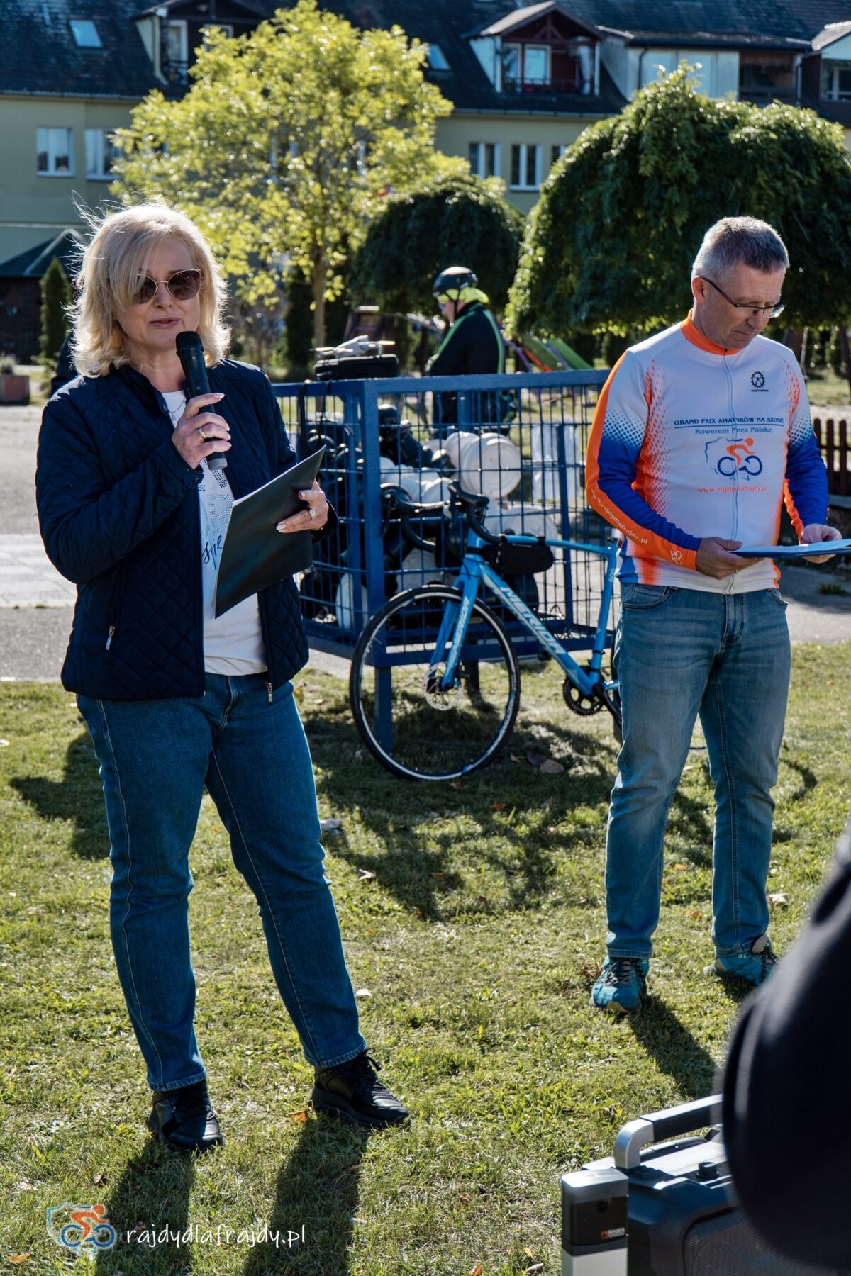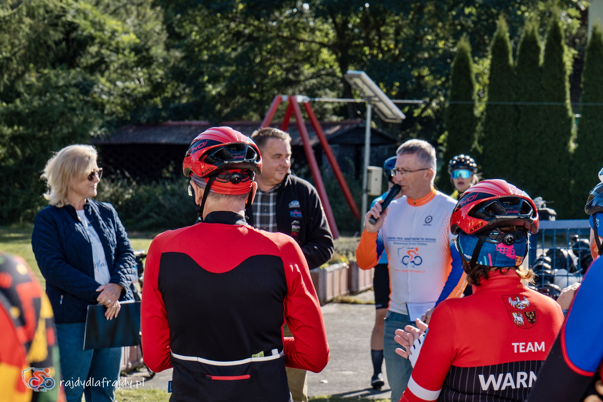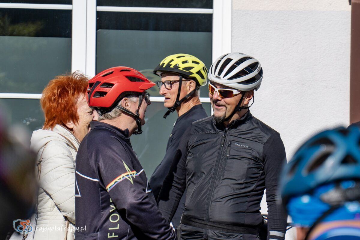 Po tym jak opadły poranne mgły, na dziedzińcu Centrum Kultury i Rekreacji z werwą zaczęli krzątać się ciekawi świata rowerzyści i rowerzystki. Wrześniowe słońce pod kolarskie stroje przebijało się przyjemnie, ale rosnącą ochotę do zabawy zaczął też przejawiać wiatr. Dlatego mimo wielu ciekawostek i opowieści przygotowanych przez przedstawicieli Urzędu Miejskiego nie celebrowaliśmy ponad miarę ceremonii otwarcia – tylko postanowiliśmy żwawo ruszać na przygotowaną rundę. Zarówno początkowe jak i finałowe kilometry prowadziły szlakiem Pojezierzy Zachodnich, czyli trasą wybudowaną w ramach sieci „Rowerem przez Pomorze Zachodnie” – na rozgrzewkę było w sam raz! (podobnie zresztą na nieoczekiwanie wyczerpujące zakończenie