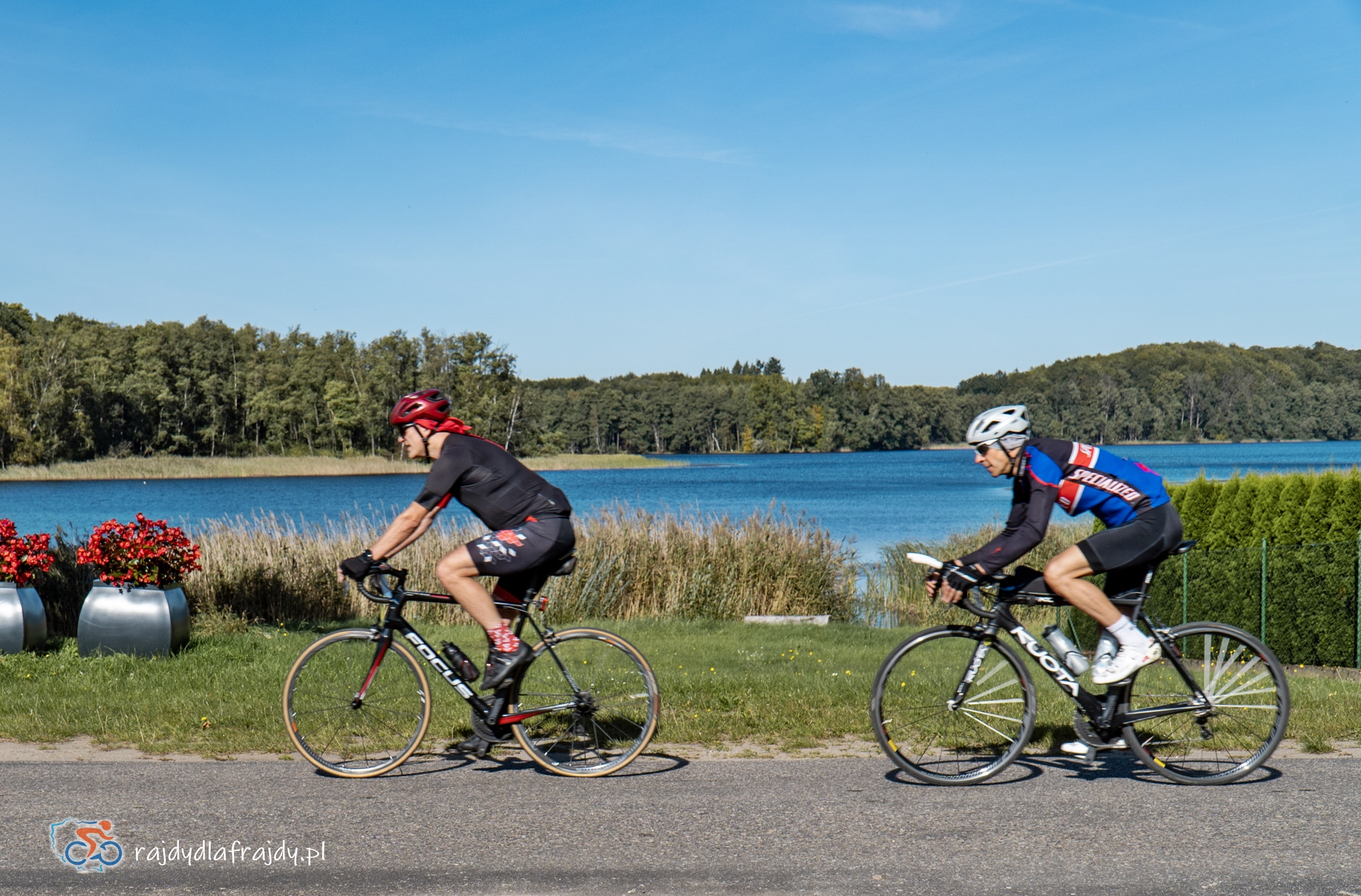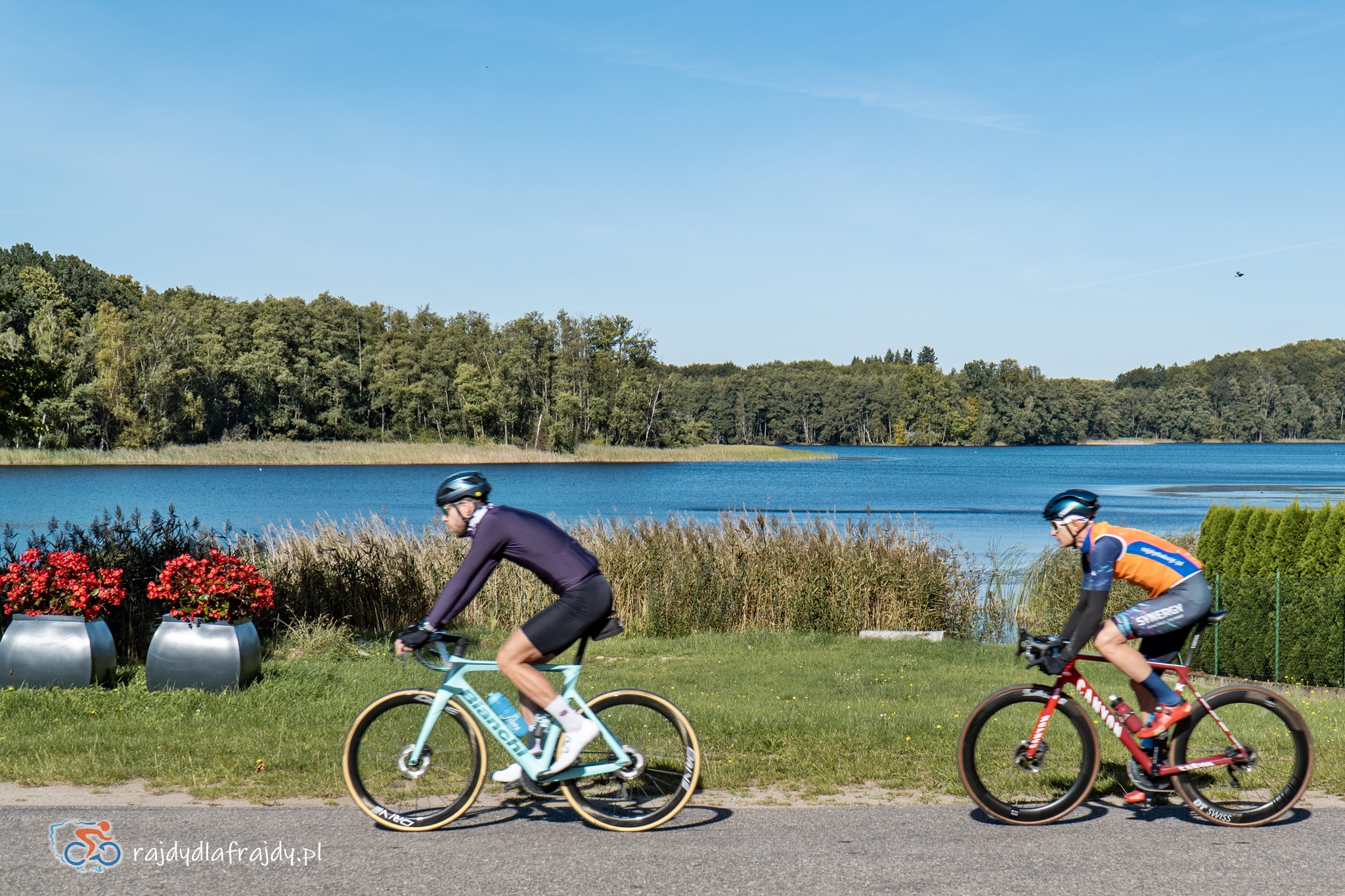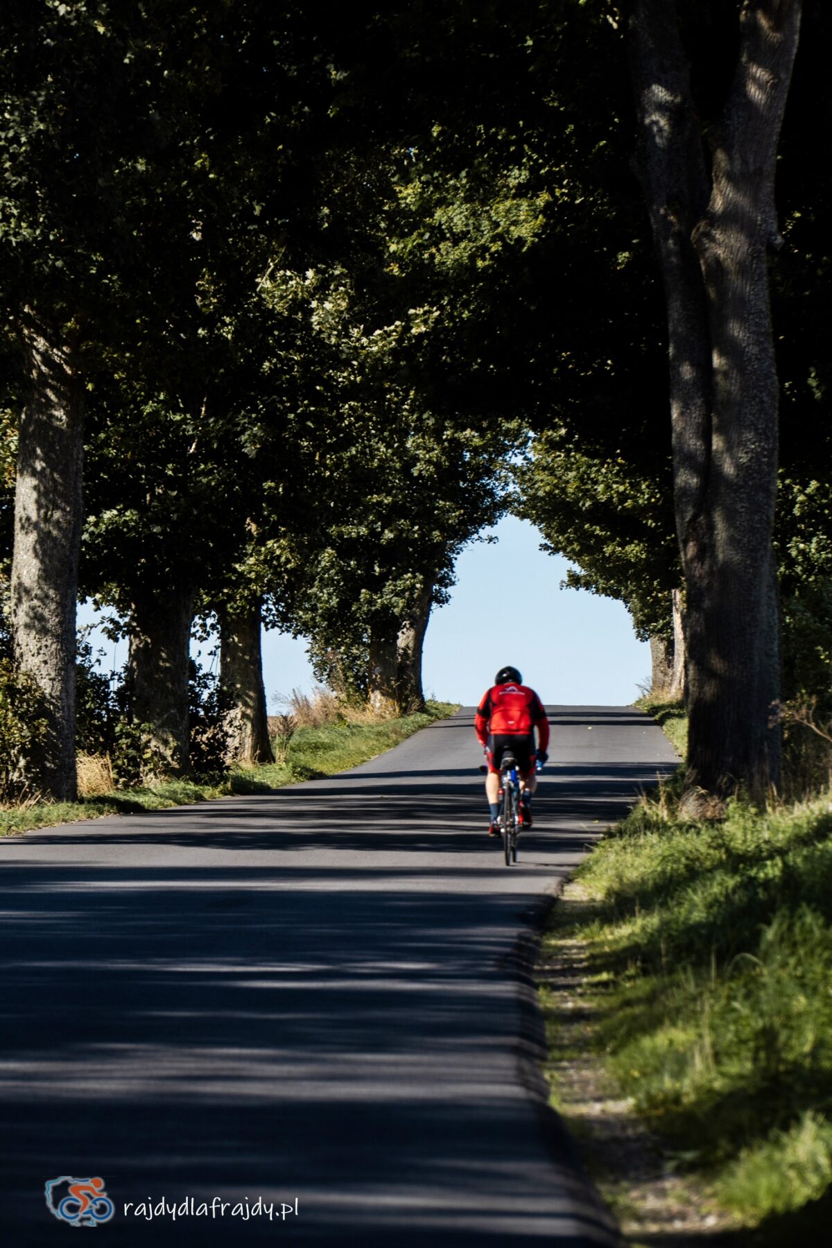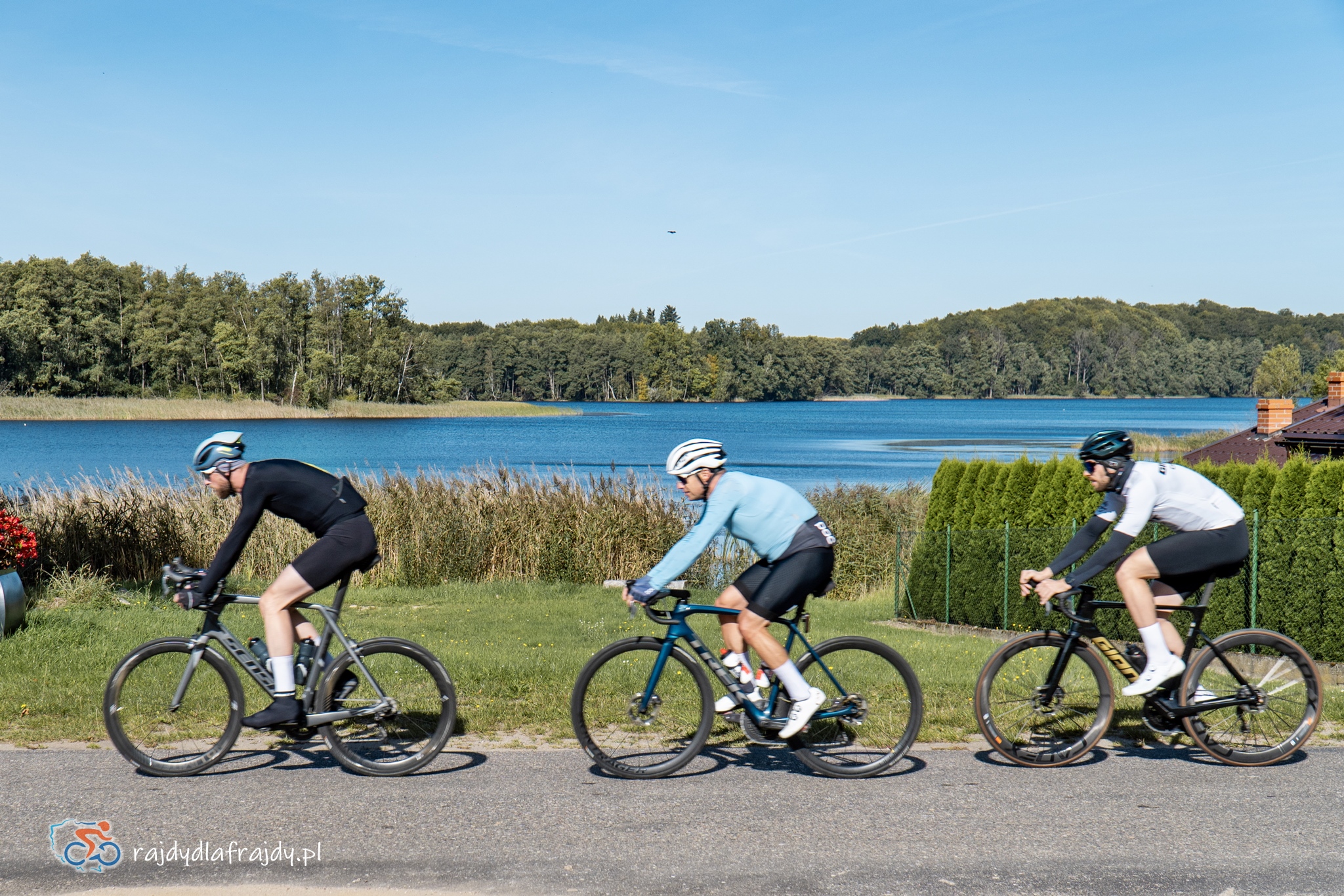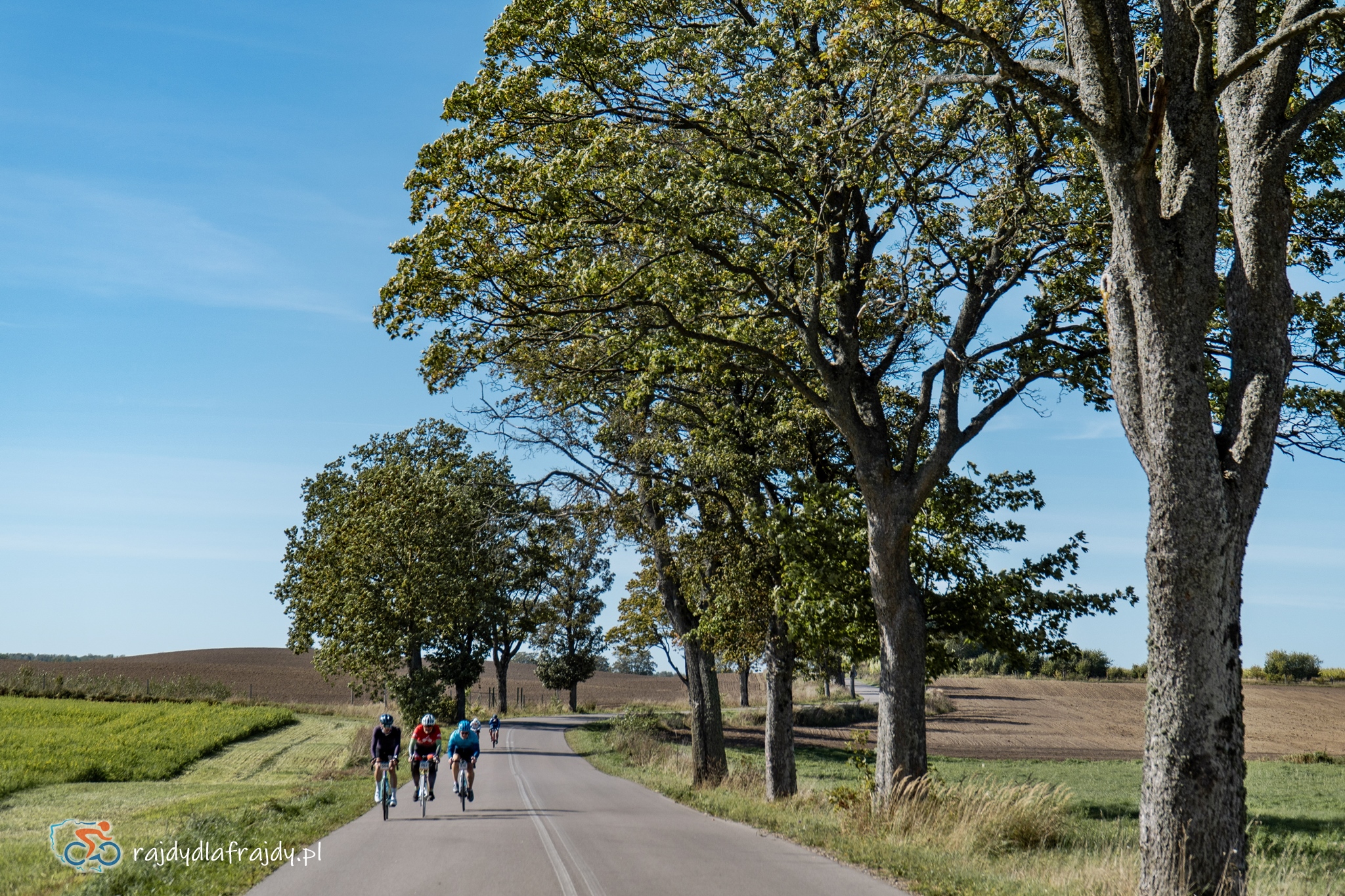 Falowanie wody nie było tego dnia jedynym, ponieważ ku pewnemu zaskoczeniu Uczestników okolica obfituje w niewielkie wzniesienia i pagórki. Jeszcze się człowiek nie zdąży zmęczyć podjeżdżaniem, a już droga wiedzie w dół i rozpędza na nowo! Taki profil terenu utrzymywał się przez większość trasy – tym razem nawet z uwzględnieniem wypłaszczonego odcinka z Chwalimia do Barwic, gdzie trochę niespodziewanie zwinęli stary asfalt i jeszcze nie do końca zdążyli położyć nowy (więc też przez chwilę falowało