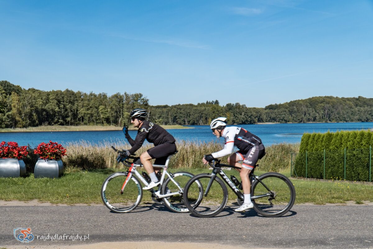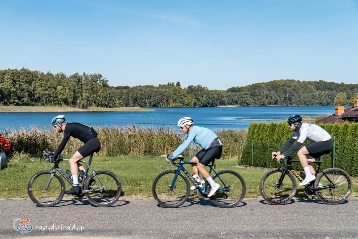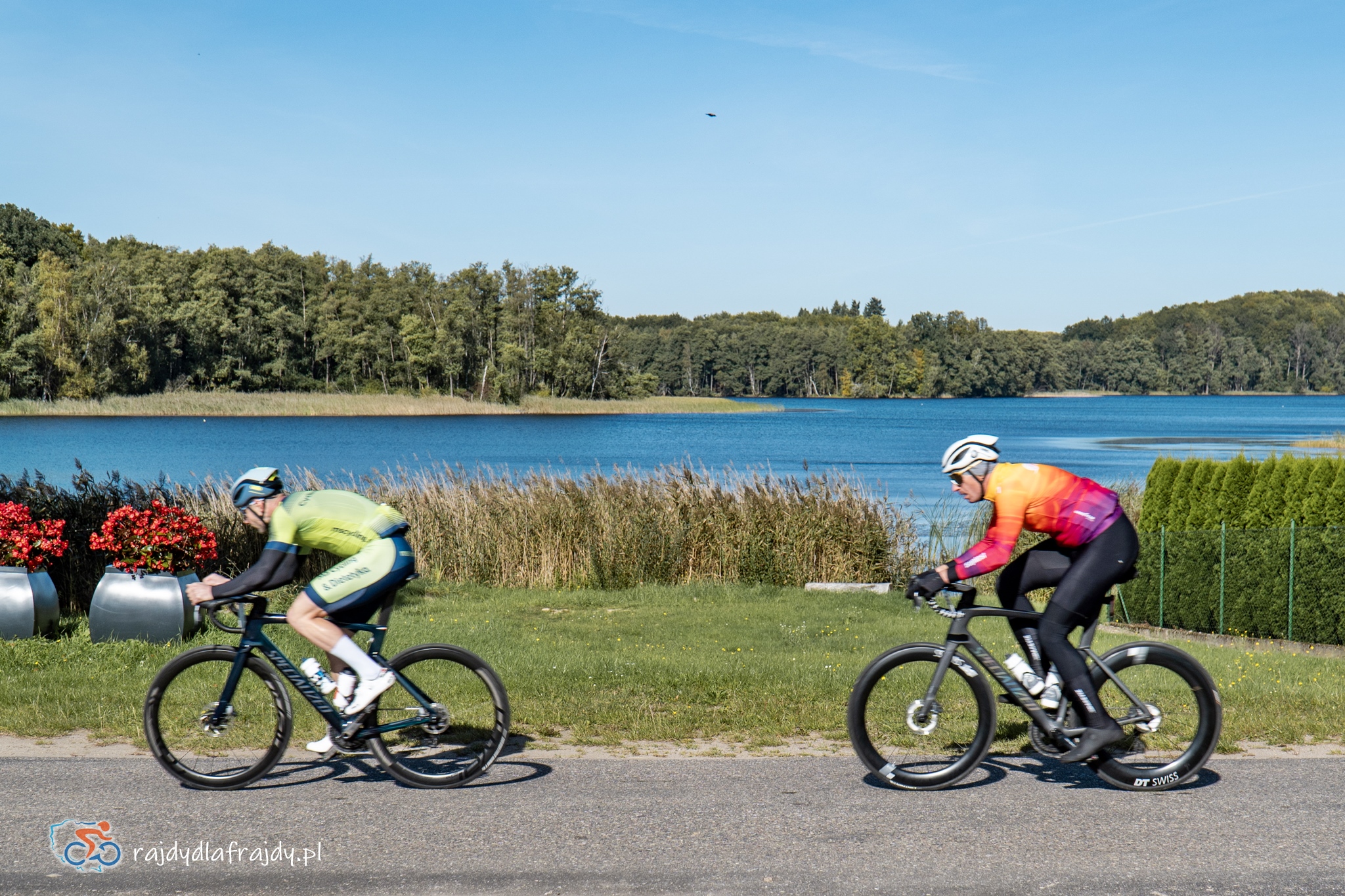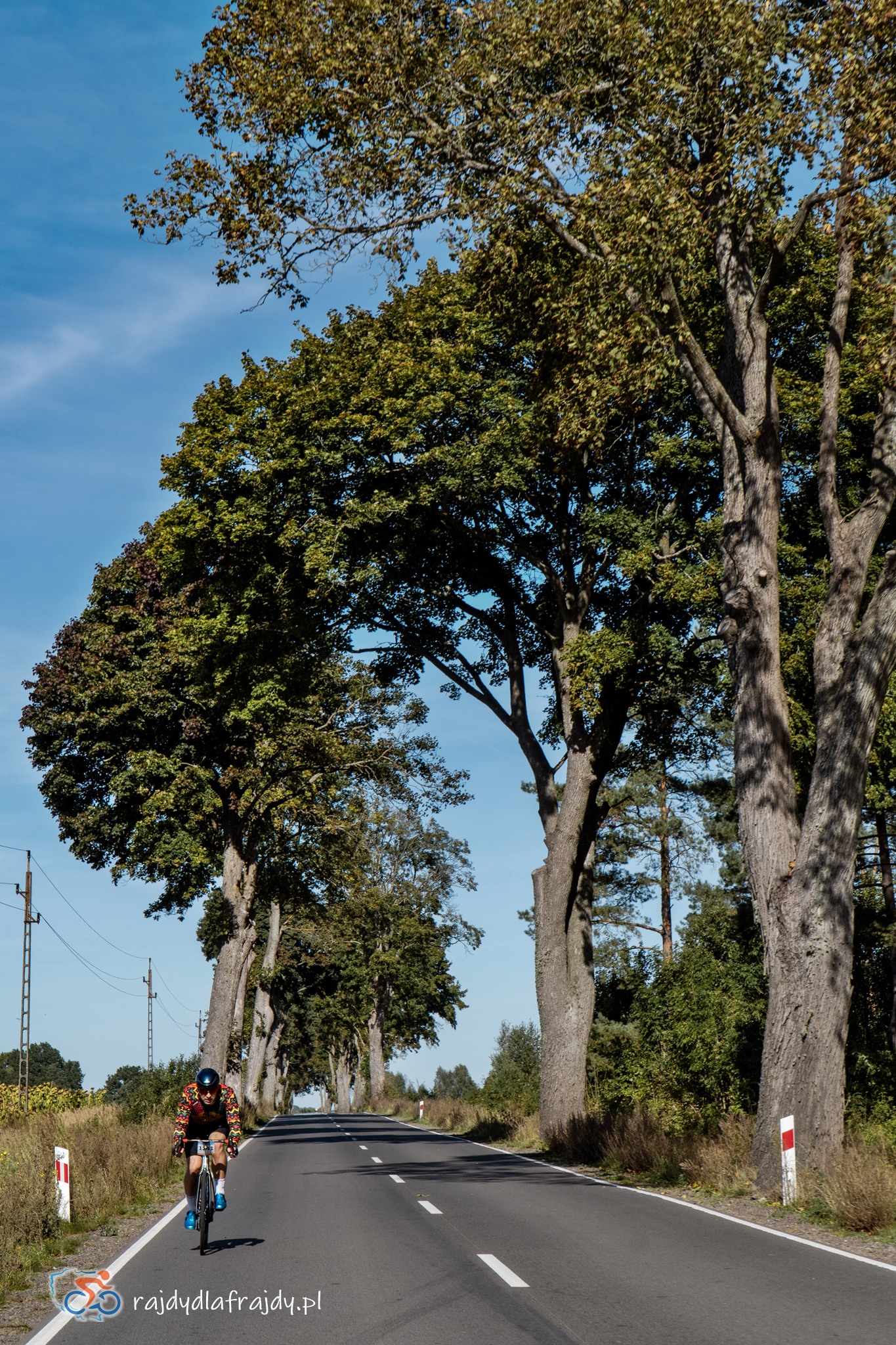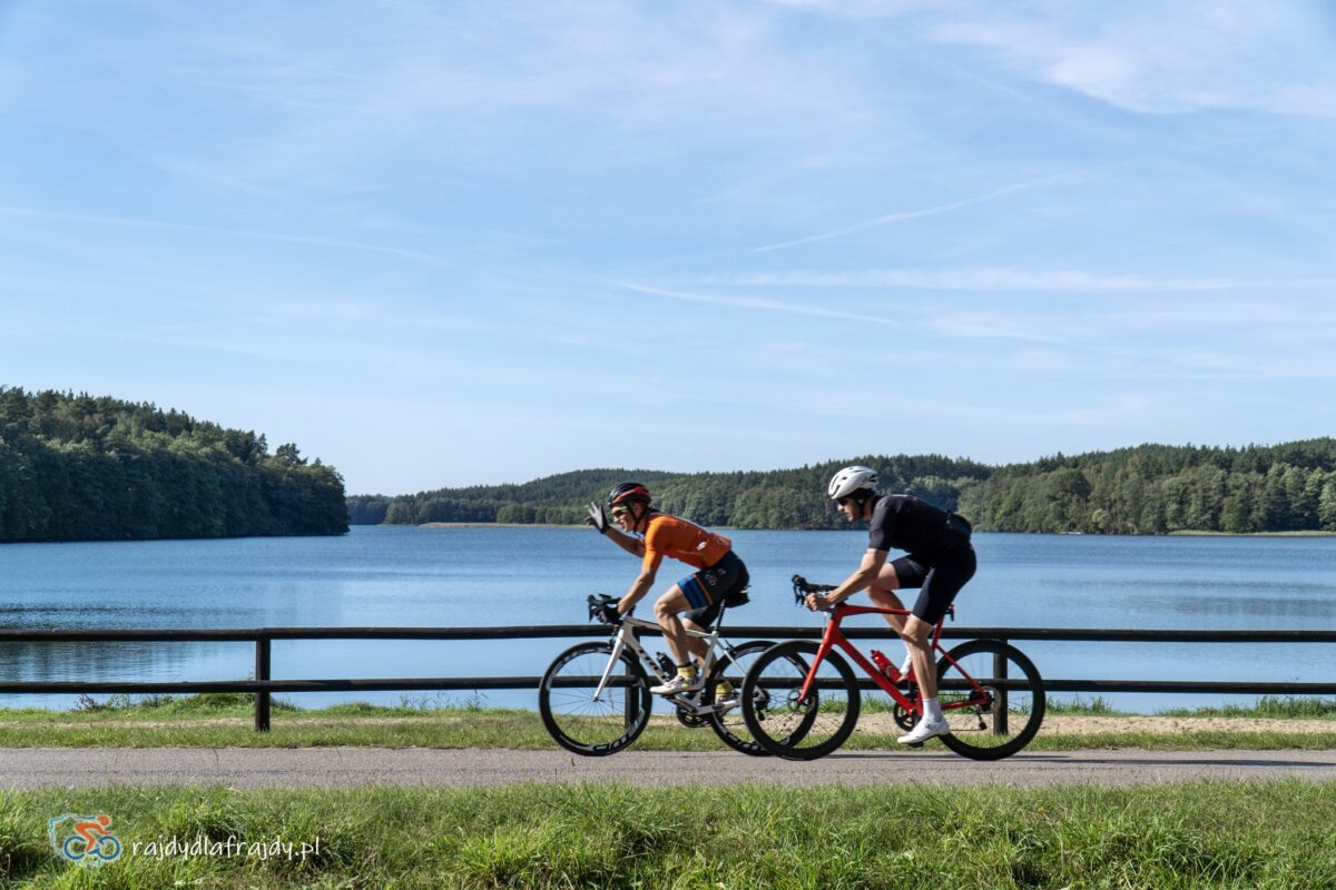 Falowanie wody nie było tego dnia jedynym, ponieważ ku pewnemu zaskoczeniu Uczestników okolica obfituje w niewielkie wzniesienia i pagórki. Jeszcze się człowiek nie zdąży zmęczyć podjeżdżaniem, a już droga wiedzie w dół i rozpędza na nowo! Taki profil terenu utrzymywał się przez większość trasy – tym razem nawet z uwzględnieniem wypłaszczonego odcinka z Chwalimia do Barwic, gdzie trochę niespodziewanie zwinęli stary asfalt i jeszcze nie do końca zdążyli położyć nowy (więc też przez chwilę falowało