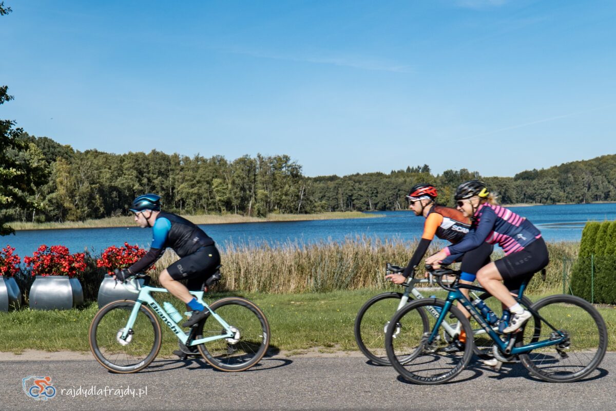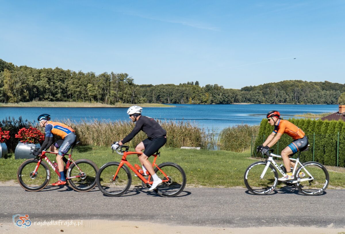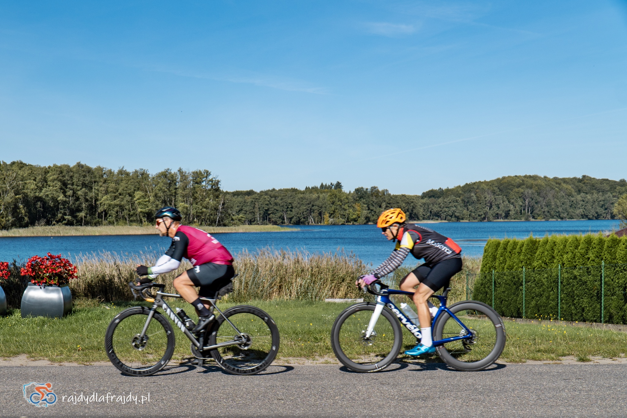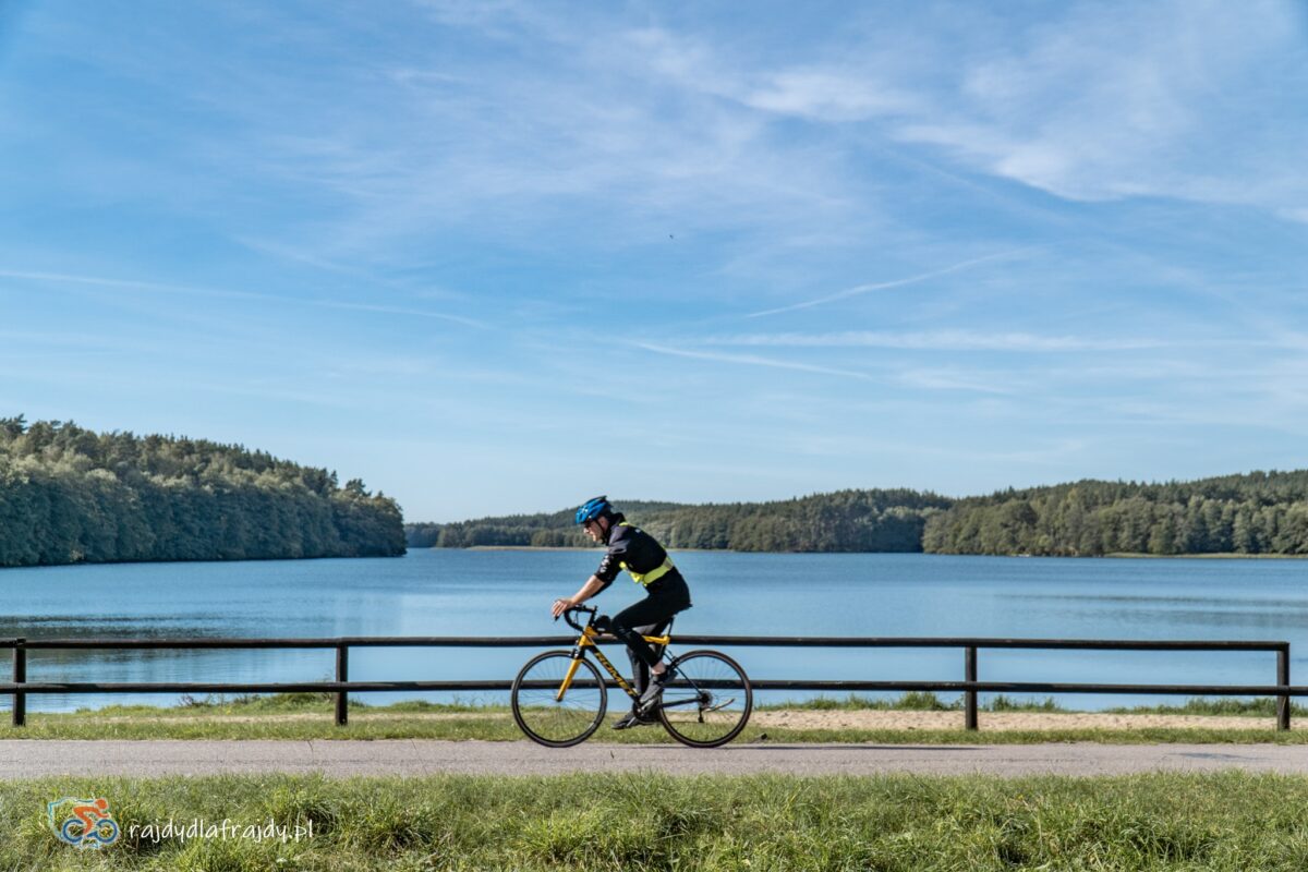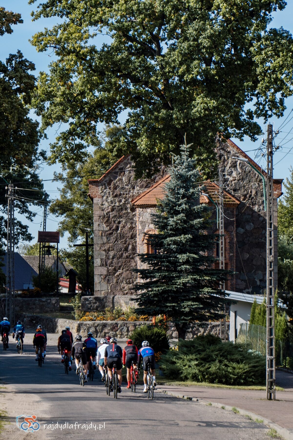 Falowanie wody nie było tego dnia jedynym, ponieważ ku pewnemu zaskoczeniu Uczestników okolica obfituje w niewielkie wzniesienia i pagórki. Jeszcze się człowiek nie zdąży zmęczyć podjeżdżaniem, a już droga wiedzie w dół i rozpędza na nowo! Taki profil terenu utrzymywał się przez większość trasy – tym razem nawet z uwzględnieniem wypłaszczonego odcinka z Chwalimia do Barwic, gdzie trochę niespodziewanie zwinęli stary asfalt i jeszcze nie do końca zdążyli położyć nowy (więc też przez chwilę falowało
