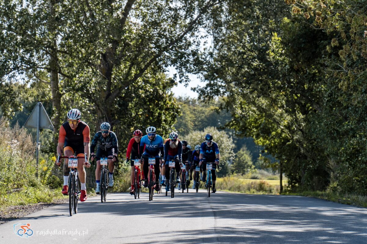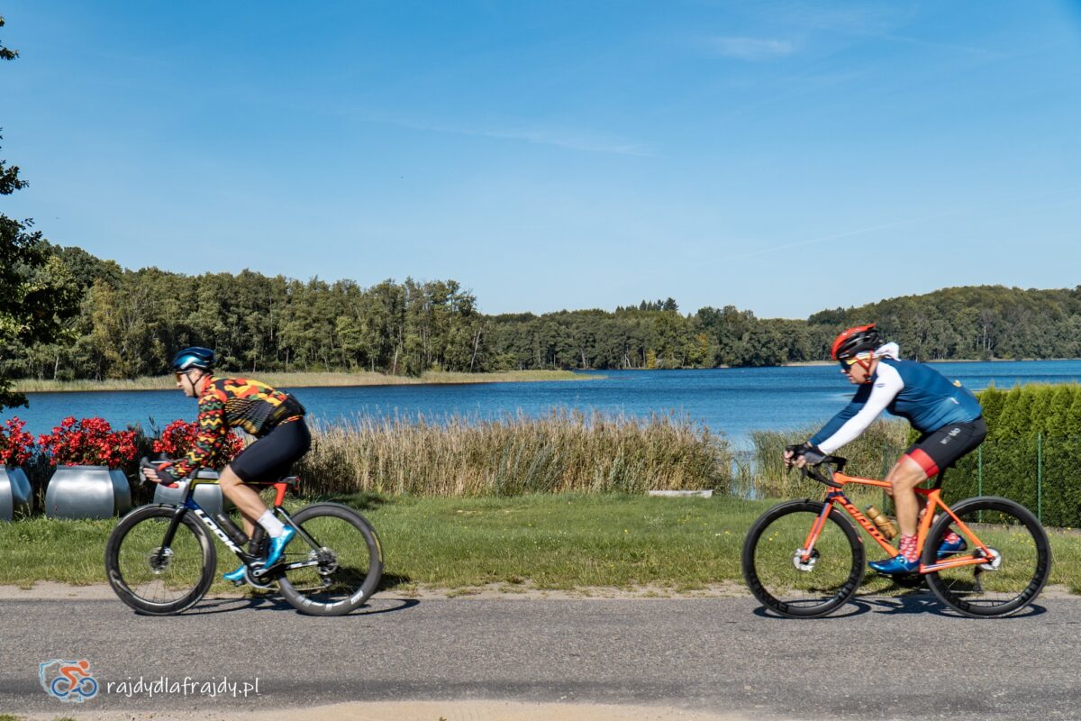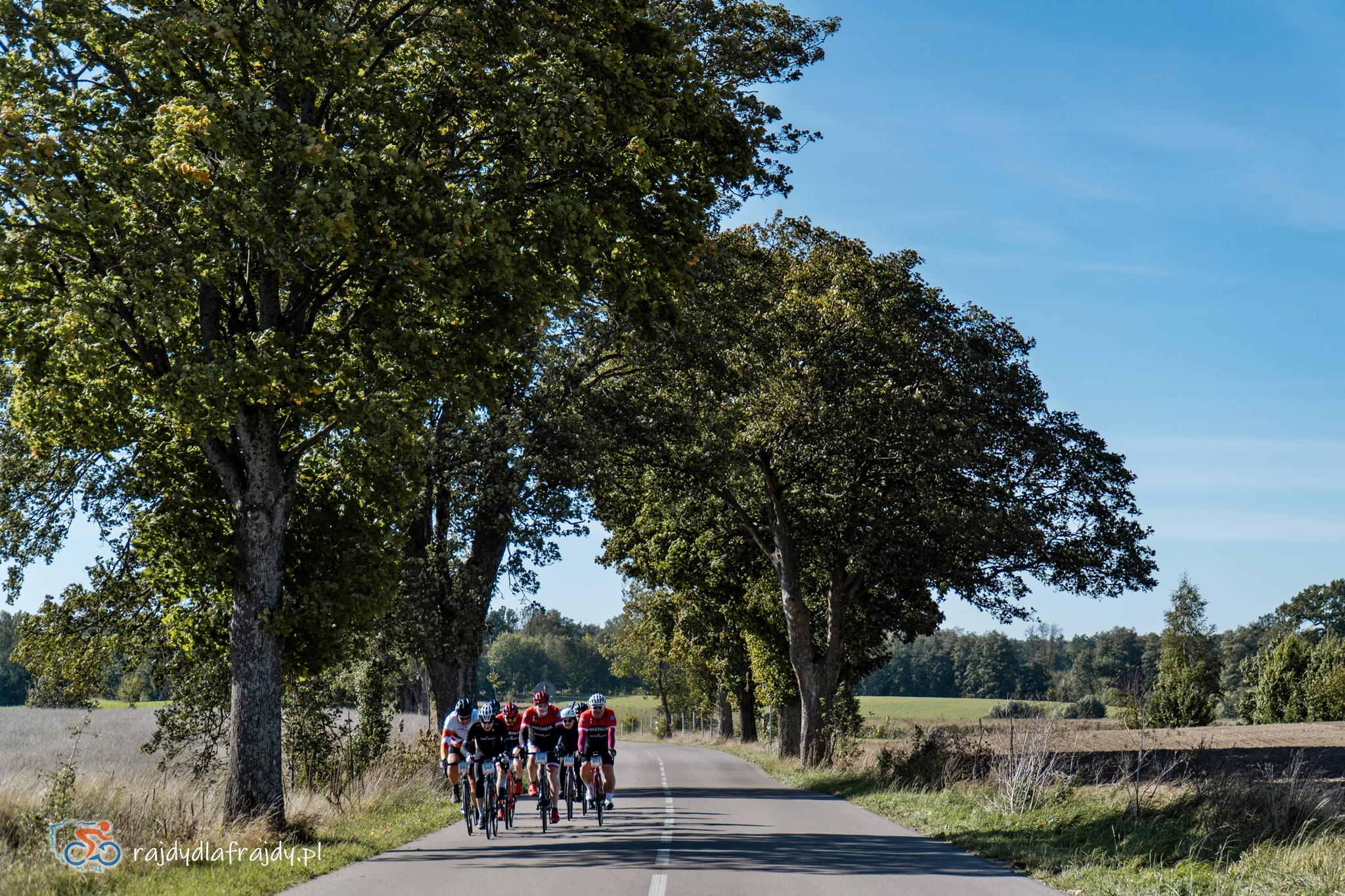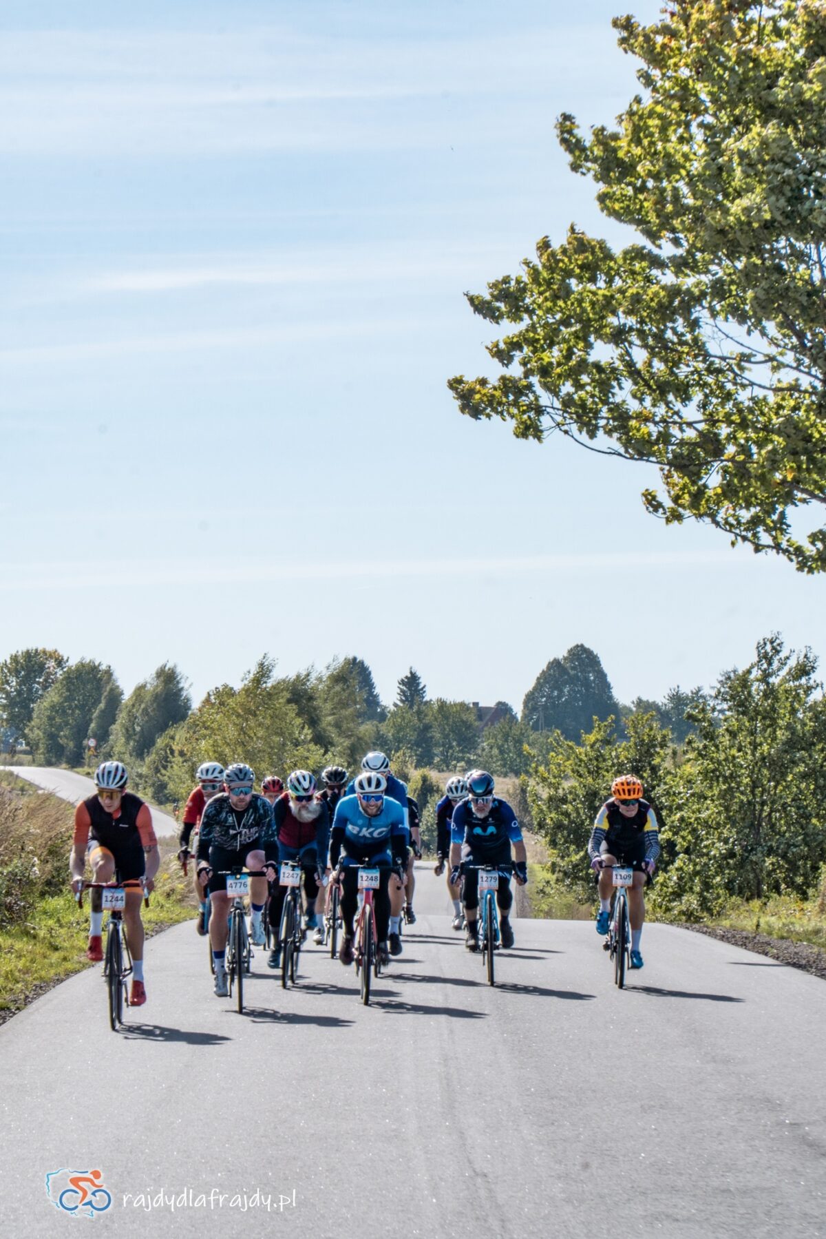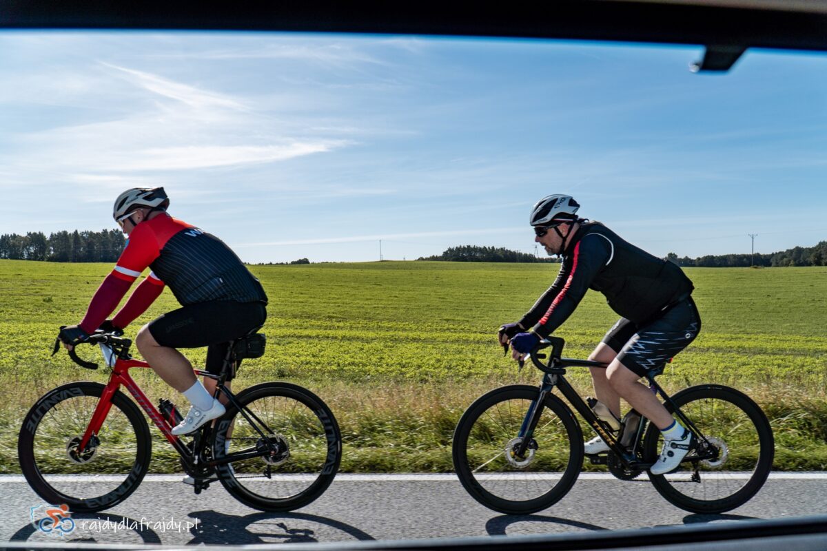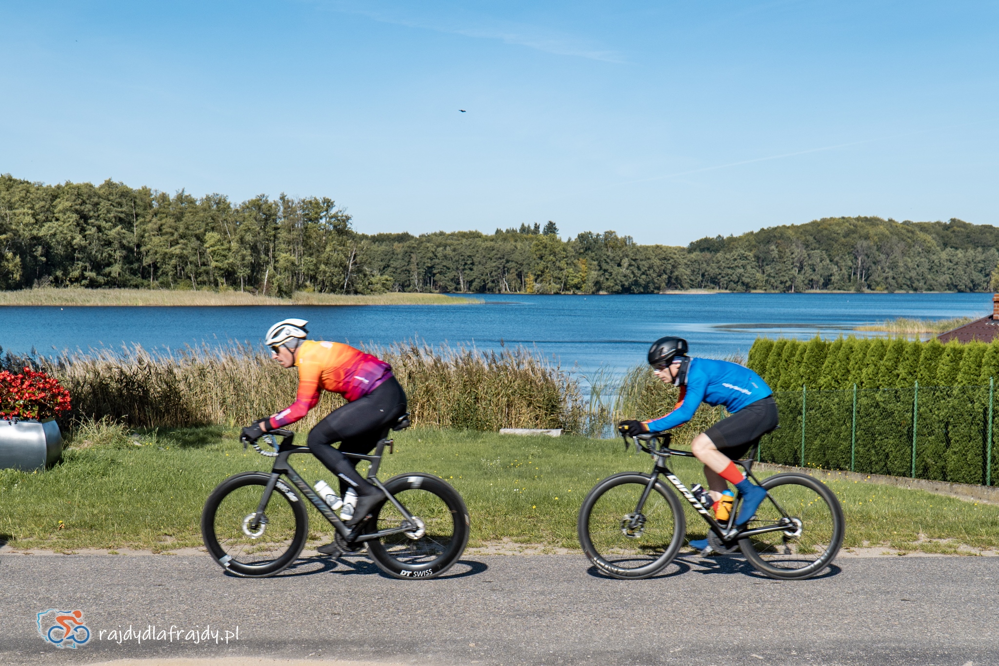 Falowanie wody nie było tego dnia jedynym, ponieważ ku pewnemu zaskoczeniu Uczestników okolica obfituje w niewielkie wzniesienia i pagórki. Jeszcze się człowiek nie zdąży zmęczyć podjeżdżaniem, a już droga wiedzie w dół i rozpędza na nowo! Taki profil terenu utrzymywał się przez większość trasy – tym razem nawet z uwzględnieniem wypłaszczonego odcinka z Chwalimia do Barwic, gdzie trochę niespodziewanie zwinęli stary asfalt i jeszcze nie do końca zdążyli położyć nowy (więc też przez chwilę falowało