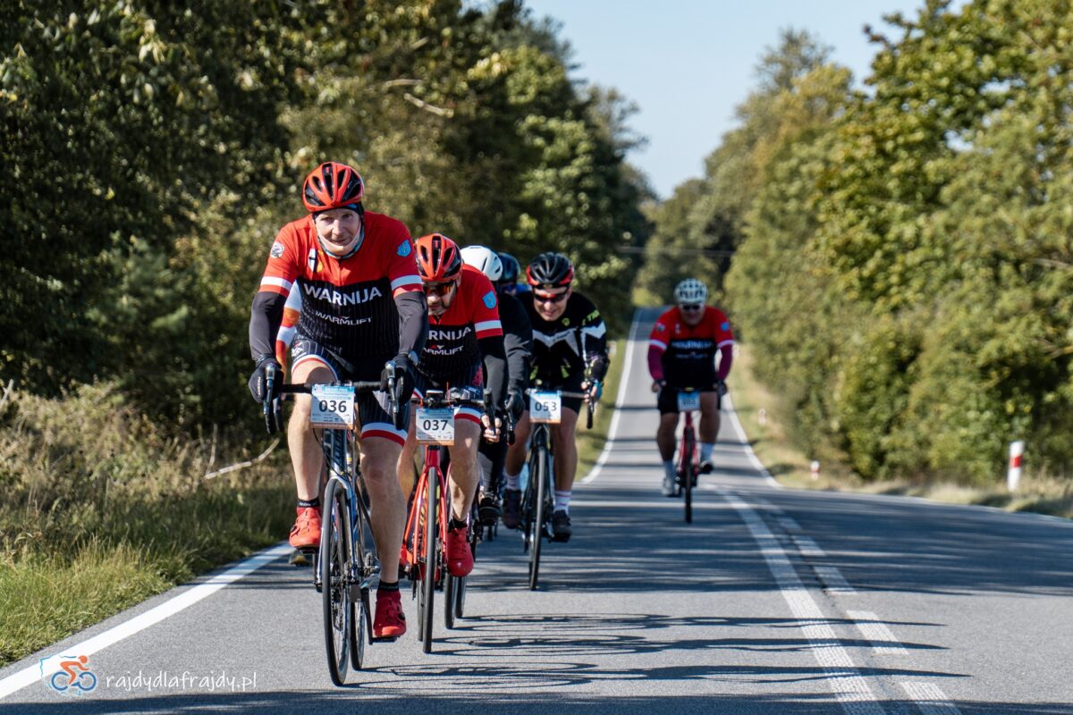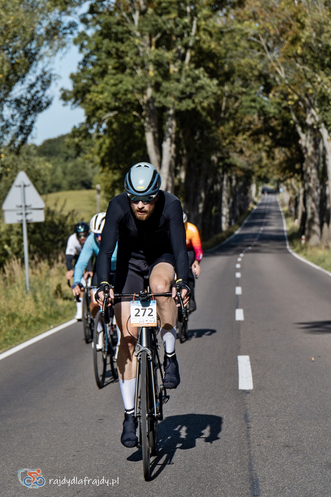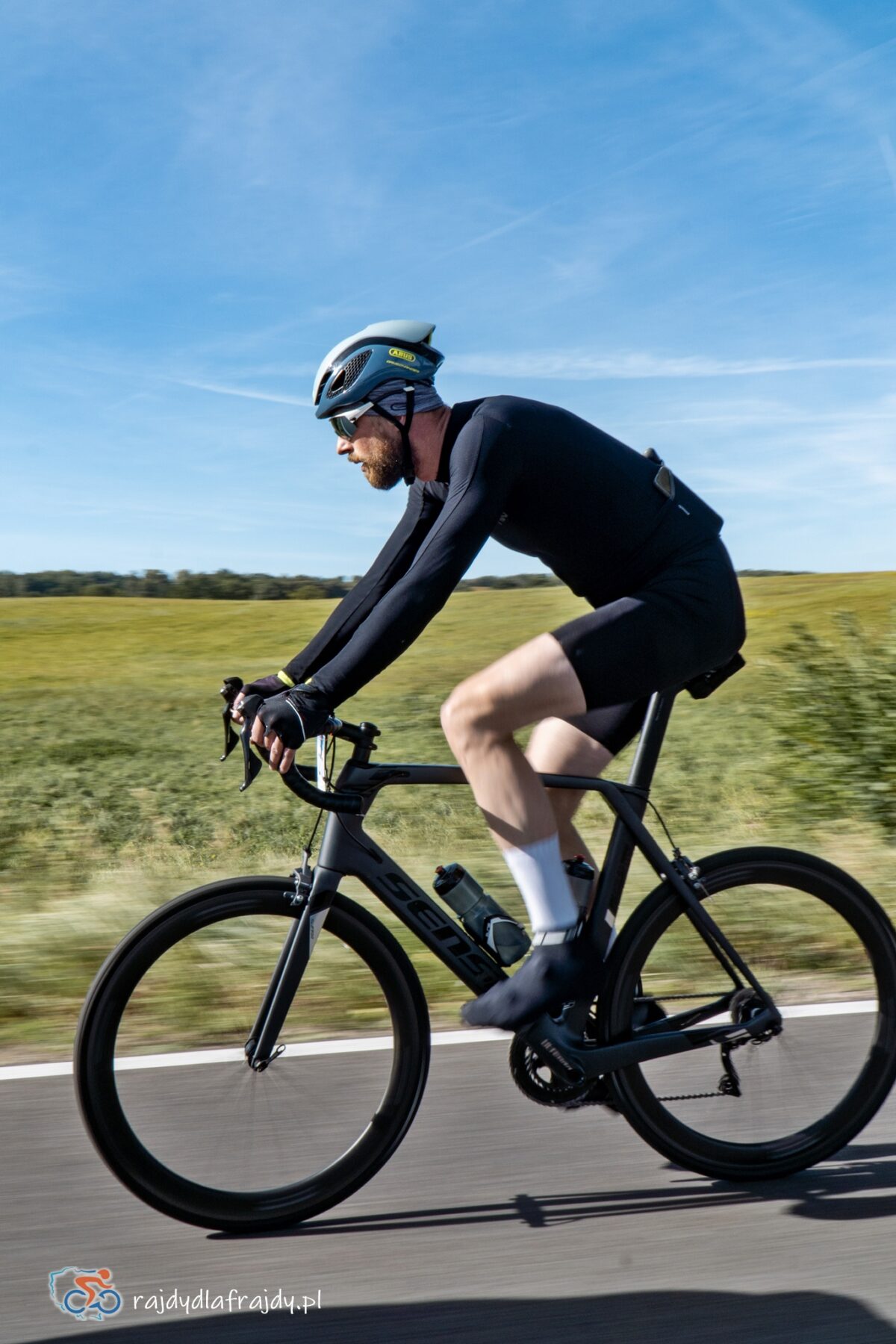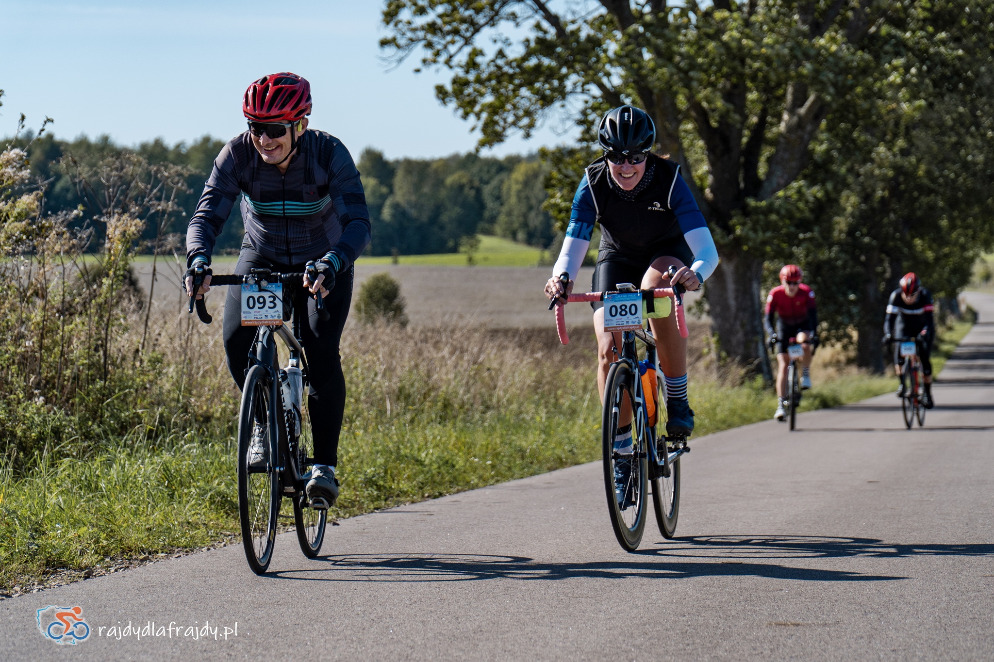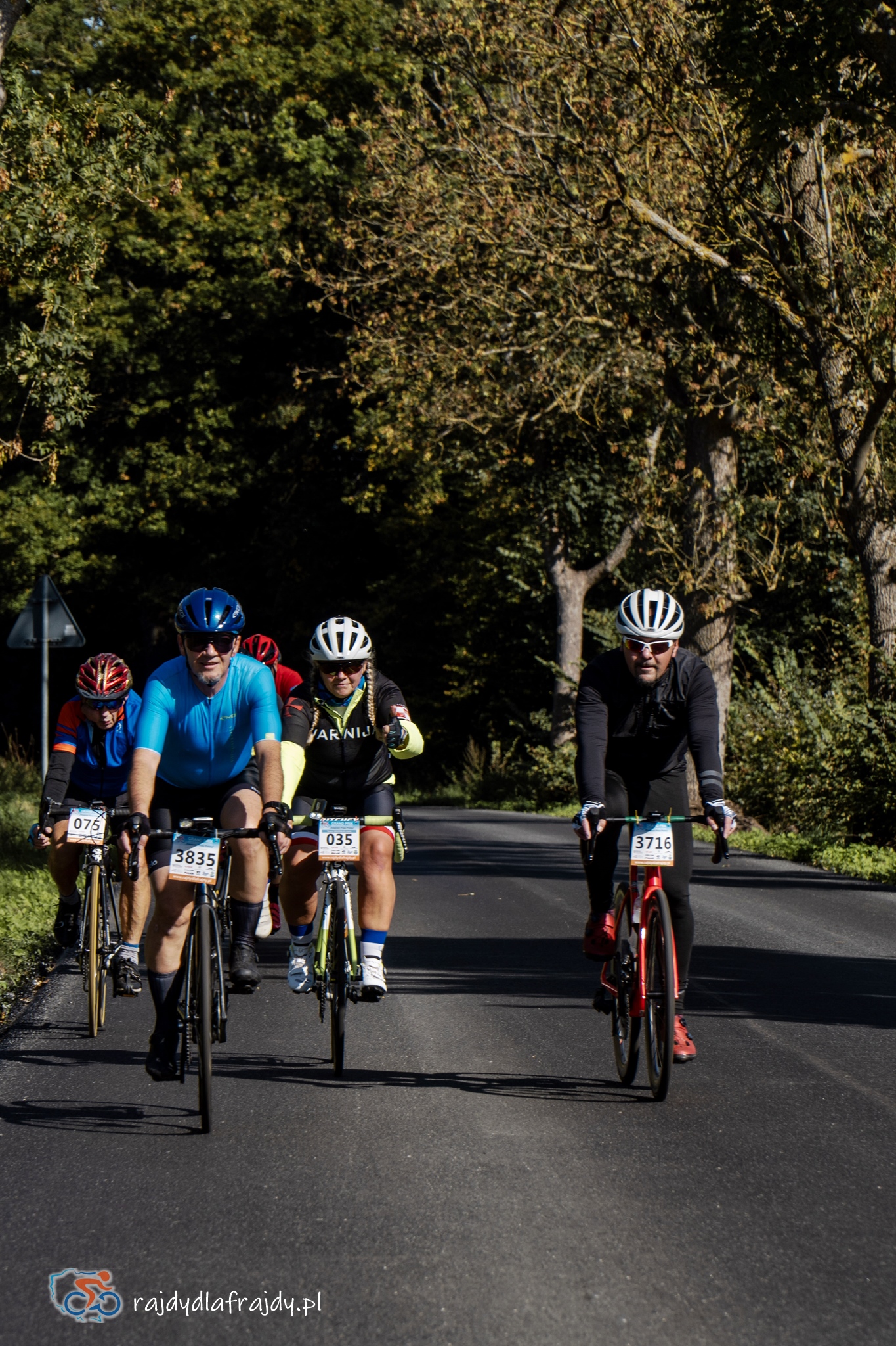 Falowanie wody nie było tego dnia jedynym, ponieważ ku pewnemu zaskoczeniu Uczestników okolica obfituje w niewielkie wzniesienia i pagórki. Jeszcze się człowiek nie zdąży zmęczyć podjeżdżaniem, a już droga wiedzie w dół i rozpędza na nowo! Taki profil terenu utrzymywał się przez większość trasy – tym razem nawet z uwzględnieniem wypłaszczonego odcinka z Chwalimia do Barwic, gdzie trochę niespodziewanie zwinęli stary asfalt i jeszcze nie do końca zdążyli położyć nowy (więc też przez chwilę falowało