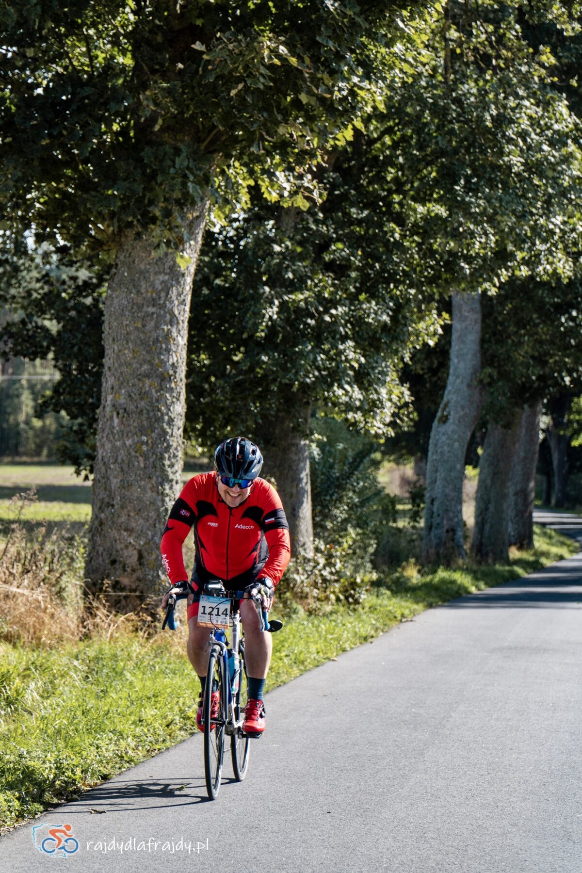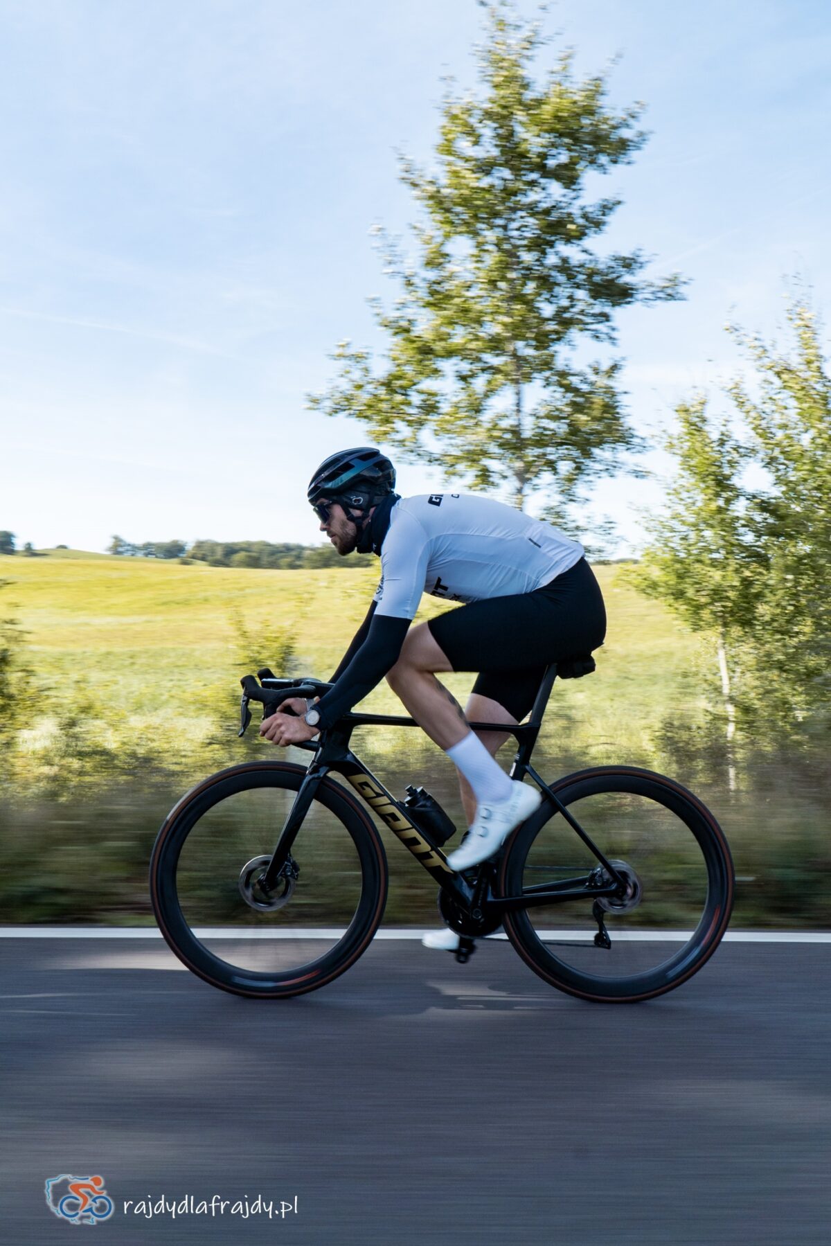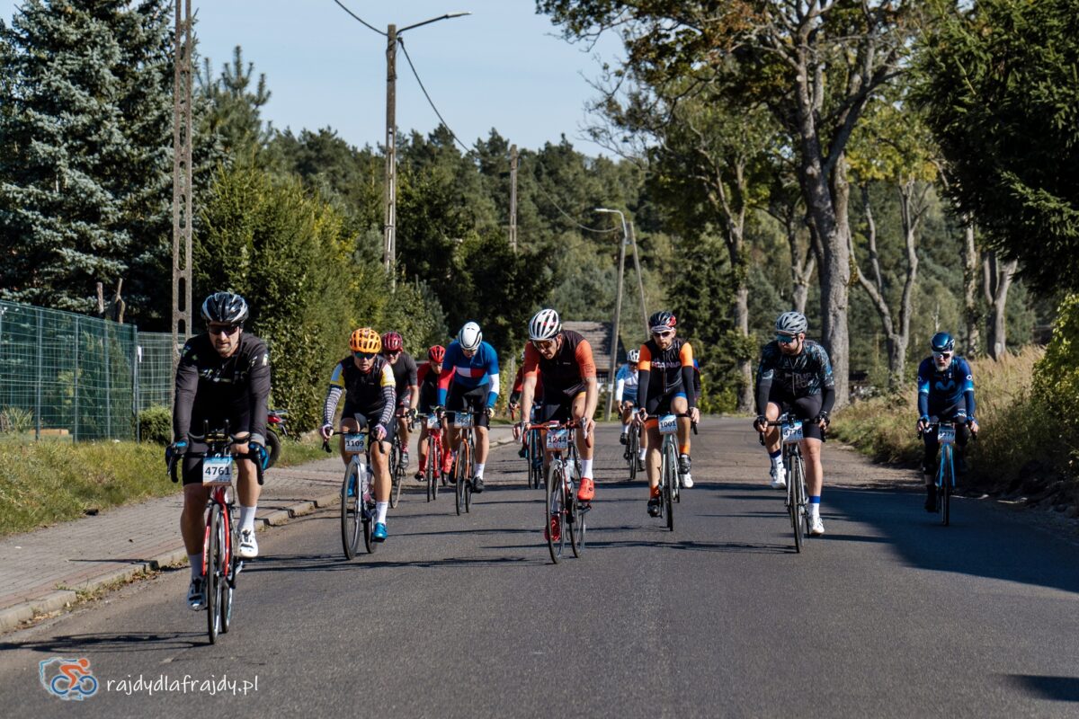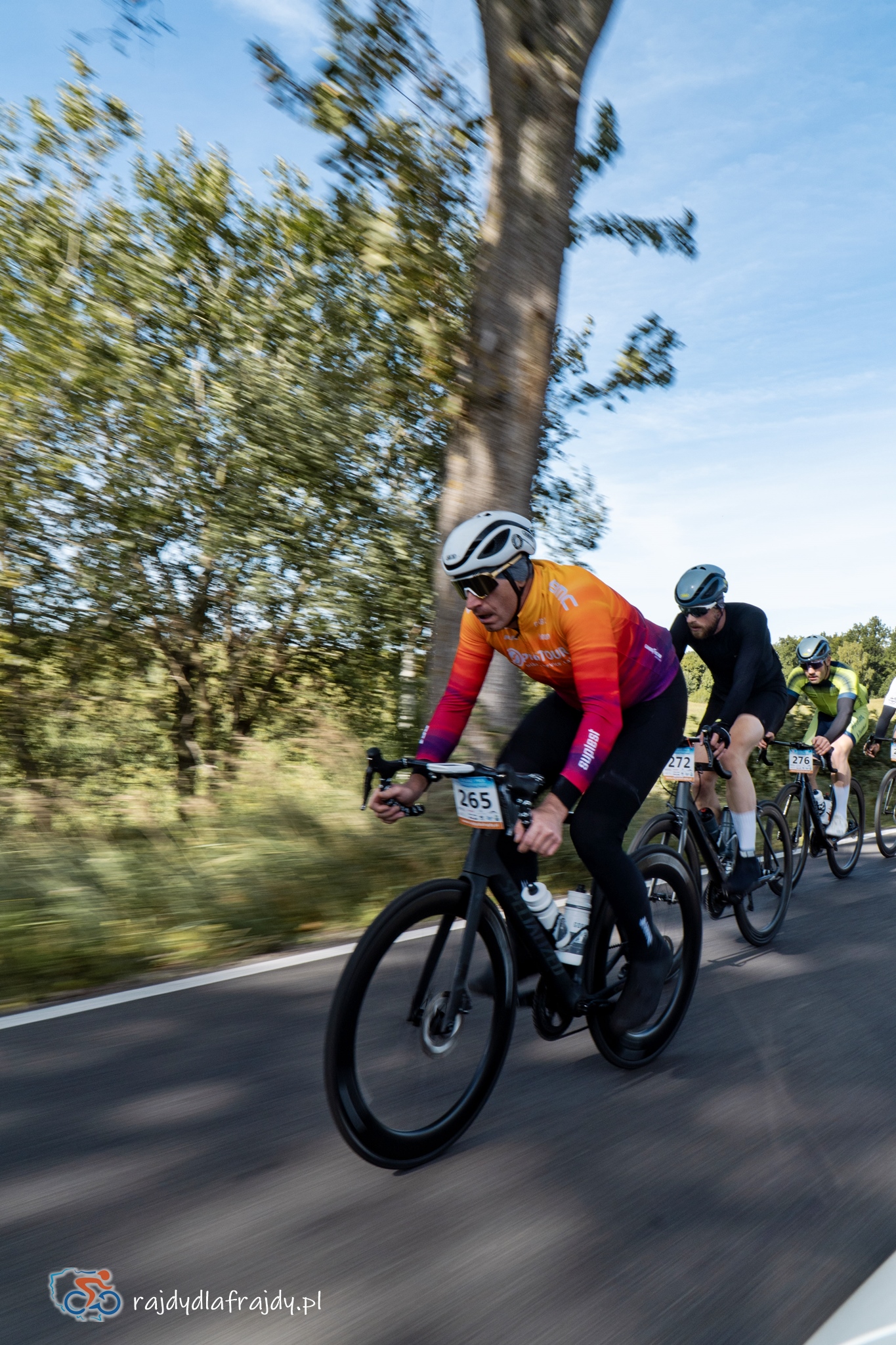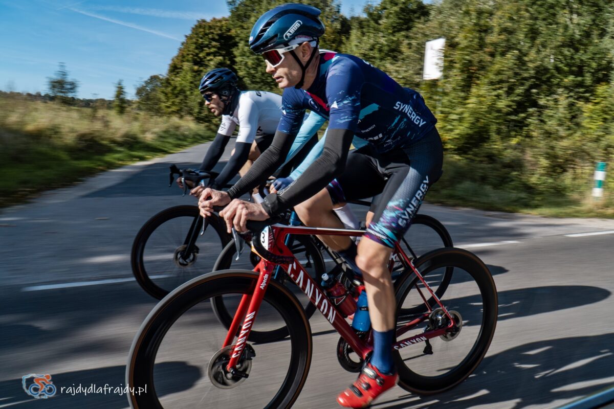Falowanie wody nie było tego dnia jedynym, ponieważ ku pewnemu zaskoczeniu Uczestników okolica obfituje w niewielkie wzniesienia i pagórki. Jeszcze się człowiek nie zdąży zmęczyć podjeżdżaniem, a już droga wiedzie w dół i rozpędza na nowo! Taki profil terenu utrzymywał się przez większość trasy – tym razem nawet z uwzględnieniem wypłaszczonego odcinka z Chwalimia do Barwic, gdzie trochę niespodziewanie zwinęli stary asfalt i jeszcze nie do końca zdążyli położyć nowy (więc też przez chwilę falowało