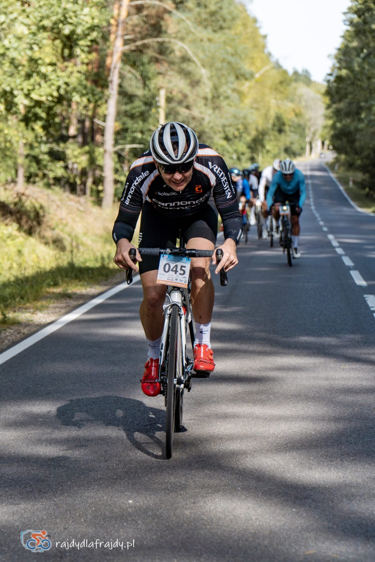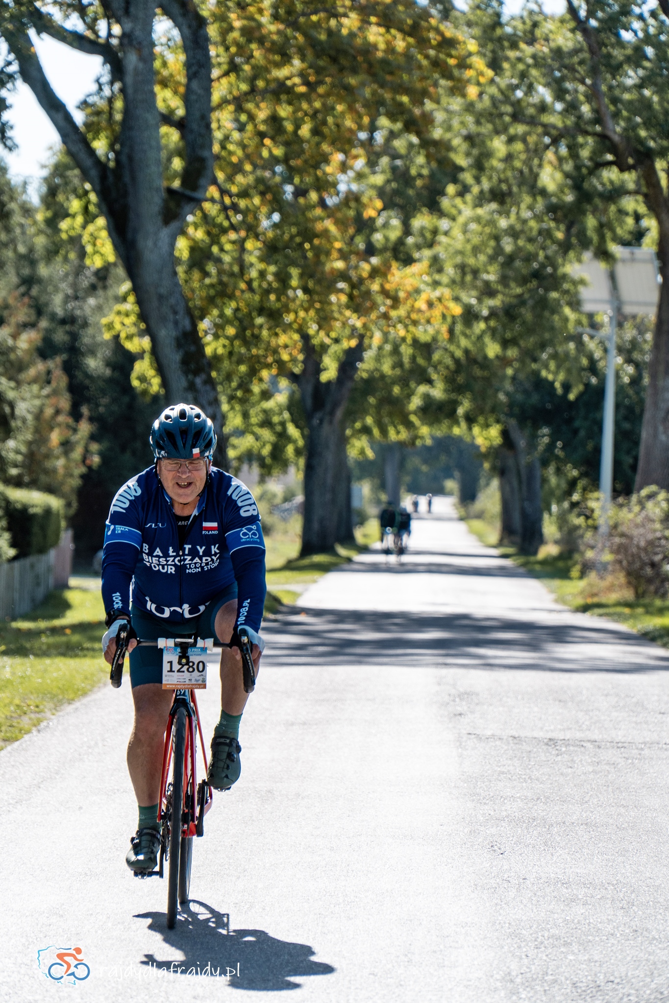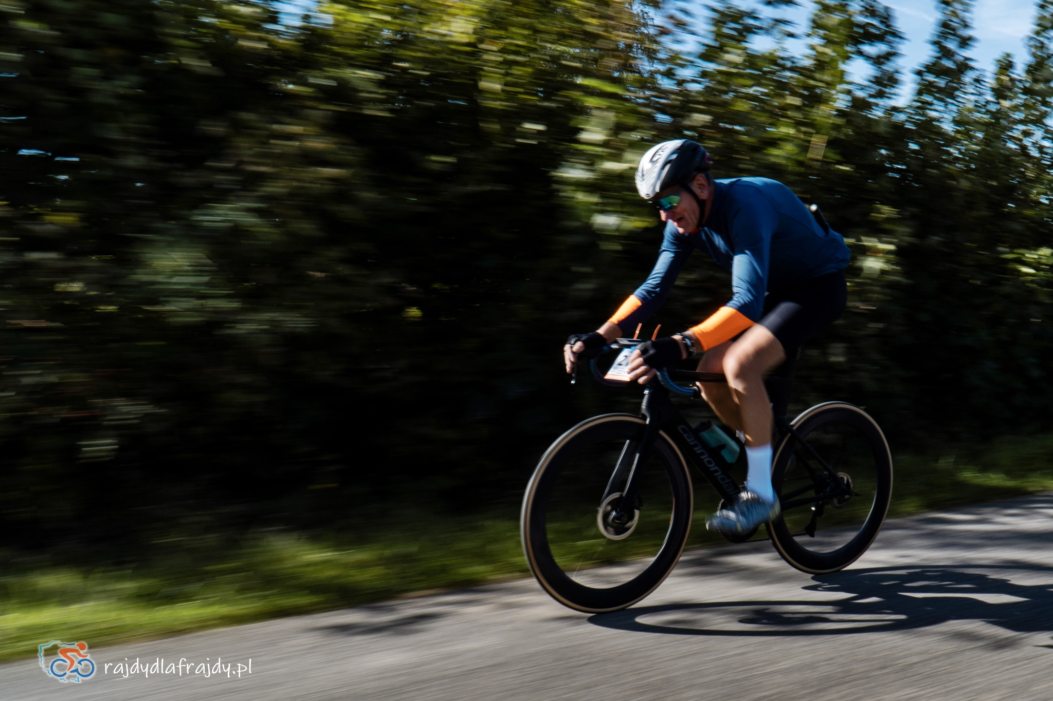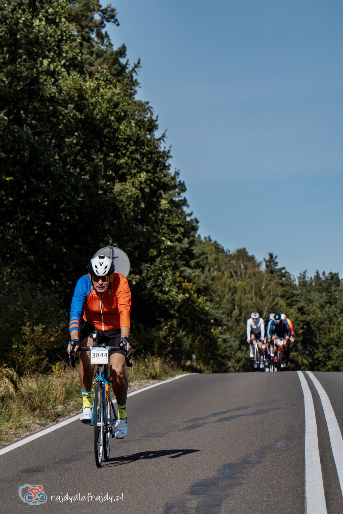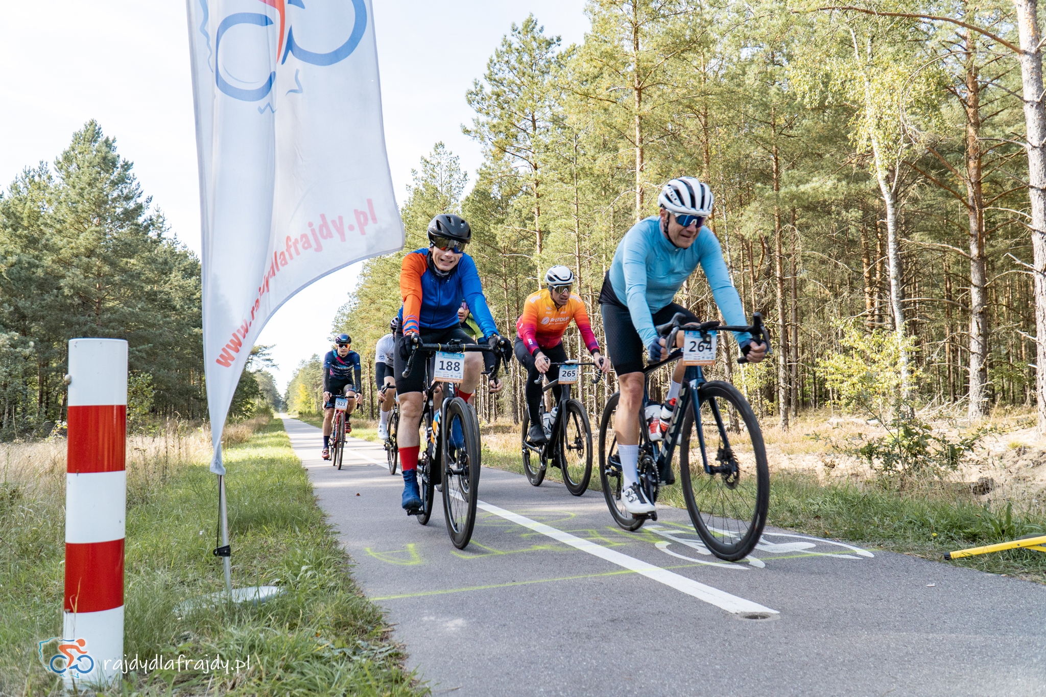 Falowanie wody nie było tego dnia jedynym, ponieważ ku pewnemu zaskoczeniu Uczestników okolica obfituje w niewielkie wzniesienia i pagórki. Jeszcze się człowiek nie zdąży zmęczyć podjeżdżaniem, a już droga wiedzie w dół i rozpędza na nowo! Taki profil terenu utrzymywał się przez większość trasy – tym razem nawet z uwzględnieniem wypłaszczonego odcinka z Chwalimia do Barwic, gdzie trochę niespodziewanie zwinęli stary asfalt i jeszcze nie do końca zdążyli położyć nowy (więc też przez chwilę falowało