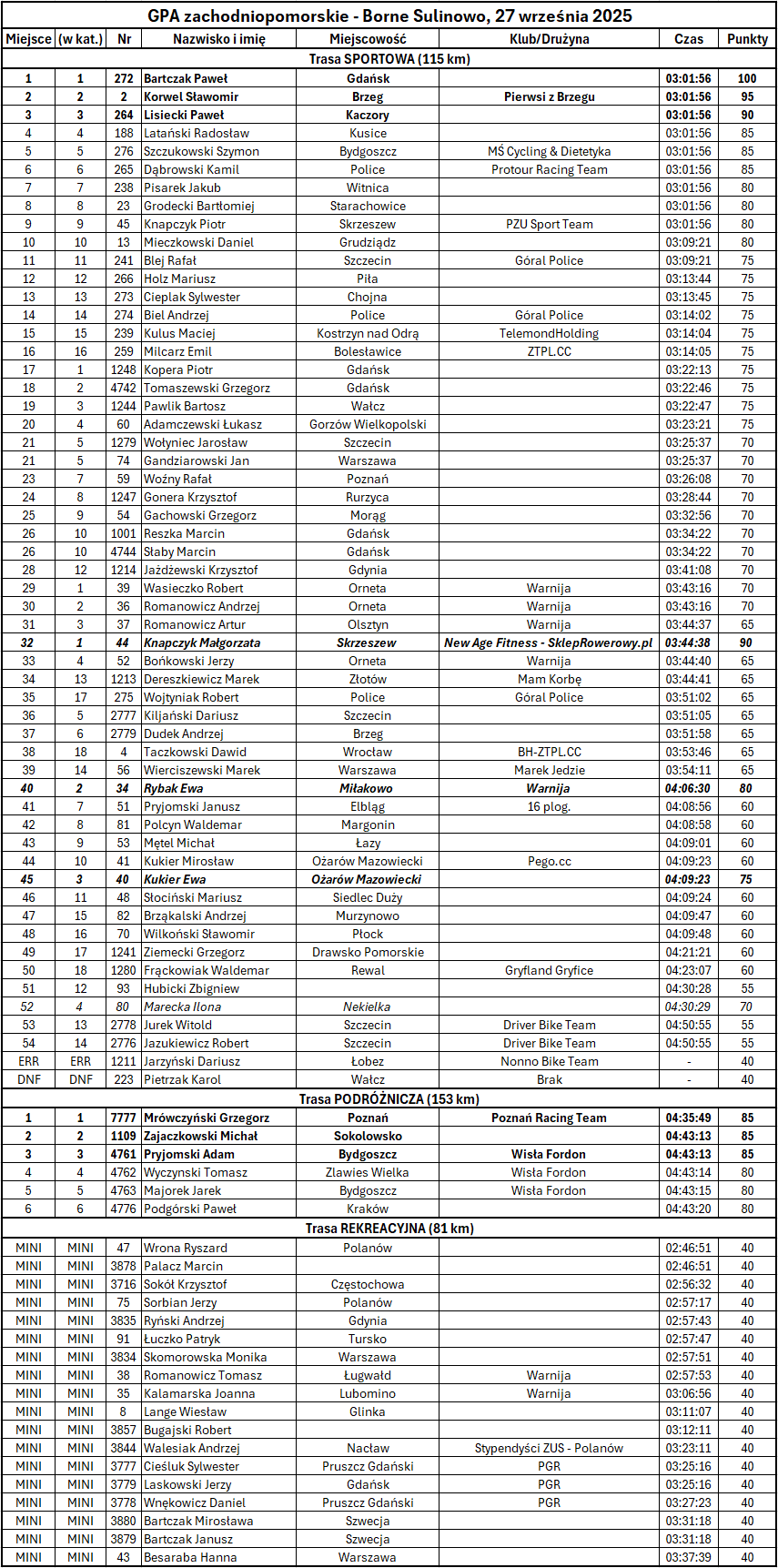 Patrząc po roześmianych na mecie twarzach zakładamy że rajd spełnił pokładane oczekiwania i dostarczył sporej porcji frajdy, a walory krajobrazowe i historyczne tego regionu zapadną w pamięci na dłuższą chwilę. Wszystkim biorącym udział pięknie dziękujemy za wspólnie spędzoną sobotę i świetną rowerową zabawę. W tych nienajłatwiejszych pogodowo okolicznościach (głównie za sprawą wiatru – bo słonko jednak przyświecało, dzięki czemu temperatury trzymały przyzwoity poziom) przede wszystkim gratulujemy determinacji w docieraniu do mety, a także w pobijaniu własnych rekordów czy rezultatów na dynamicznie rozgrywanych segmentach ![]()