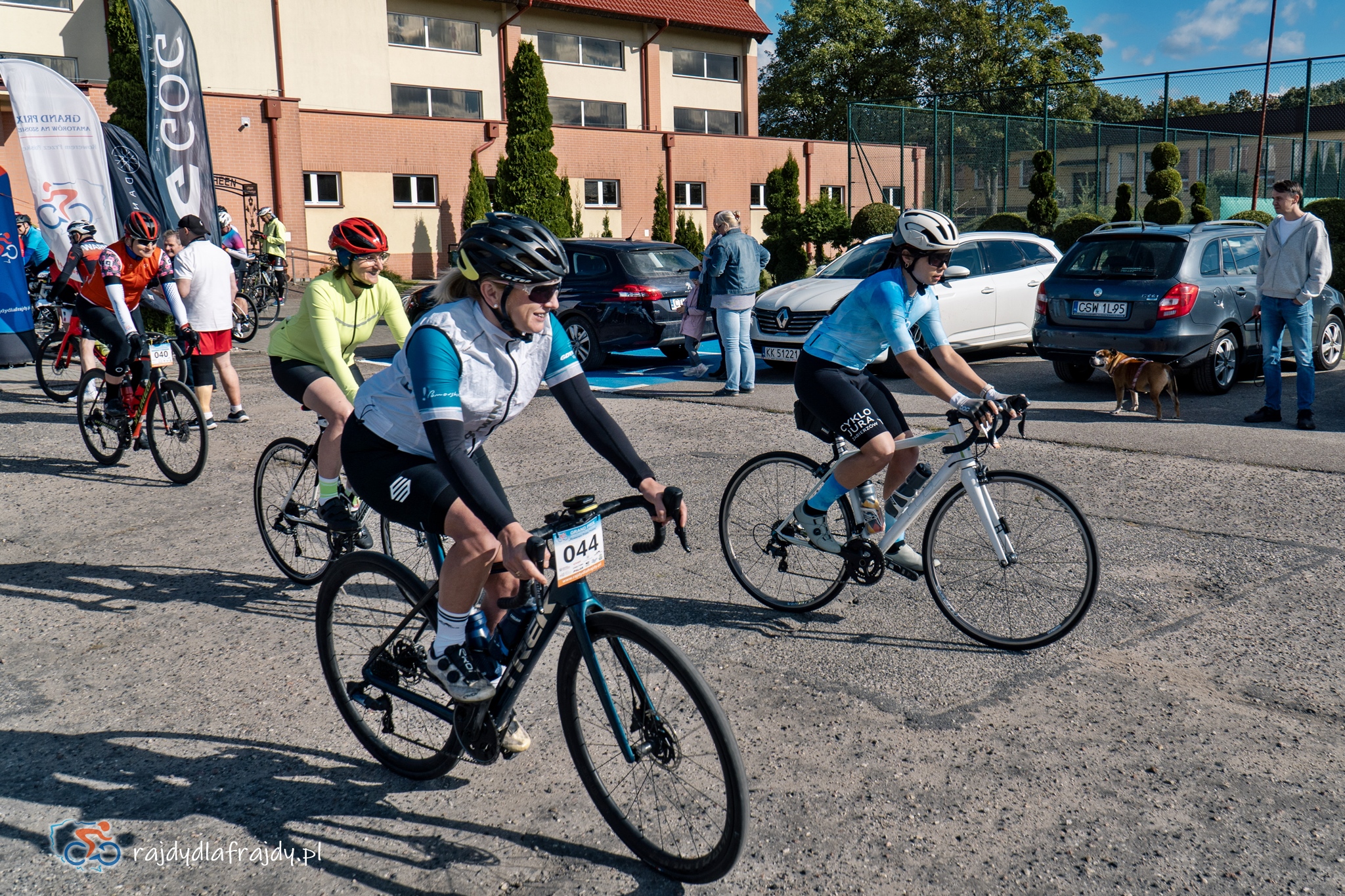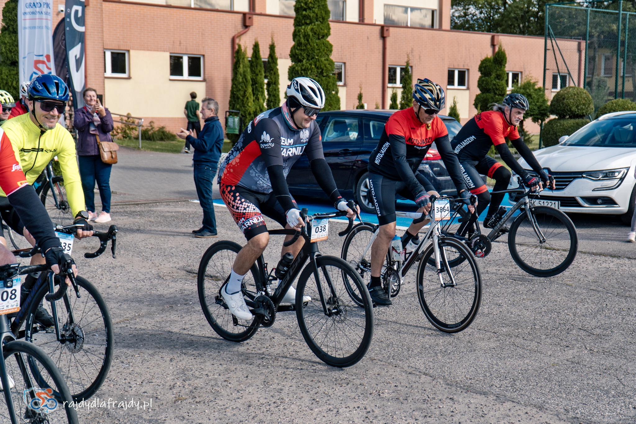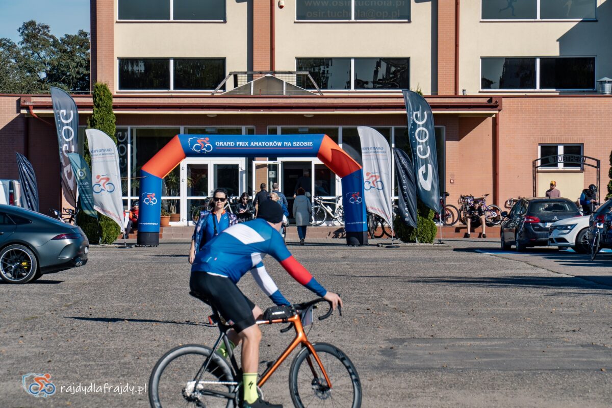 Jak na niedzielny poranek przystało – po otwarciu wrót do biura zawodów na dziedzińcu gościnnego jak zawsze tucholskiego Ośrodka Sportu i Rekreacji pojawiły się jedynie pierwsze ranne ptaszki. Pozostałe 80% solidarnie upodobało sobie przyjazd na godzinę 10 – i przebieg spraw nabrał zupełnie nowego tempa! Szczególnie że jedni w domowych czeluściach zagubili gdzieś numery startowe, drudzy koniecznie musieli zmienić dystans lub grupę szybkościową – a jeszcze inni na tegoroczne rajdy rejestrowali się tak dawno, że aż na koniec… zapomnieli dodać Tucholę! Ale dzięki temu jeszcze przed startem osiągnęliśmy pierwszy wspólny sukces, bo całe zamieszanie udało się opanować notując jedynie kwadrans poślizgu