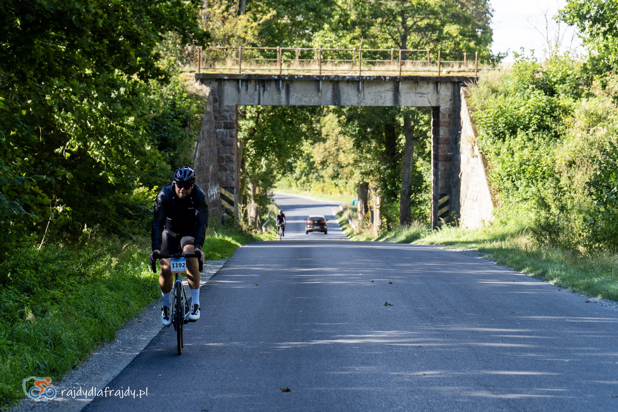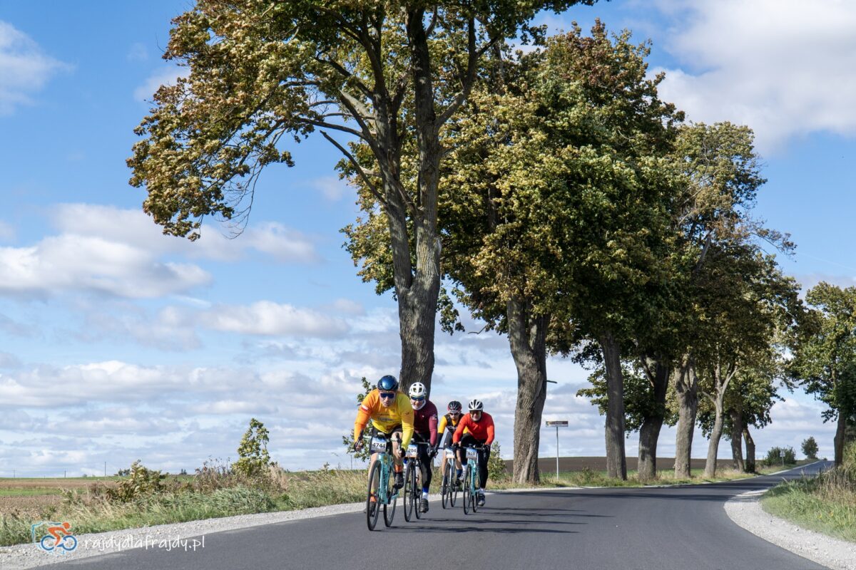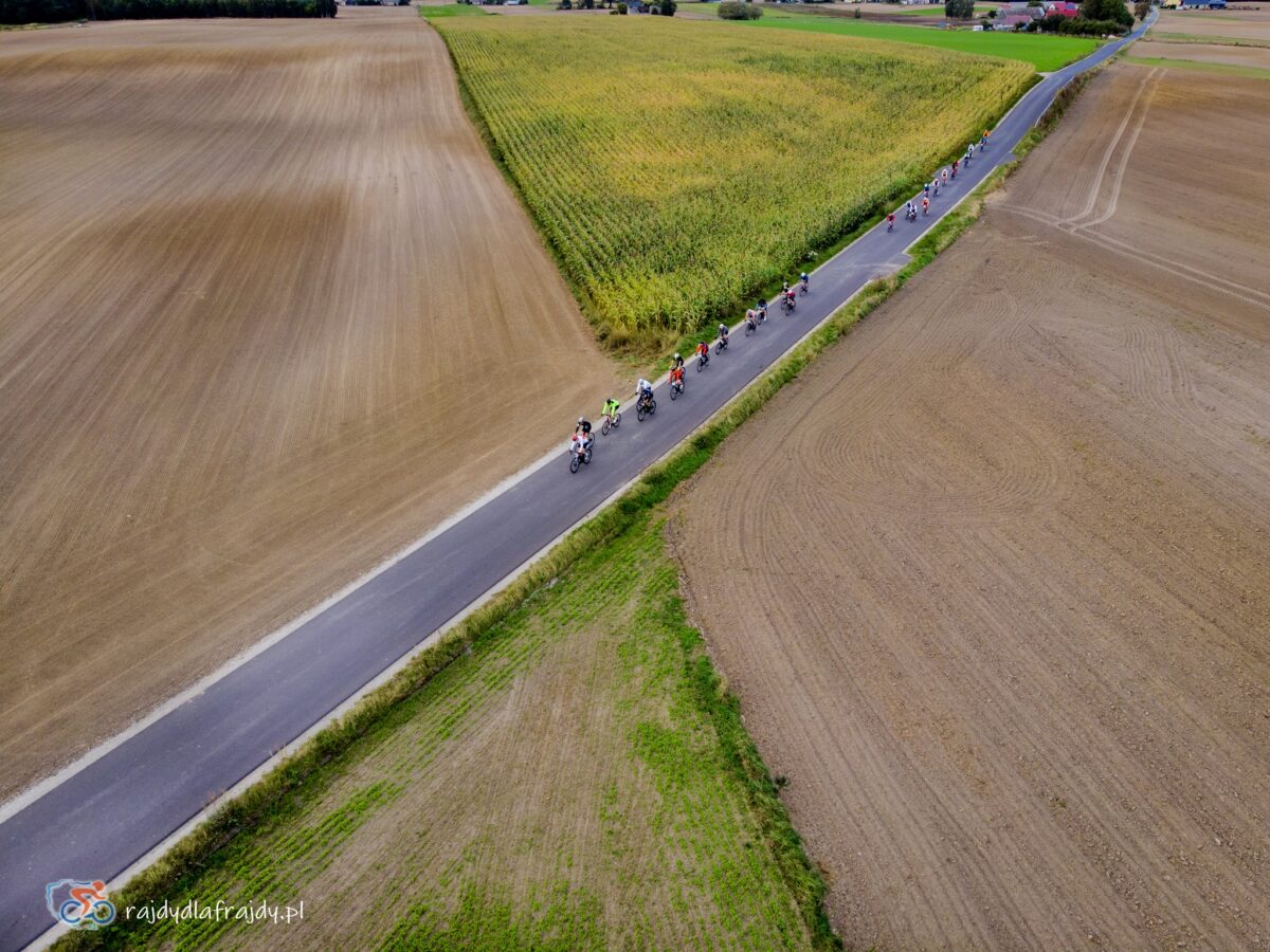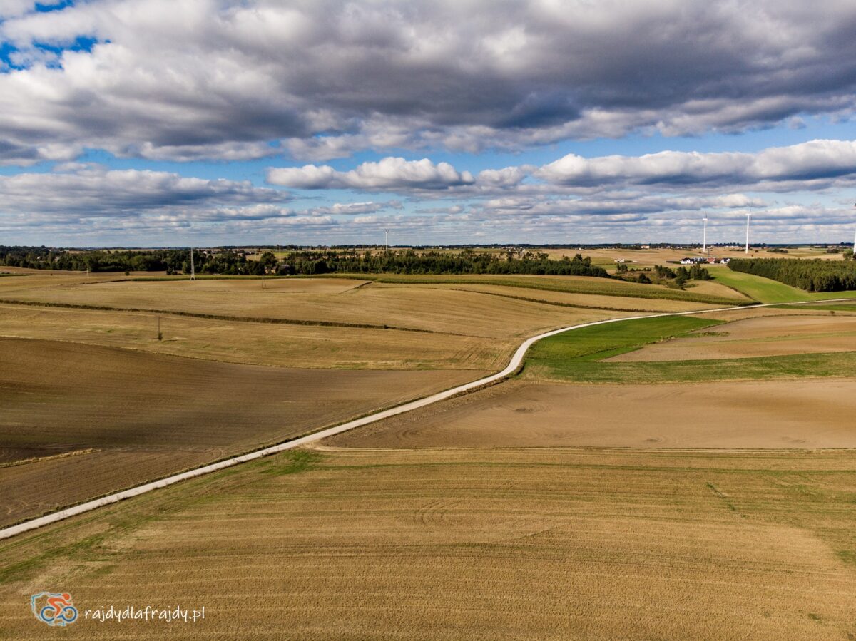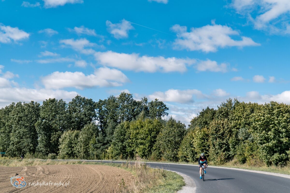 Kolejne kilometry upływały pracowicie, natomiast sądząc po żywiołowych reakcjach na punktach kontrolnych – bardzo pozytywnie i wesoło! Wrześniowe słońce może nie grzało nazbyt intensywnie, ale toczyło zaciekłe pojedynki z tabunem kłębiastych chmur i przez większość czasu tryumfalnie rozświetlało malowniczą okolicę. Do środkowej części trasy udało się też wpleść kilka nowych i niekiedy zaskakujących elementów, z których trzy miały szansę zapaść w pamięci na dłużej. Najpierw „droga której nie było” (i wciąż próżno szukać na niektórych mapach), czyli nowiutki, 3,5-kilometrowy fragment z Bysławka w stronę Lubiewa. Następny taki dywanik zakwitł na schowanej za Jeziorem Zaleskim bocznej drodze przez Lipienicę. Z kolei kawałeczek dalej trzeba było wśród polnej głuszy pokonać po wściekłym bruku mały mostek przerzucony nad torami kolejowymi – jakże inne to były wrażenia od zwykłego przejazdu, niechby nawet dziurawego! ![]()