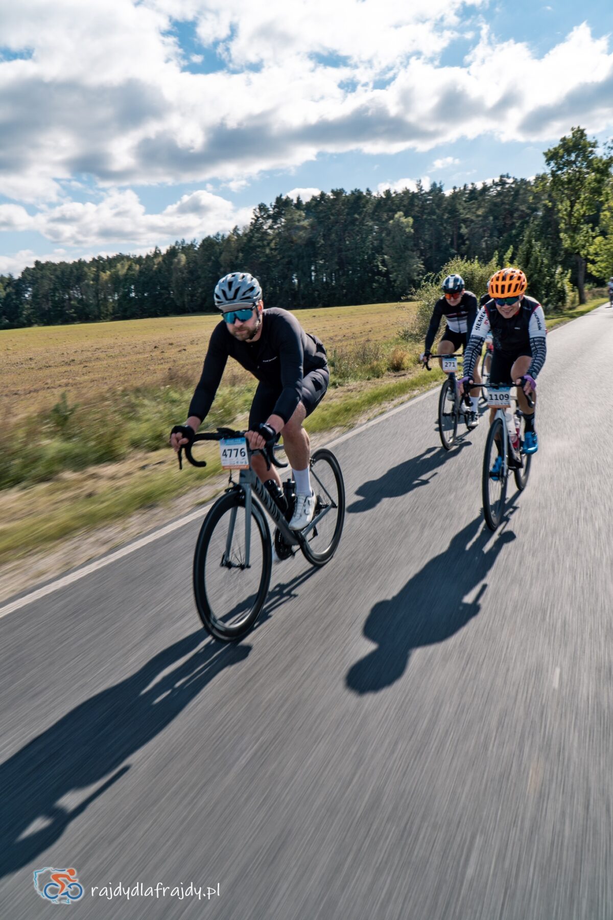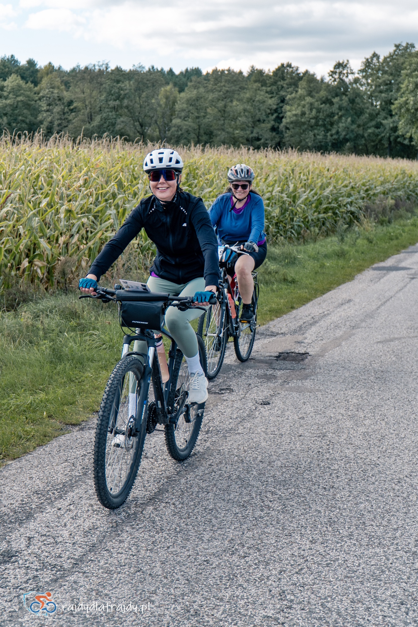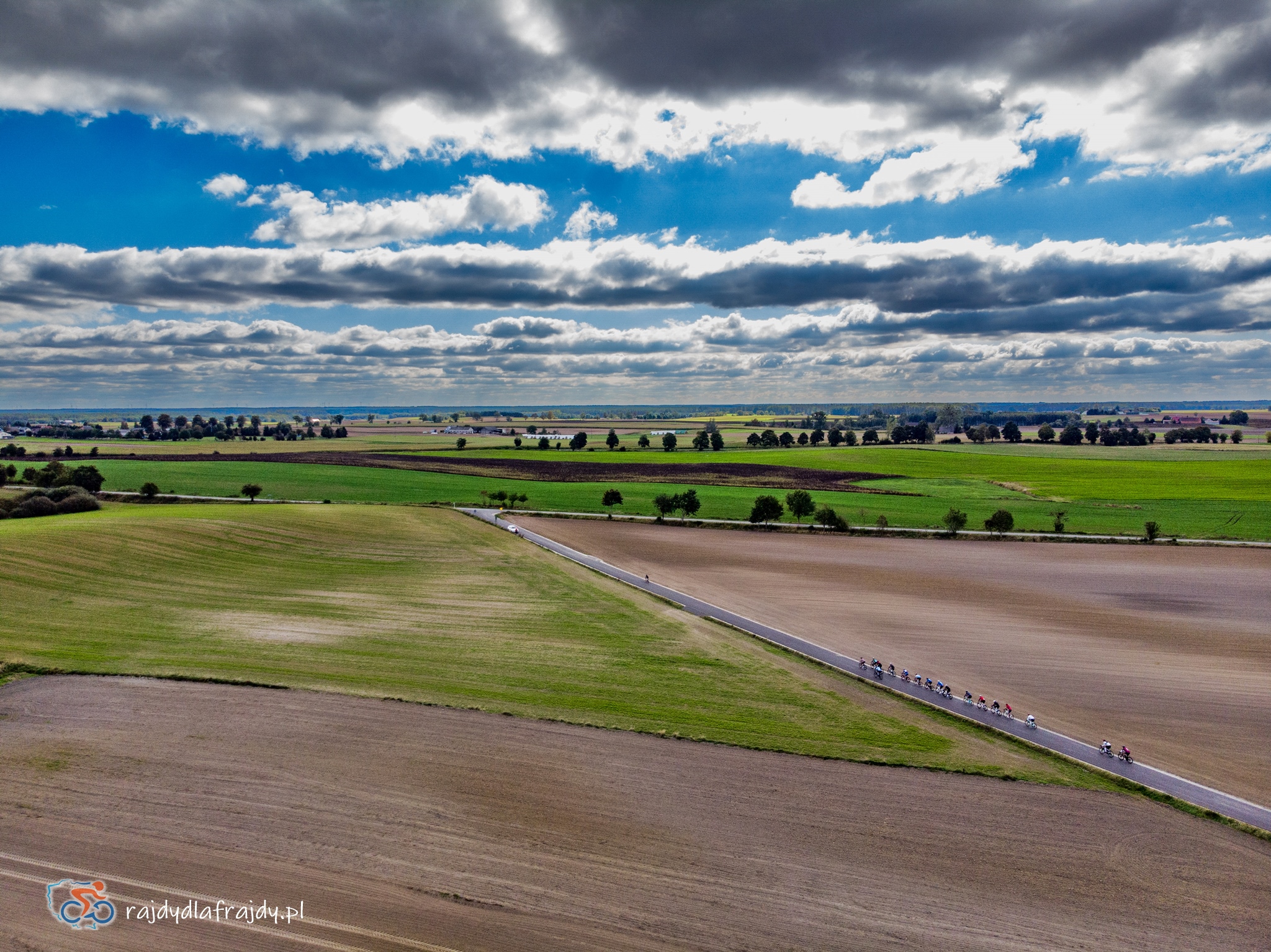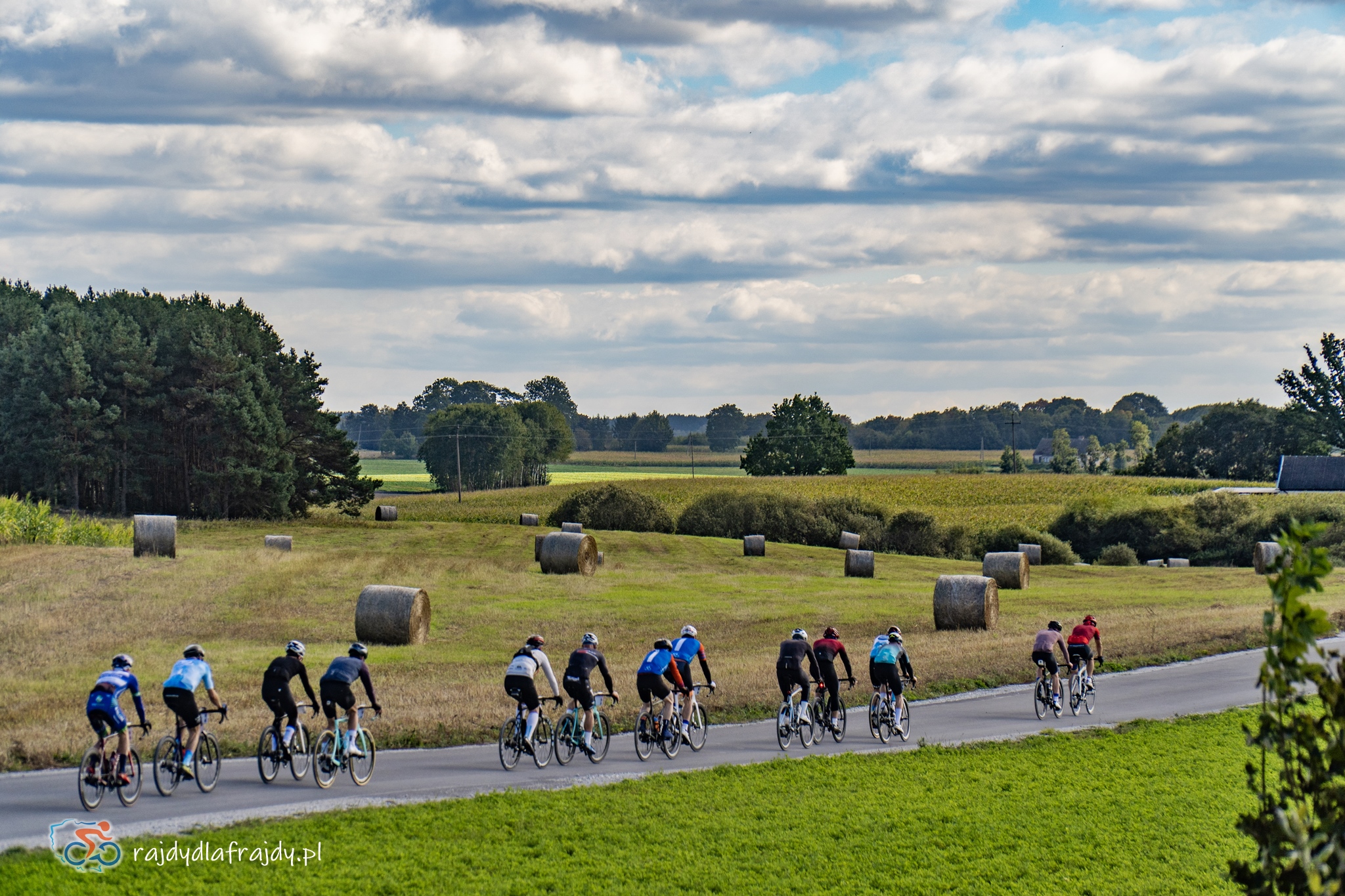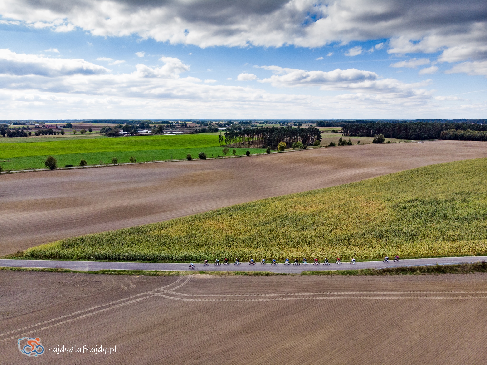 Kolejne kilometry upływały pracowicie, natomiast sądząc po żywiołowych reakcjach na punktach kontrolnych – bardzo pozytywnie i wesoło! Wrześniowe słońce może nie grzało nazbyt intensywnie, ale toczyło zaciekłe pojedynki z tabunem kłębiastych chmur i przez większość czasu tryumfalnie rozświetlało malowniczą okolicę. Do środkowej części trasy udało się też wpleść kilka nowych i niekiedy zaskakujących elementów, z których trzy miały szansę zapaść w pamięci na dłużej. Najpierw „droga której nie było” (i wciąż próżno szukać na niektórych mapach), czyli nowiutki, 3,5-kilometrowy fragment z Bysławka w stronę Lubiewa. Następny taki dywanik zakwitł na schowanej za Jeziorem Zaleskim bocznej drodze przez Lipienicę. Z kolei kawałeczek dalej trzeba było wśród polnej głuszy pokonać po wściekłym bruku mały mostek przerzucony nad torami kolejowymi – jakże inne to były wrażenia od zwykłego przejazdu, niechby nawet dziurawego! ![]()