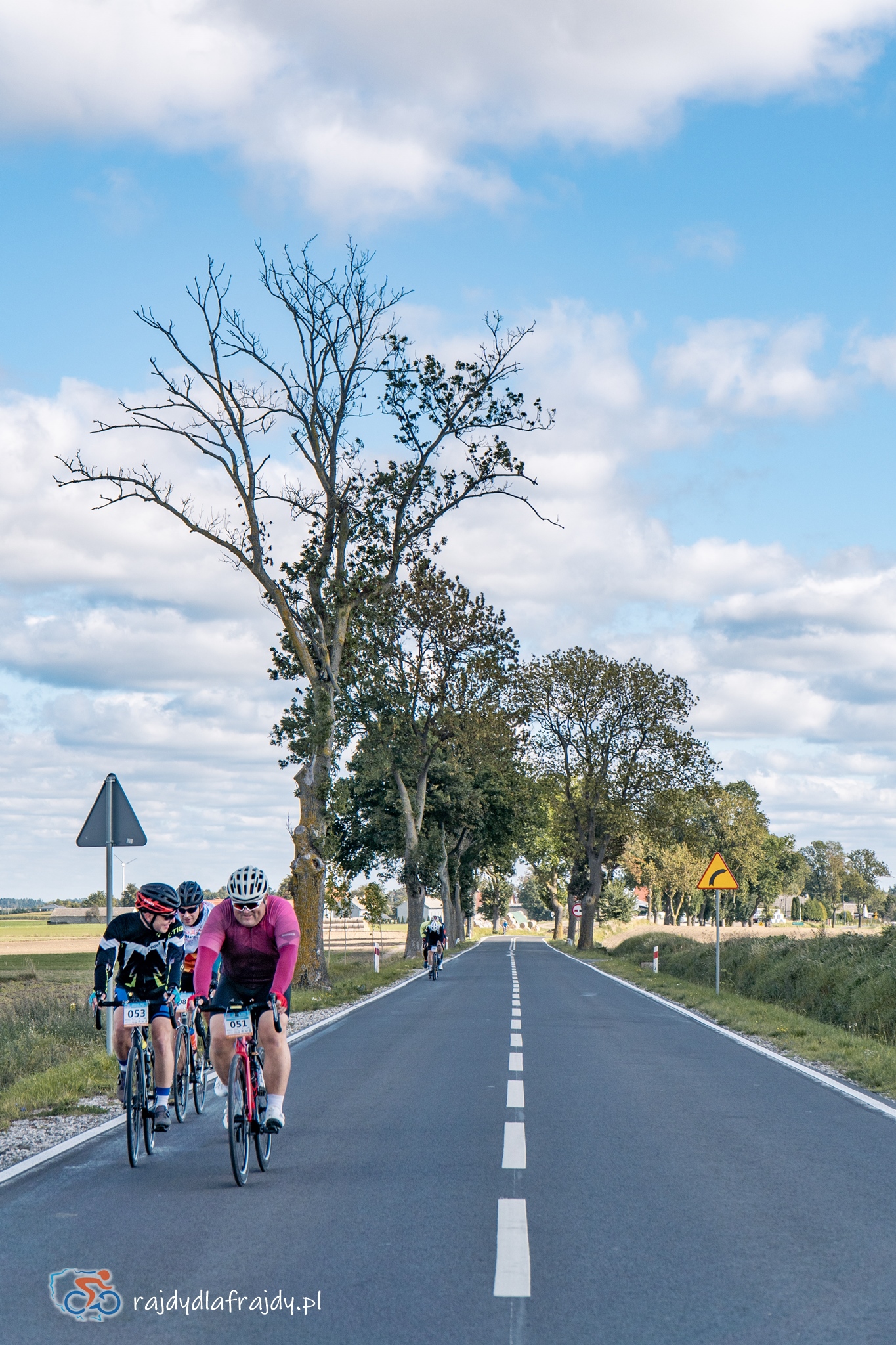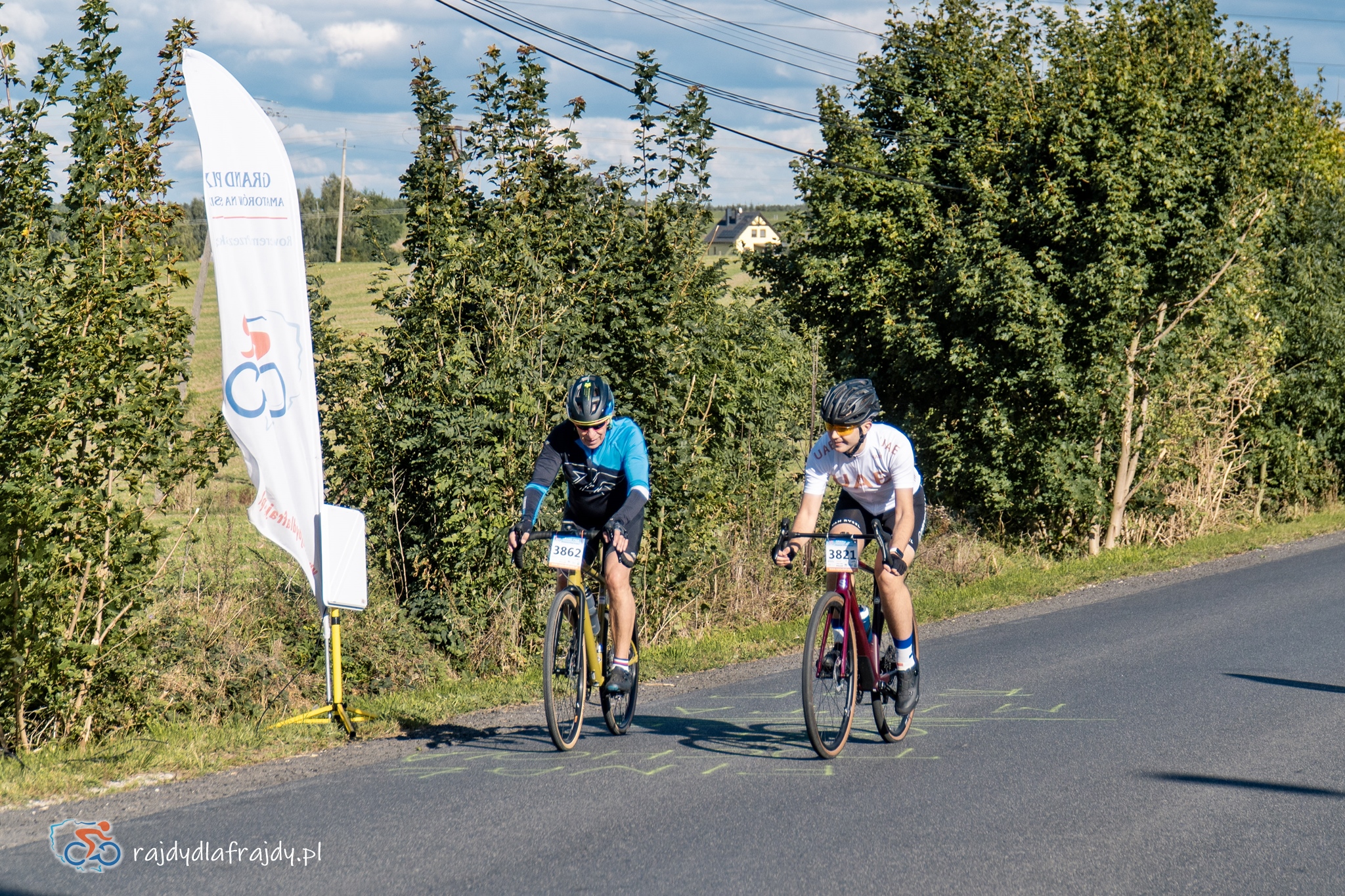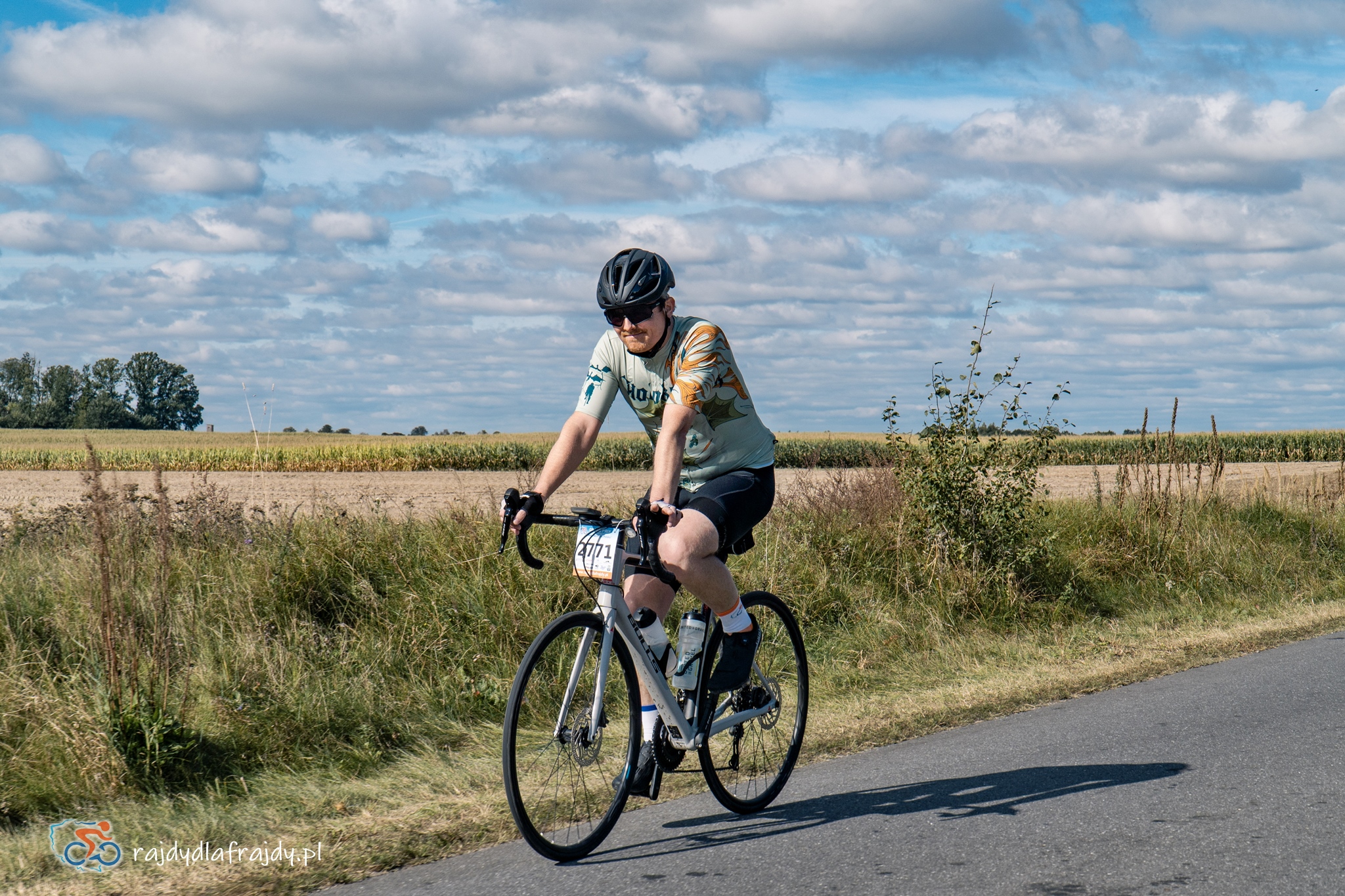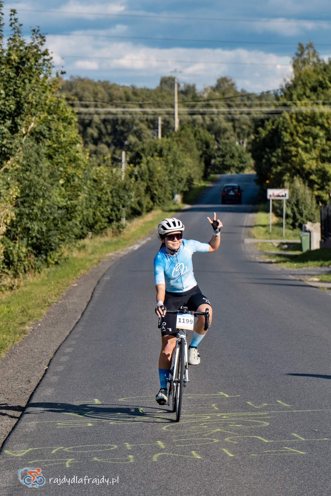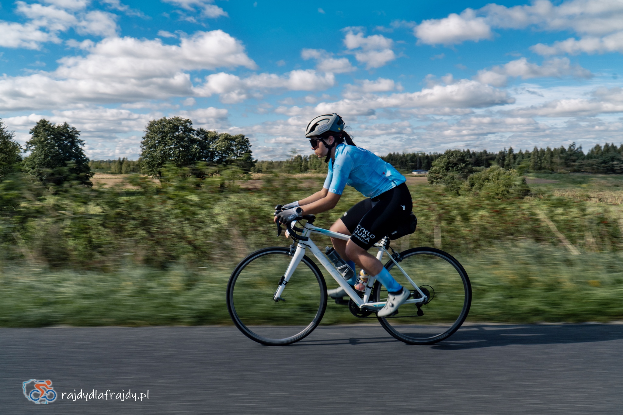 Kolejne kilometry upływały pracowicie, natomiast sądząc po żywiołowych reakcjach na punktach kontrolnych – bardzo pozytywnie i wesoło! Wrześniowe słońce może nie grzało nazbyt intensywnie, ale toczyło zaciekłe pojedynki z tabunem kłębiastych chmur i przez większość czasu tryumfalnie rozświetlało malowniczą okolicę. Do środkowej części trasy udało się też wpleść kilka nowych i niekiedy zaskakujących elementów, z których trzy miały szansę zapaść w pamięci na dłużej. Najpierw „droga której nie było” (i wciąż próżno szukać na niektórych mapach), czyli nowiutki, 3,5-kilometrowy fragment z Bysławka w stronę Lubiewa. Następny taki dywanik zakwitł na schowanej za Jeziorem Zaleskim bocznej drodze przez Lipienicę. Z kolei kawałeczek dalej trzeba było wśród polnej głuszy pokonać po wściekłym bruku mały mostek przerzucony nad torami kolejowymi – jakże inne to były wrażenia od zwykłego przejazdu, niechby nawet dziurawego! ![]()