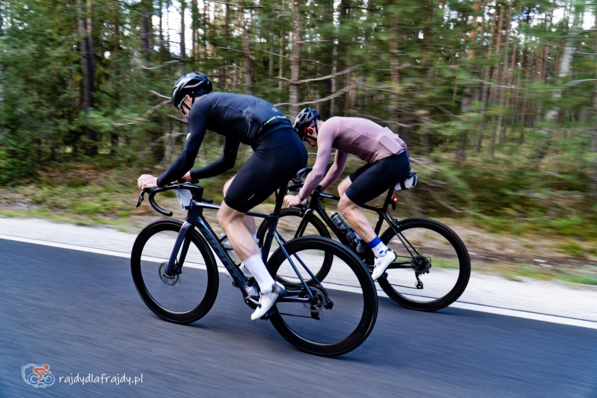 Końcowe 35km były już wspólne dla wszystkich dystansów – i z krajobrazowo-rekreacyjnego punktu widzenia ten powrót do Tucholi niezmiennie uważamy za prawdziwy kolarski sztos! Poczynając od nieco zbyt szybkiego przejazdu po moście nad Jeziorem Wierzchy (niestety leży w obniżeniu i na rozglądanie pozostaje przeważnie kilka sekund – jeśli w ogóle), przez pięknie pofalowany i dość wymagający fragment Wierzchy-Zdroje-Trzebciny – aż po niekończącą się, 20-kilometrową strzałę przez serce Borów Tucholskich (ze smakowitym, dynamicznym finiszem na granicy miasta). Jako że wspominany wcześniej wiatr przybrał tutaj bardzo sprzyjającą postawę, to finałowe kilometry upływały błyskawicznie. Spomiędzy zębatek strzelały iskry, z hukiem pękały osobiste rekordy, a segmenty uginały się od napływu nowych nazwisk w czołówkach. Łupem ochoczo nacierających Szybkościowców padła też większość zlokalizowanych po drodze KOMów – ale mieliśmy wrażenie że gdyby nie linia mety, to spora część Uczestników z chęcią dołożyłaby w takich warunkach kolejne 30-50 kilometrów ![]()