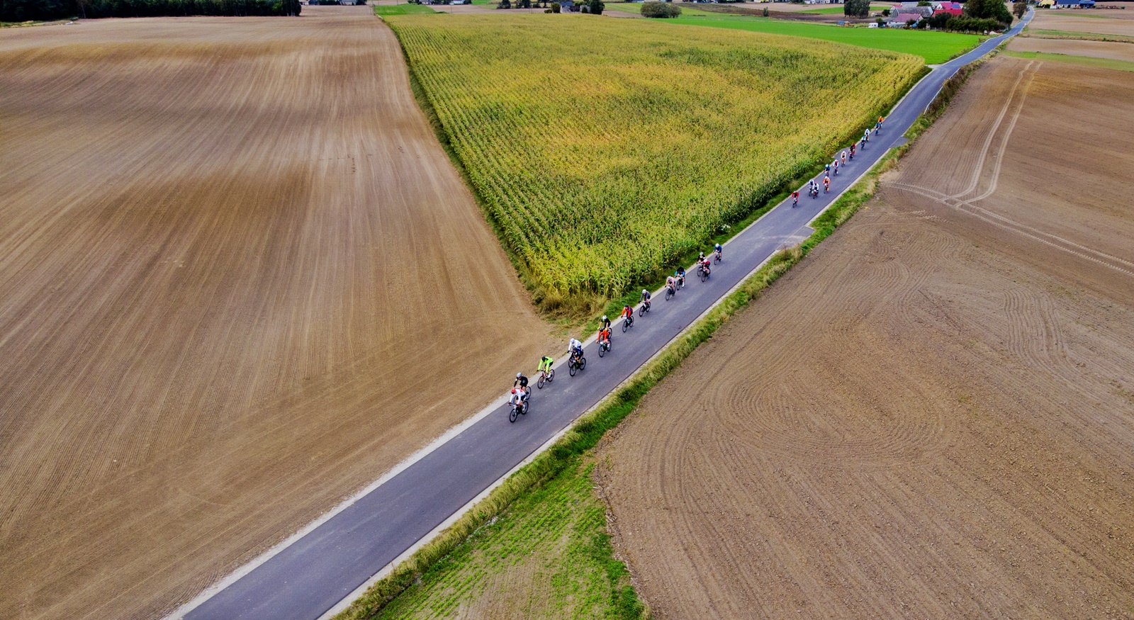 Osobnej, choćby tylko króciutkiej wzmianki wymaga wspomnienie o dodatkowej pętli przyszykowanej na potrzeby Podróżników. Na liczącą niespełna 170km trasę tym razem wybrało się 9 śmiałków – ale jeśli będziecie mieli okazję, to naprawdę warto zapuścić się w tamte strony! Przez bardzo ładne okolice Drzycimia mieliśmy już okazję prowadzić dystans Sportowy, natomiast potem robi się jeszcze ciekawiej. Najpierw Żur nad Wdą z pobliską elektrownią wodną, następnie przypominający „małą Toskanię” odcinek Brzeziny-Miedzno, potem kawałek drogi relacji Osie-Warlubie z „wbudowanym” pasem lotniskowym (można poznać po przepastnych parkingach z lewej i prawej strony) – i wreszcie kapitalny, około 10-kilometrowy fragment w leśnej kniei do Jeżewa. Na deser jeszcze „przelot” nad kanałem Wdy w Gródku zakończony jednym z dłuższych podjazdów w okolicy ![]()