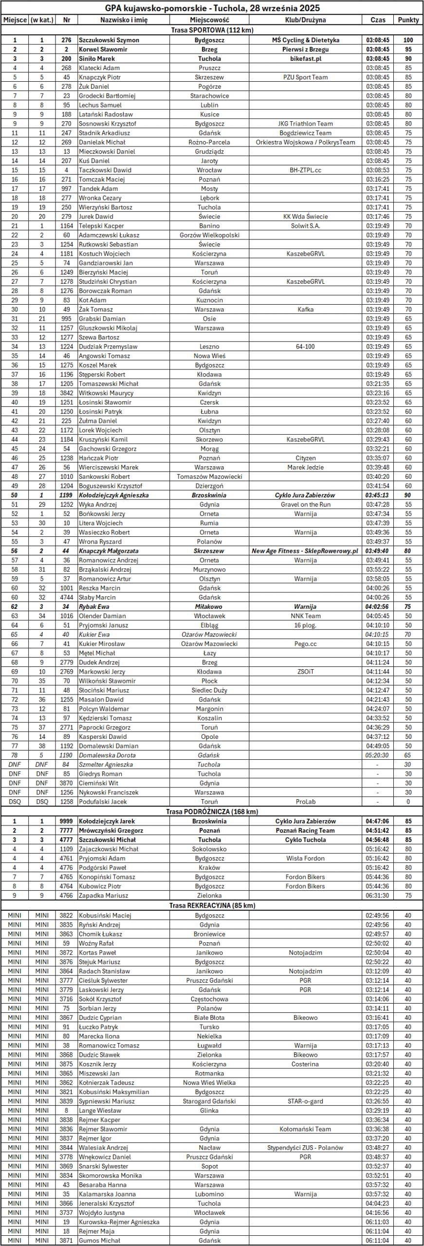 W tym miejscu nie pozostaje zatem nic innego, jak wesoło podziękować za bardzo frajdownie spędzoną niedzielę, pełną zarówno sportowych wrażeń, jak i krajoznawczo-podróżniczych akcentów. Gratulujemy ukończenia zmagań na tej wcale nie tak łatwej trasie (która zwłaszcza w środkowej części wymagała sporo determinacji), ale przede wszystkim znakomitej kolarskiej atmosfery godnej zakończenia tegorocznej edycji ![]()