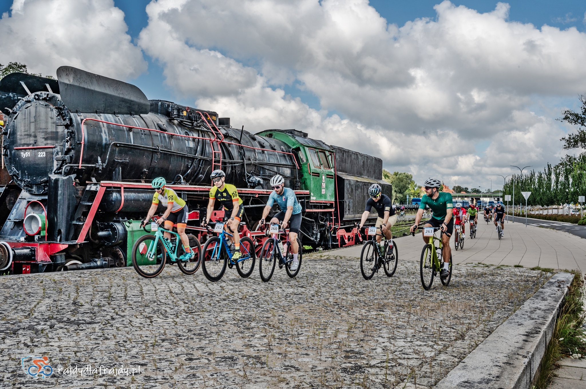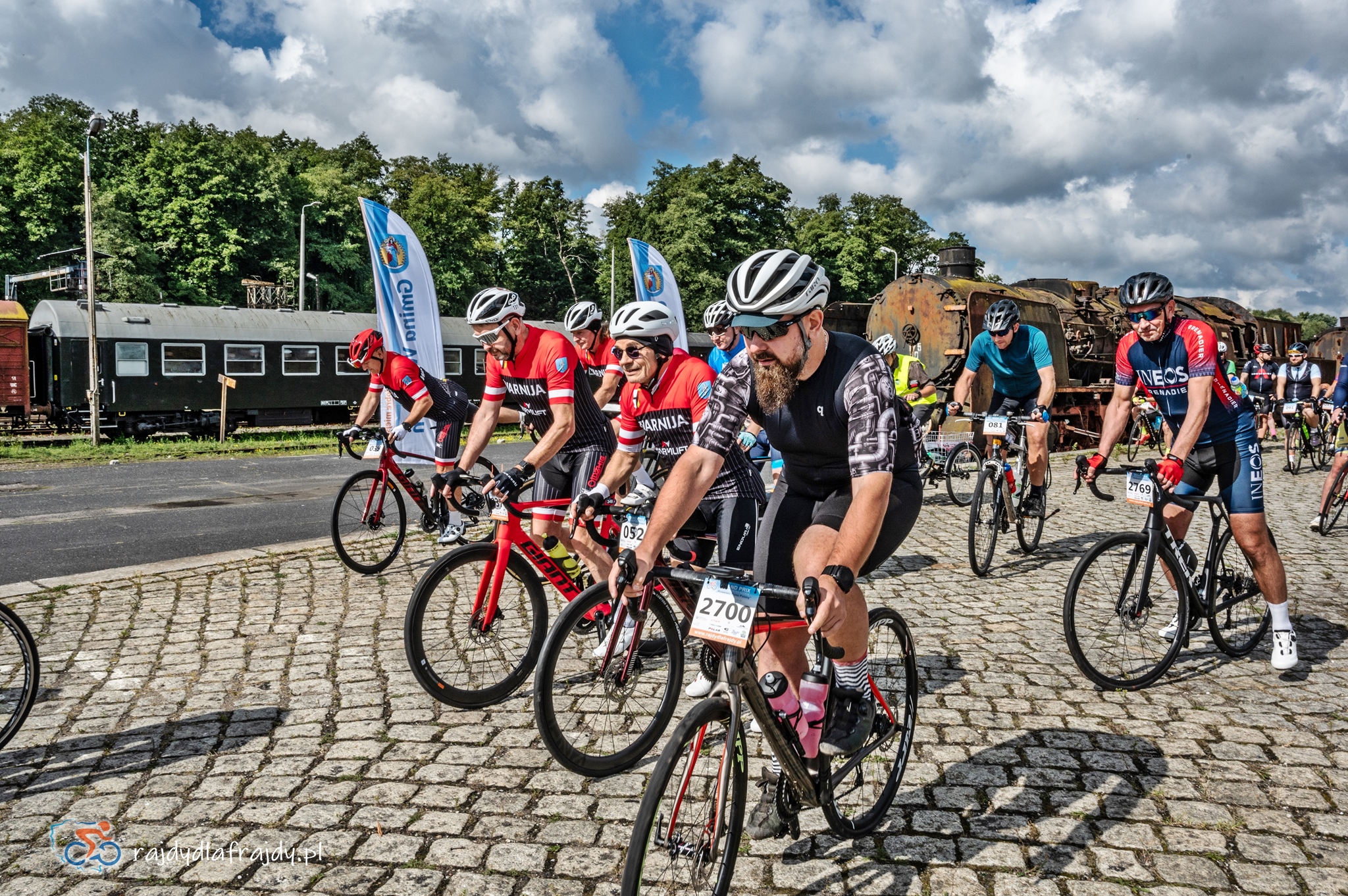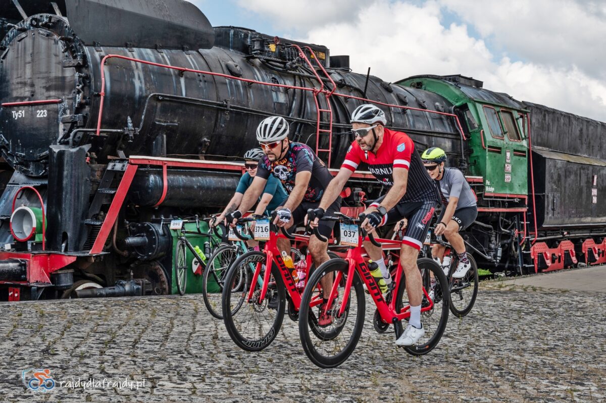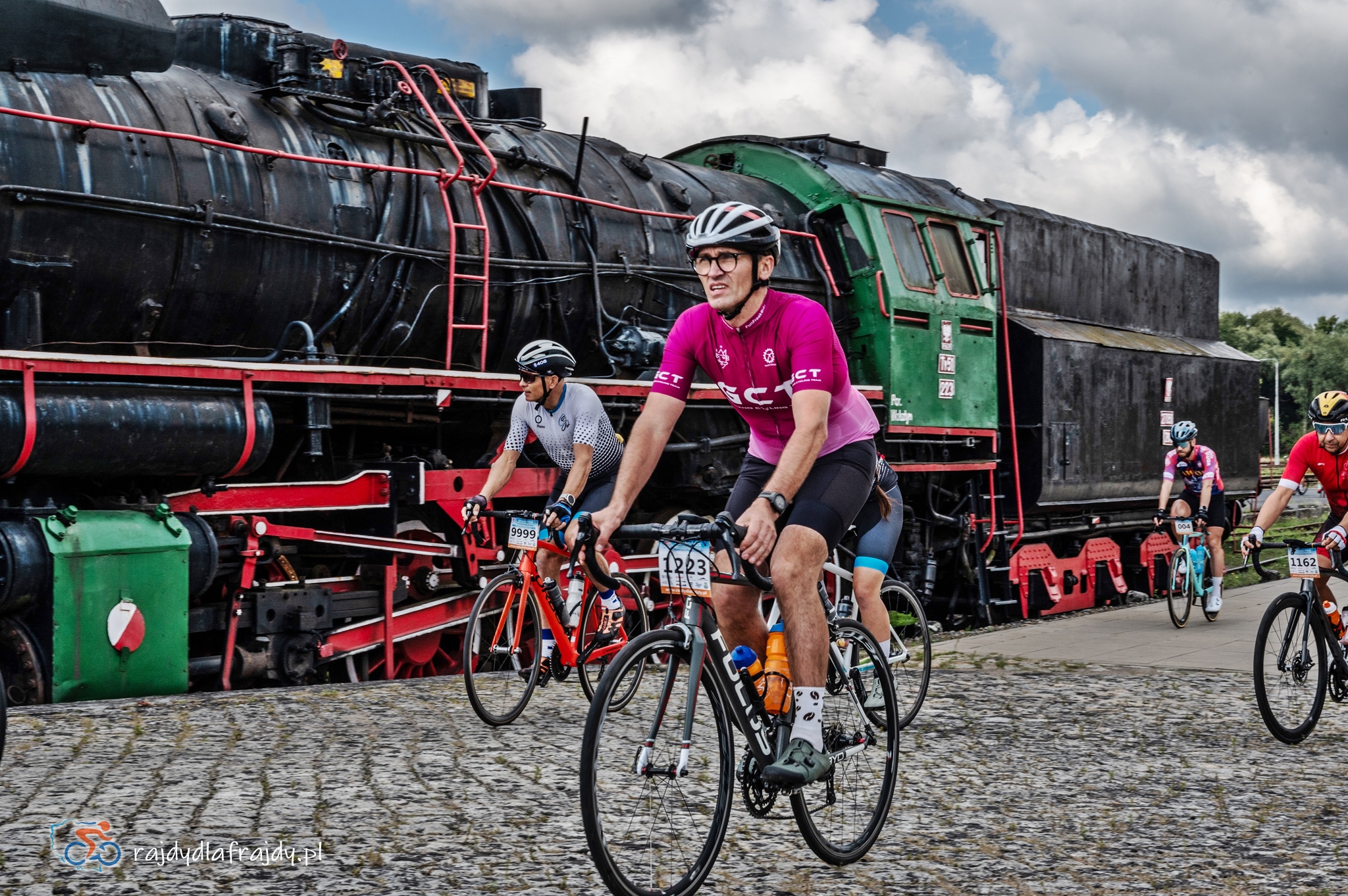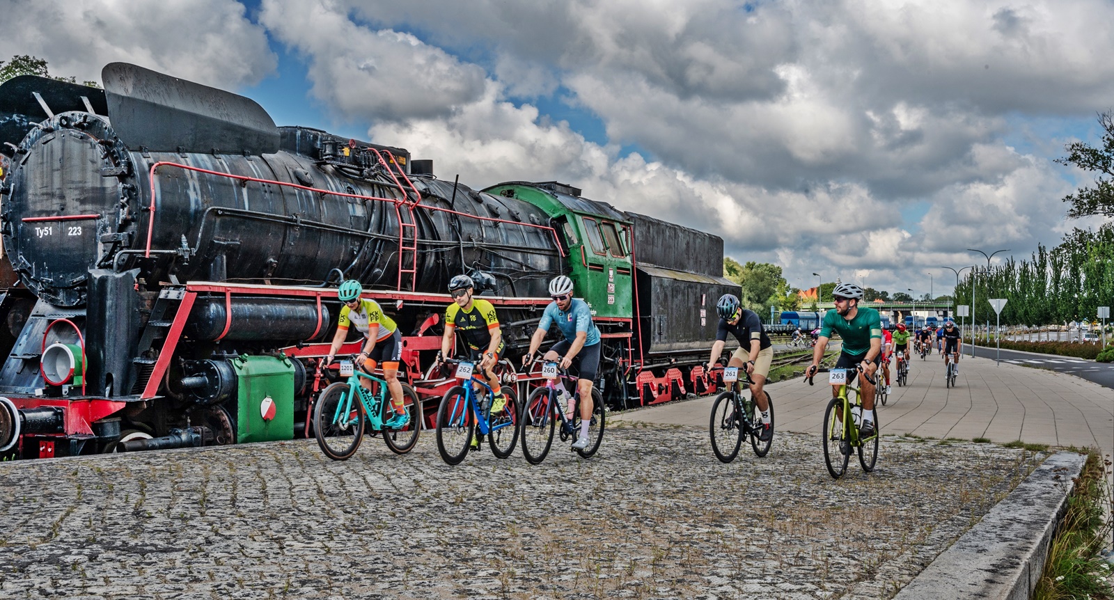 Mając na względzie niewysoki stopień trudności okolicznych tras – może faktycznie tak by się stało. Ale po honorowym przejeździe ulicami Miasta kolarskie grono zawitało do słynnej na cały świat Parowozowni. Tam wystarczyło raptem kilka chwil, by na brukowanej rampie cała para weszła w nogi i na nowo tchnęła w Uczestników sportowego ducha 💪💪 I choć gwar rozmów nie ucichł, a ogólna wesołość bynajmniej nie ustąpiła – to ruszyła do przodu wielka maszyna! Tym razem lekko i żwawo (a nie ociężale) – i po szerokim asfalcie (zamiast po szynach).