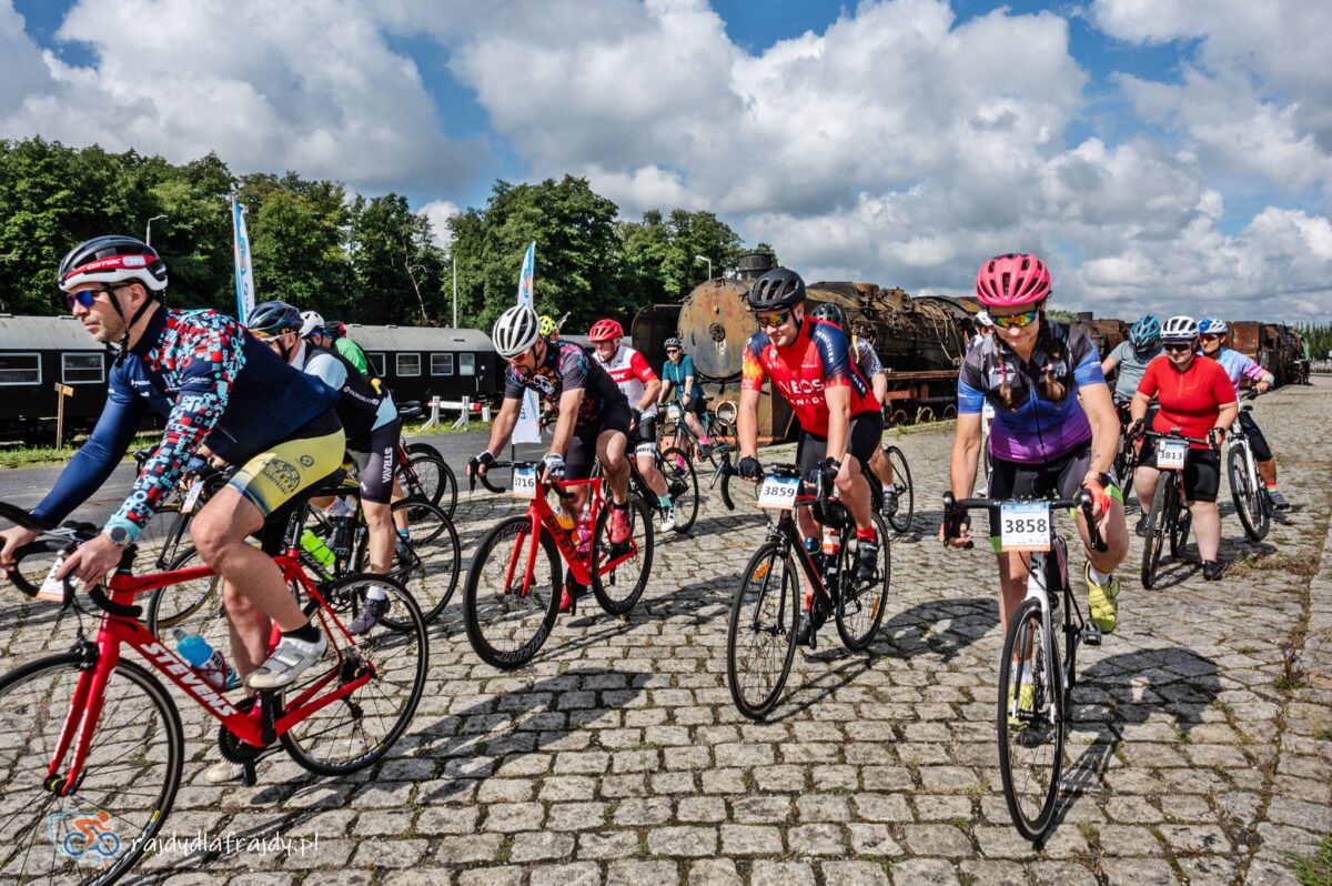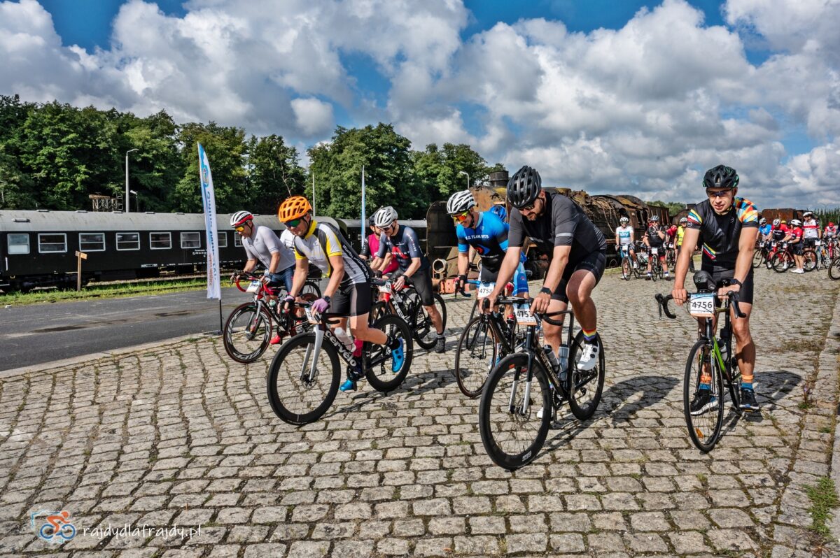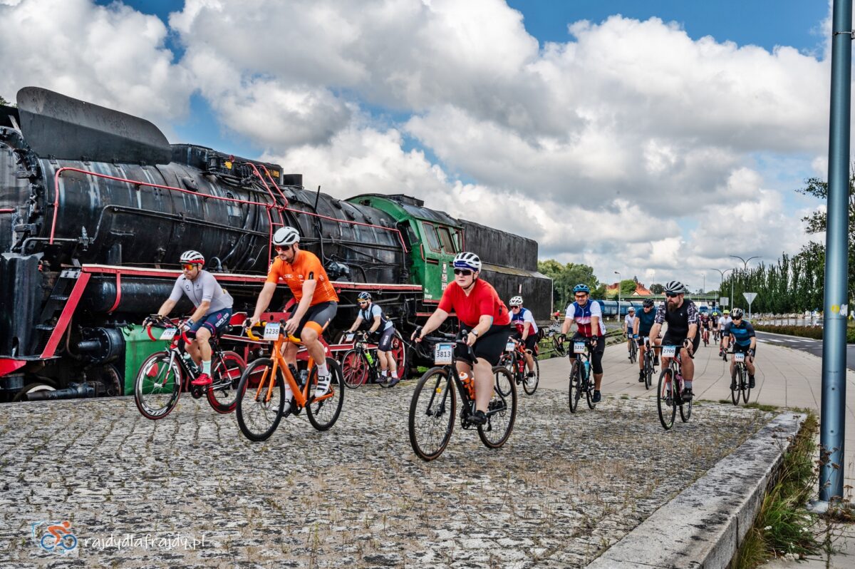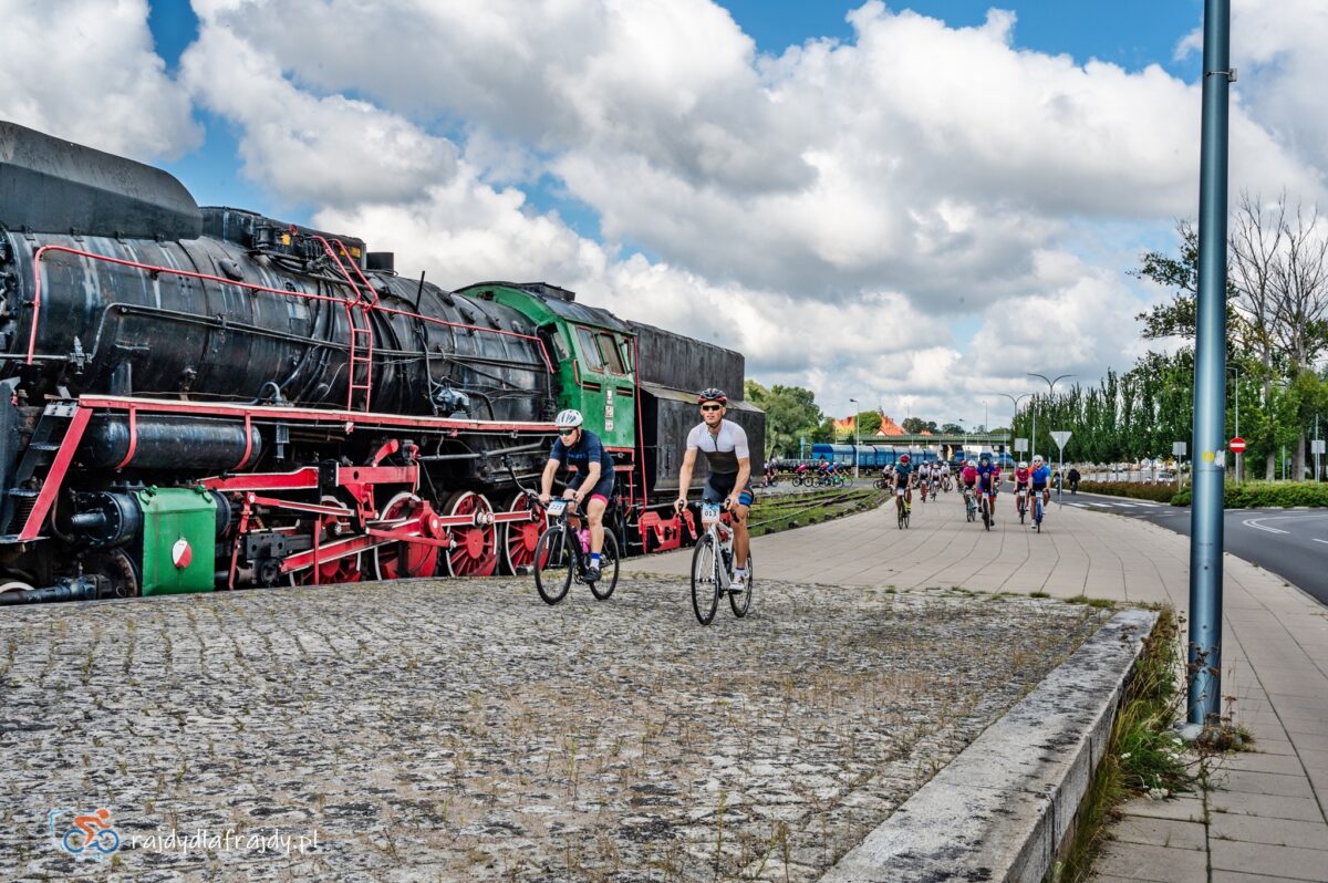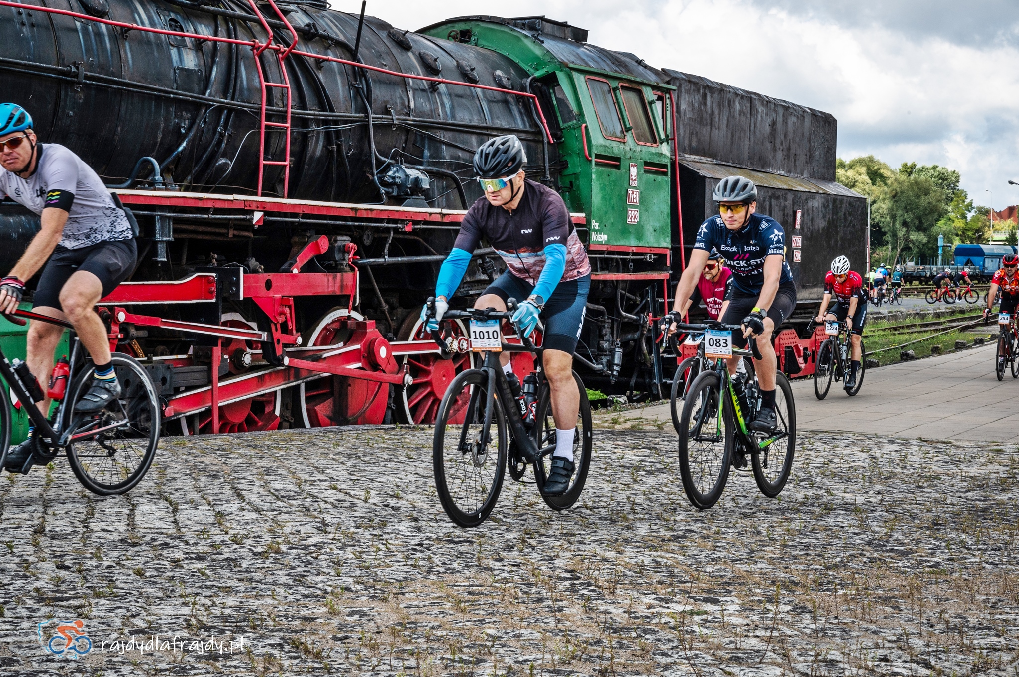 Mając na względzie niewysoki stopień trudności okolicznych tras – może faktycznie tak by się stało. Ale po honorowym przejeździe ulicami Miasta kolarskie grono zawitało do słynnej na cały świat Parowozowni. Tam wystarczyło raptem kilka chwil, by na brukowanej rampie cała para weszła w nogi i na nowo tchnęła w Uczestników sportowego ducha 💪💪 I choć gwar rozmów nie ucichł, a ogólna wesołość bynajmniej nie ustąpiła – to ruszyła do przodu wielka maszyna! Tym razem lekko i żwawo (a nie ociężale) – i po szerokim asfalcie (zamiast po szynach).