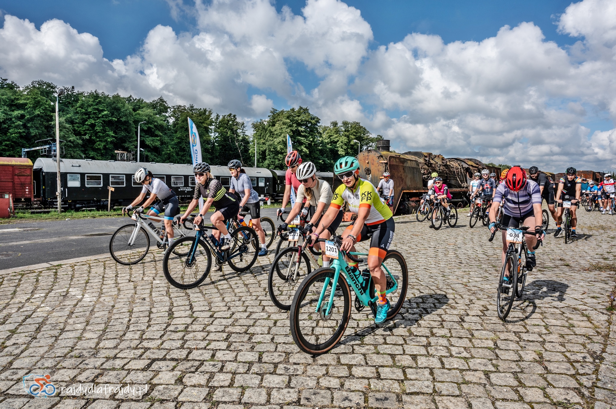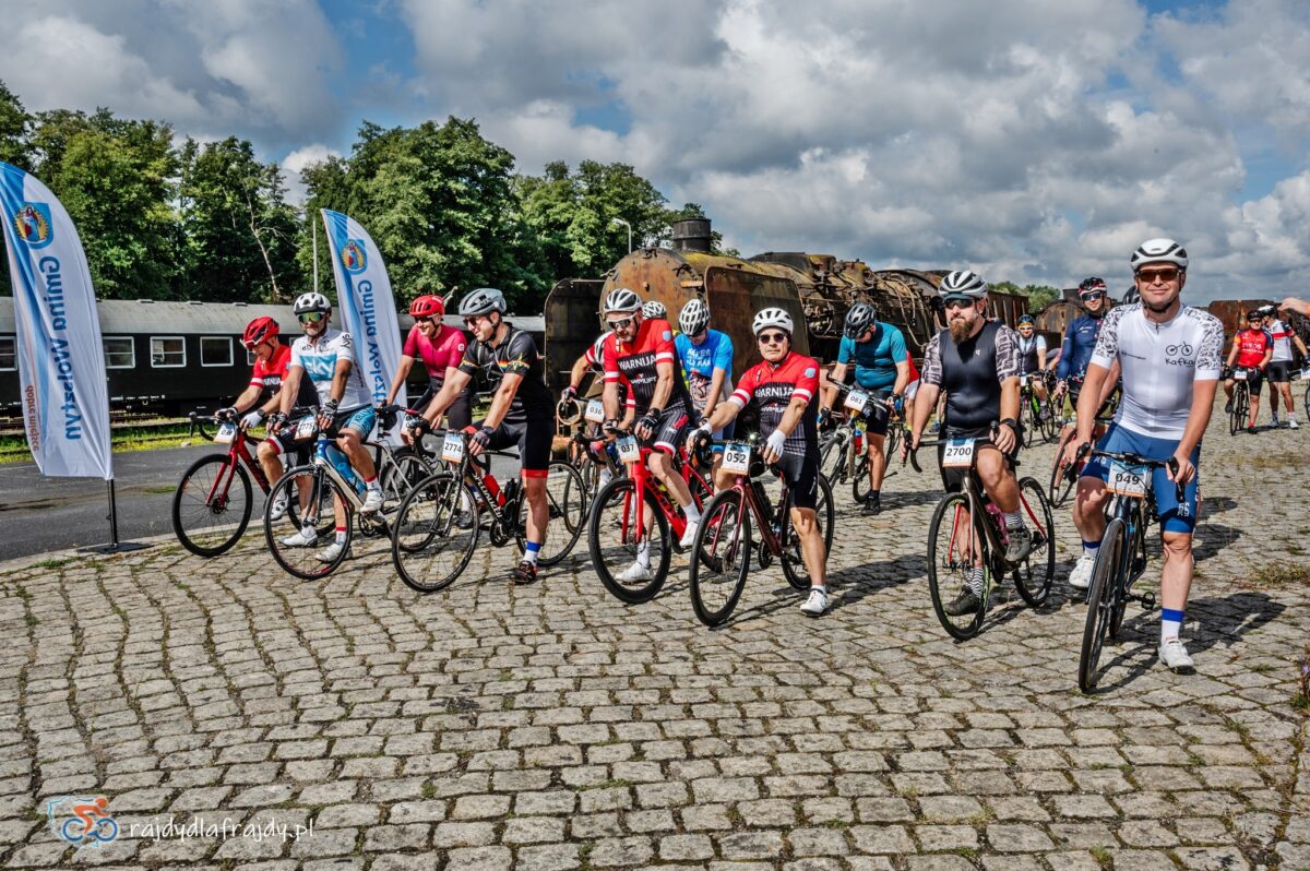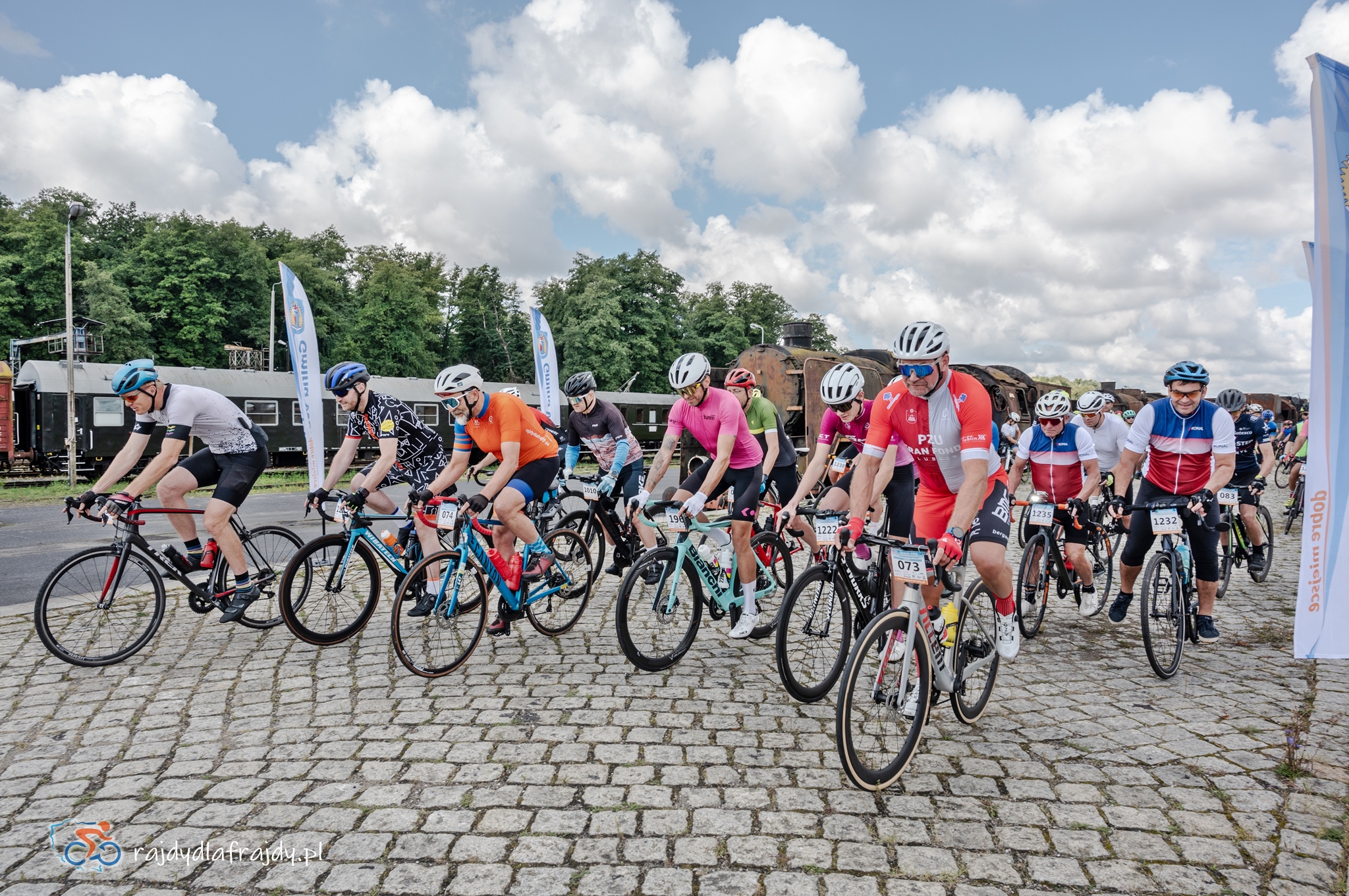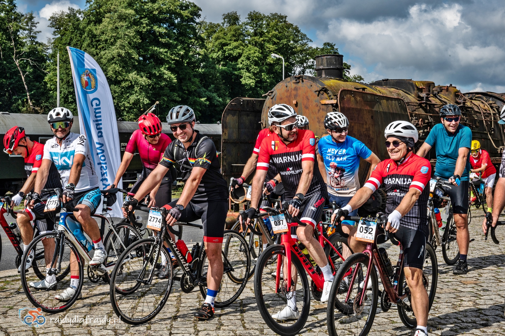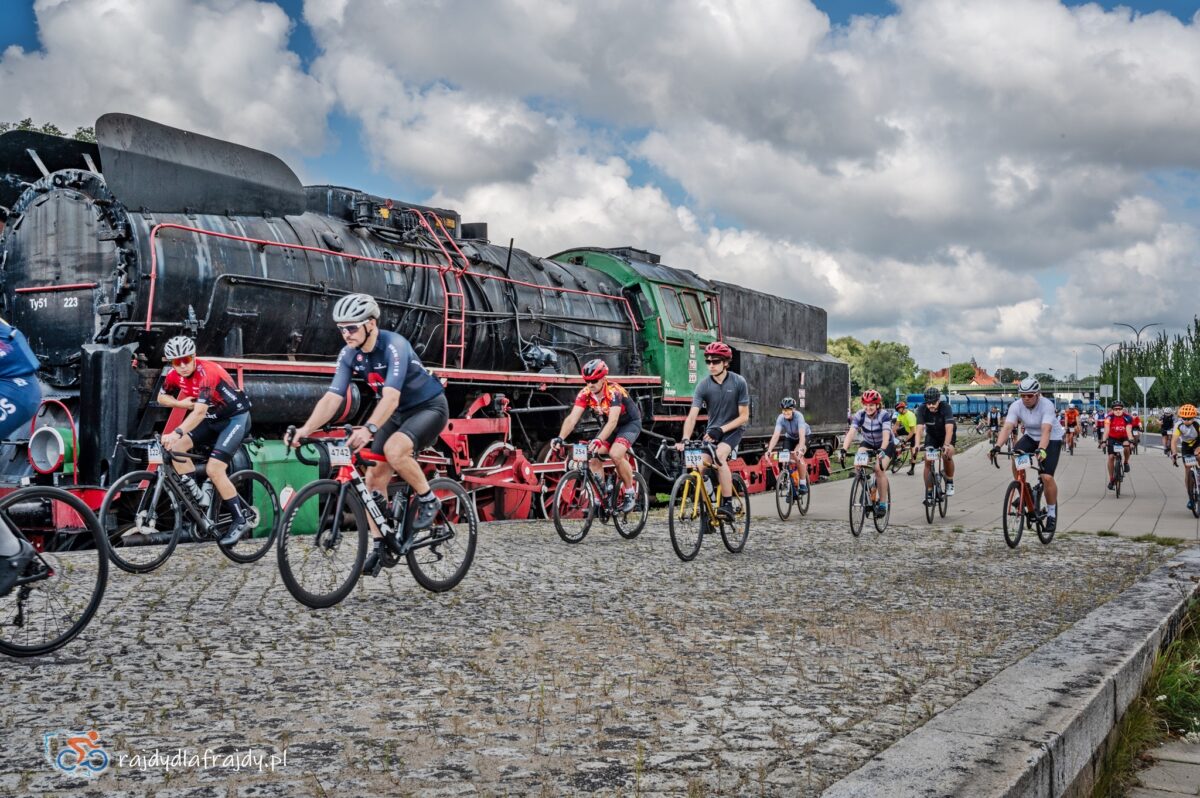 Mając na względzie niewysoki stopień trudności okolicznych tras – może faktycznie tak by się stało. Ale po honorowym przejeździe ulicami Miasta kolarskie grono zawitało do słynnej na cały świat Parowozowni. Tam wystarczyło raptem kilka chwil, by na brukowanej rampie cała para weszła w nogi i na nowo tchnęła w Uczestników sportowego ducha 💪💪 I choć gwar rozmów nie ucichł, a ogólna wesołość bynajmniej nie ustąpiła – to ruszyła do przodu wielka maszyna! Tym razem lekko i żwawo (a nie ociężale) – i po szerokim asfalcie (zamiast po szynach).