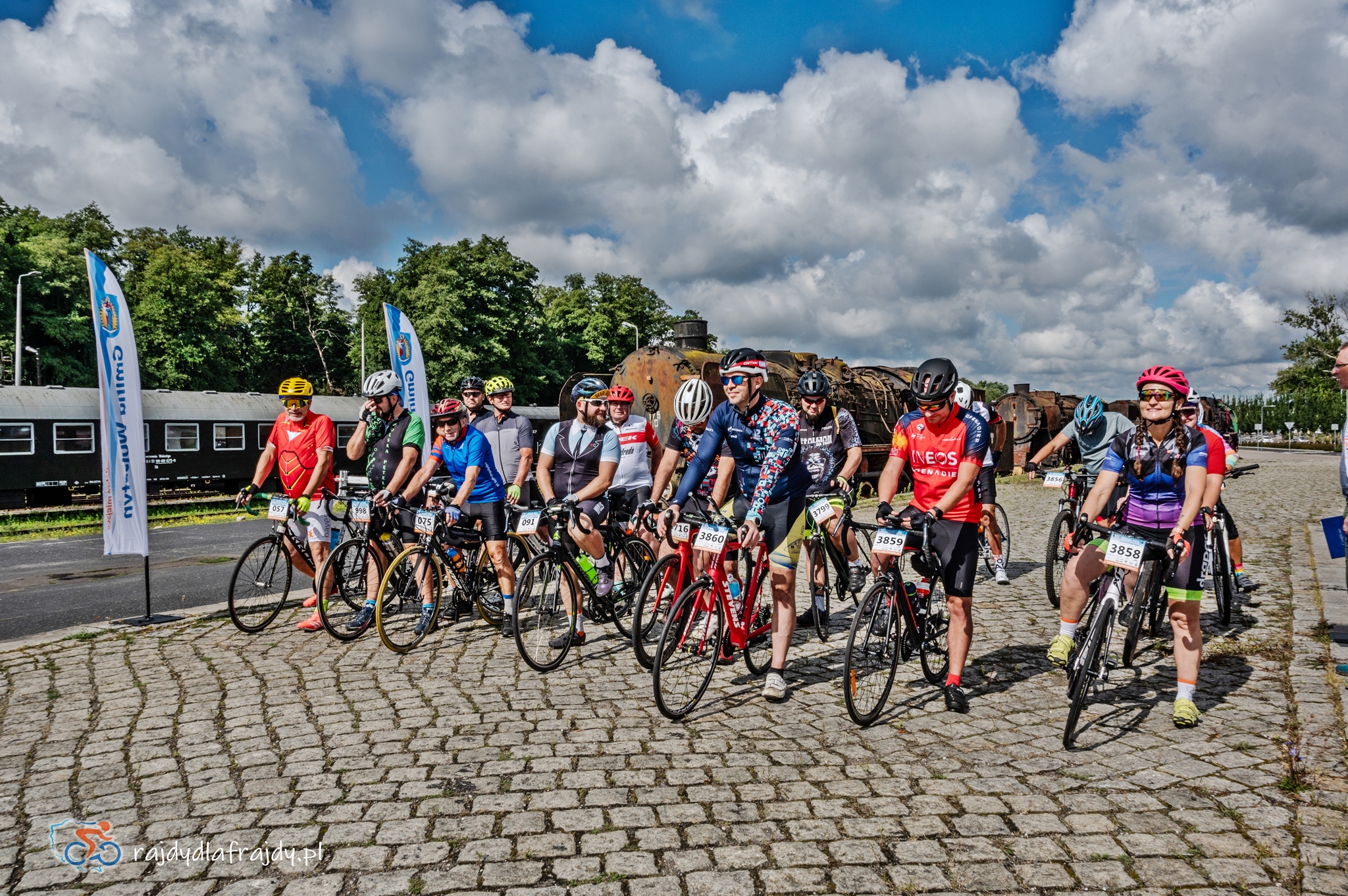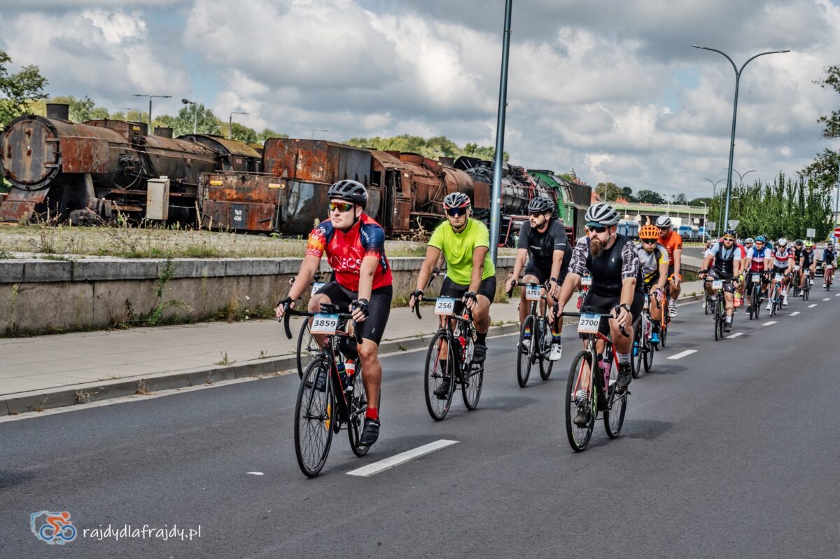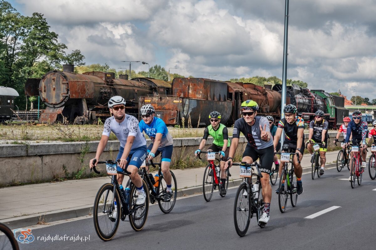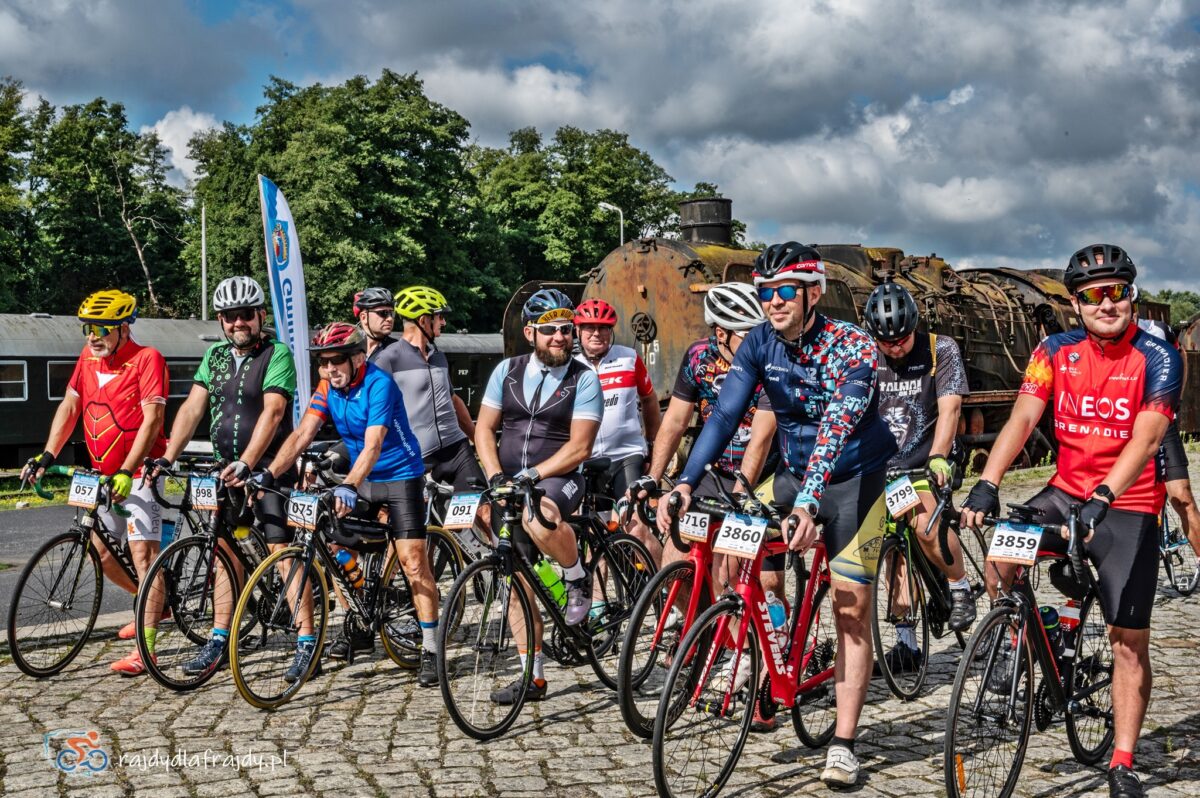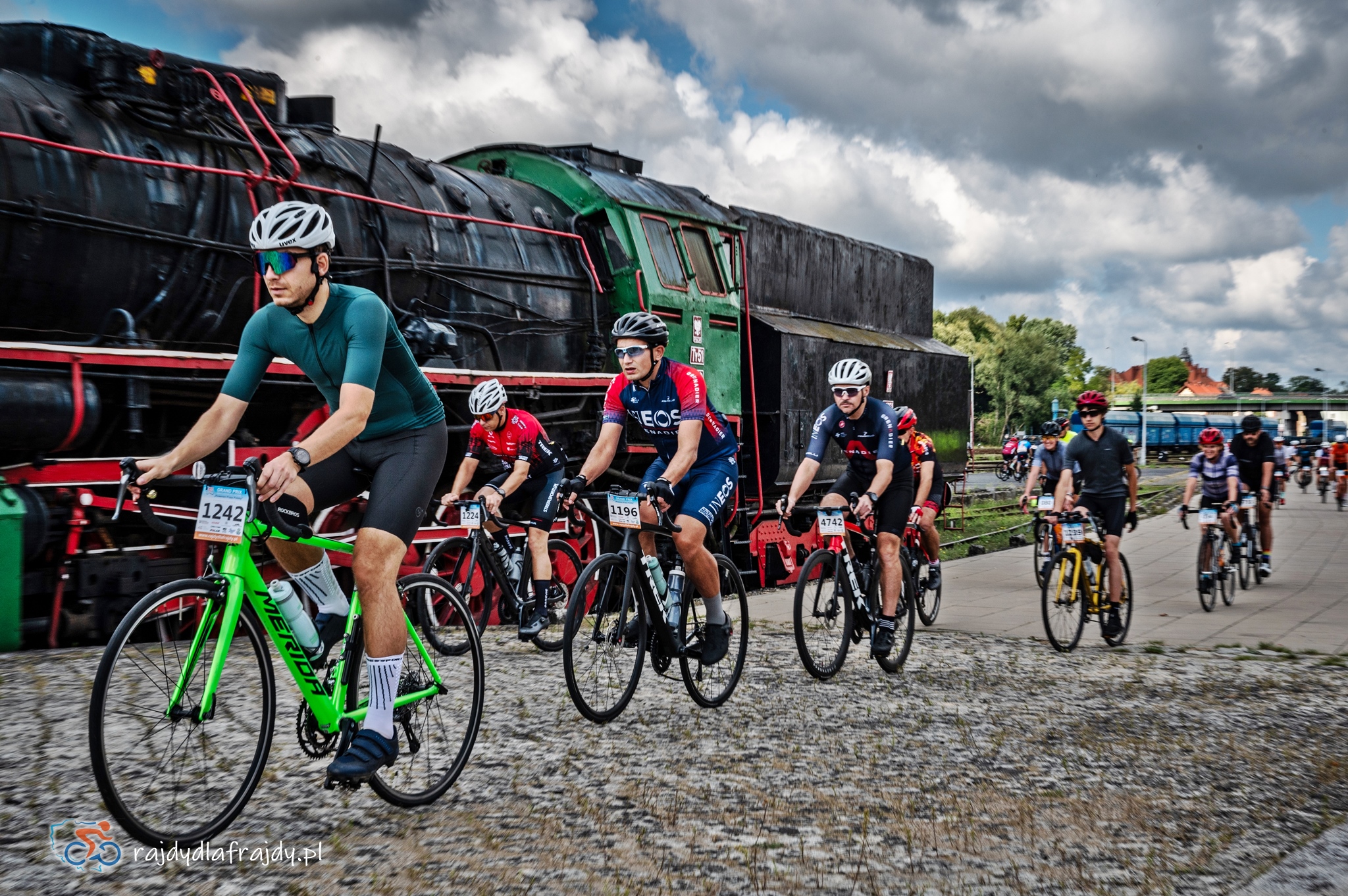 Mając na względzie niewysoki stopień trudności okolicznych tras – może faktycznie tak by się stało. Ale po honorowym przejeździe ulicami Miasta kolarskie grono zawitało do słynnej na cały świat Parowozowni. Tam wystarczyło raptem kilka chwil, by na brukowanej rampie cała para weszła w nogi i na nowo tchnęła w Uczestników sportowego ducha 💪💪 I choć gwar rozmów nie ucichł, a ogólna wesołość bynajmniej nie ustąpiła – to ruszyła do przodu wielka maszyna! Tym razem lekko i żwawo (a nie ociężale) – i po szerokim asfalcie (zamiast po szynach).