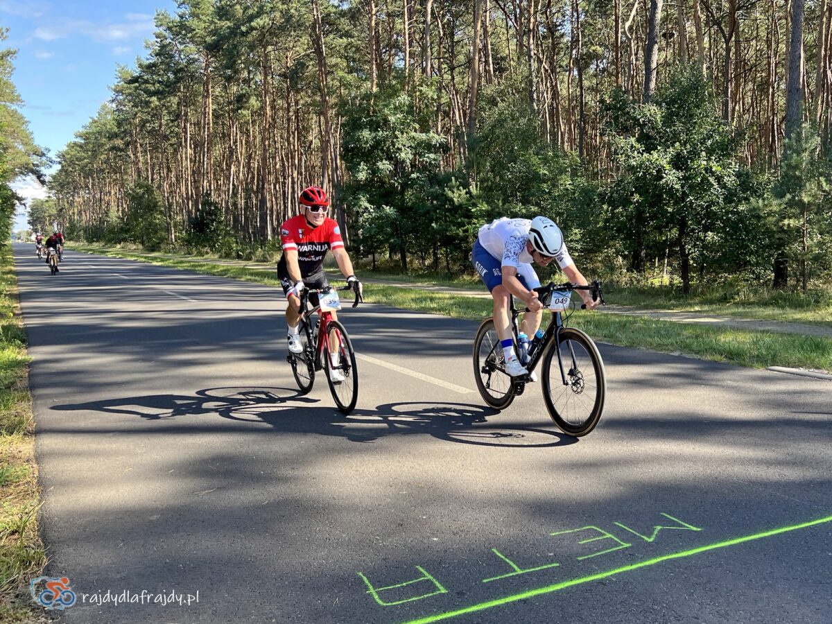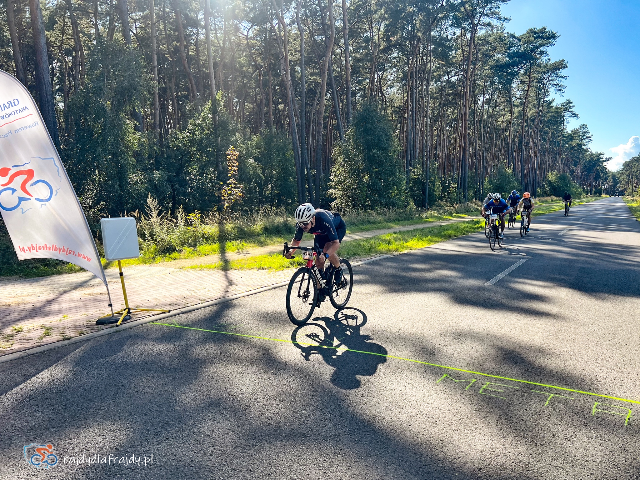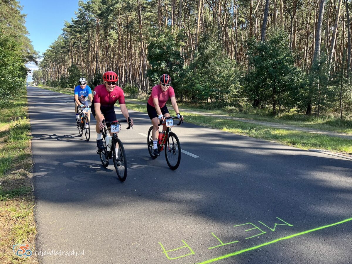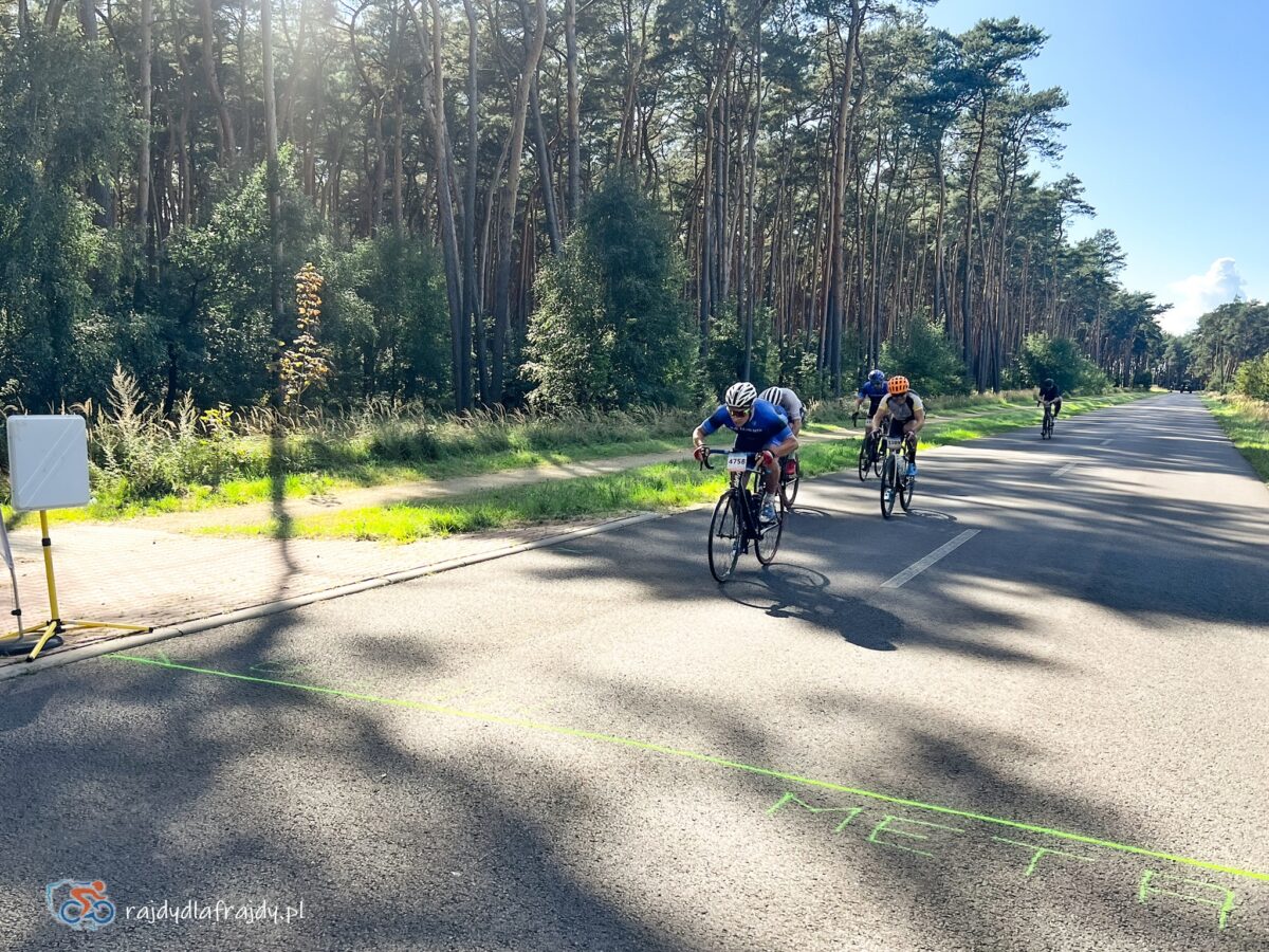 Z upływem czasu okazało się również, że droga wcale nie była aż taka łatwa i prosta, jak się z pozoru wydawało. Przede wszystkim – momentami było zaskakująco kręto, co w połączeniu z licznymi (na szczęście zazwyczaj łatwo omijalnymi) progami zwalniającymi wymagało sporej koncentracji. Poza tym – mimo iż przez przygniatającą większość czasu było płasko i bardzo płasko – tu i ówdzie teren kilka razy delikatnie zafalował, a na mecie ze zdyszanych ust padały takie określenia jak „na podjeździe” czy „pod górę” (:D :D). W końcowym rozrachunku nie mamy jednak pewności, jaki to „falowanie” miało wpływ na końcowe wyniki – bo finiszową kreskę ulokowaną w lasku między Stradyniem a Kębłowem w turbo tempie i z radosnymi okrzykami najczęściej przecinały kilku czy nawet kilkunastoosobowe składy (choć oczywiście pojedyncze wagoniki też się zdarzały). Co istotne – całe „ściganie” rozegrane zostało bezpiecznie i z zachowaniem kolarskiego fair-play 🤠👌