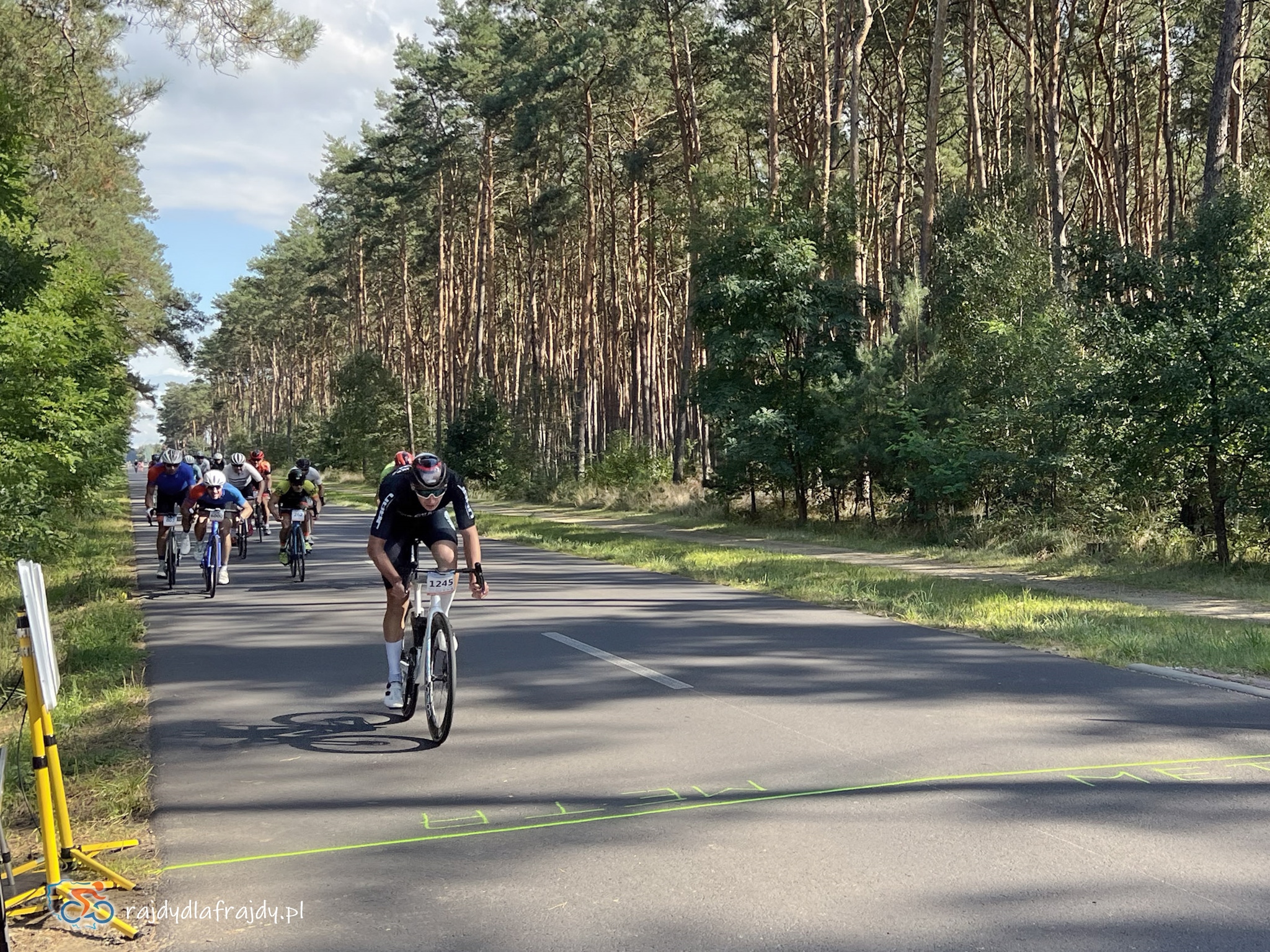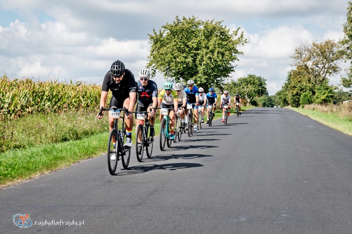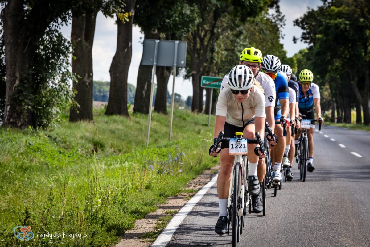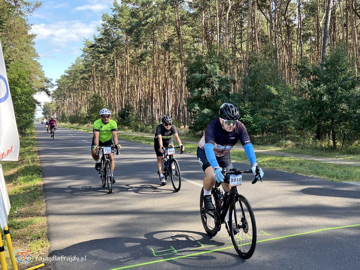 Z upływem czasu okazało się również, że droga wcale nie była aż taka łatwa i prosta, jak się z pozoru wydawało. Przede wszystkim – momentami było zaskakująco kręto, co w połączeniu z licznymi (na szczęście zazwyczaj łatwo omijalnymi) progami zwalniającymi wymagało sporej koncentracji. Poza tym – mimo iż przez przygniatającą większość czasu było płasko i bardzo płasko – tu i ówdzie teren kilka razy delikatnie zafalował, a na mecie ze zdyszanych ust padały takie określenia jak „na podjeździe” czy „pod górę” (:D :D). W końcowym rozrachunku nie mamy jednak pewności, jaki to „falowanie” miało wpływ na końcowe wyniki – bo finiszową kreskę ulokowaną w lasku między Stradyniem a Kębłowem w turbo tempie i z radosnymi okrzykami najczęściej przecinały kilku czy nawet kilkunastoosobowe składy (choć oczywiście pojedyncze wagoniki też się zdarzały). Co istotne – całe „ściganie” rozegrane zostało bezpiecznie i z zachowaniem kolarskiego fair-play 🤠👌