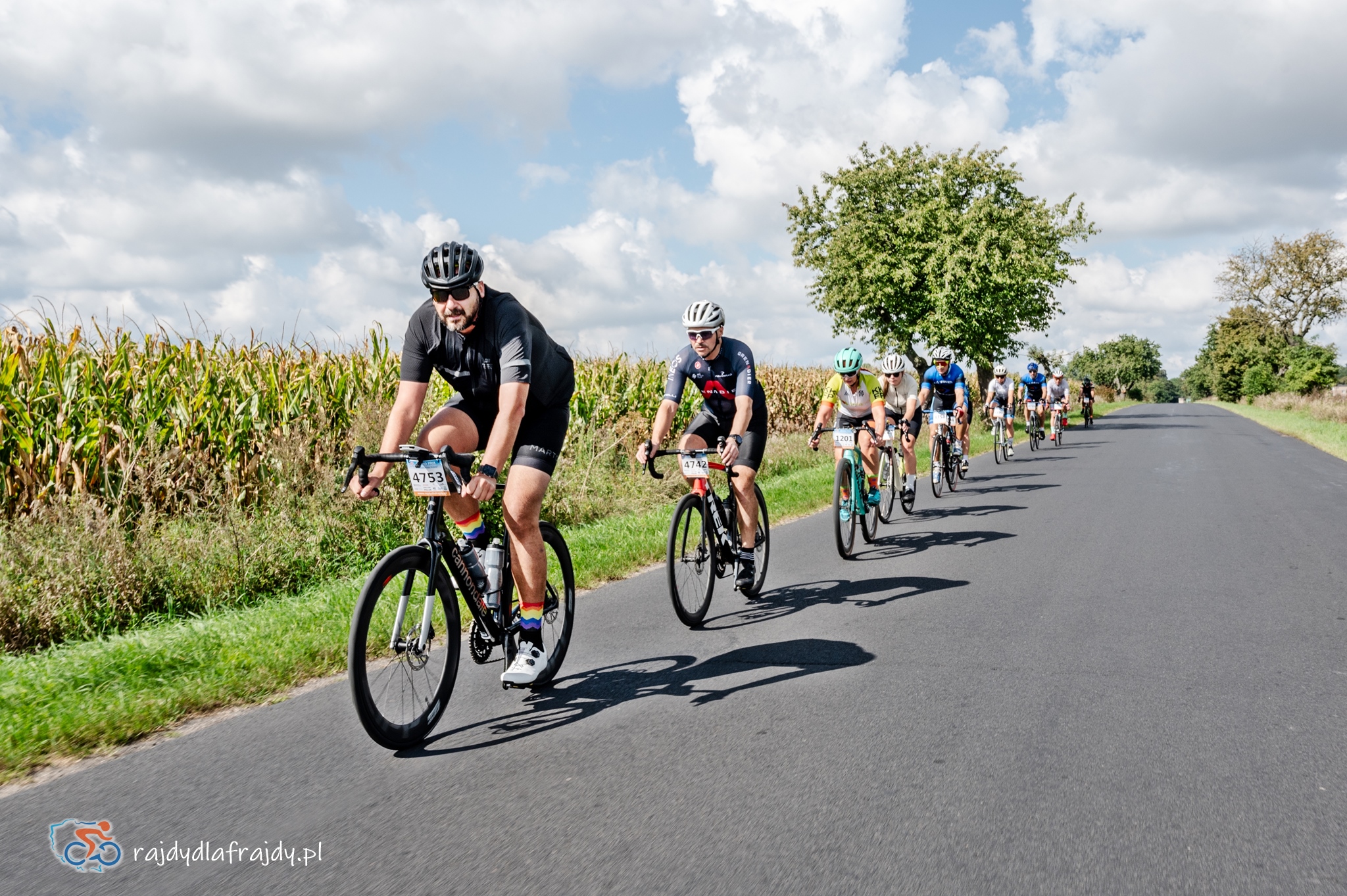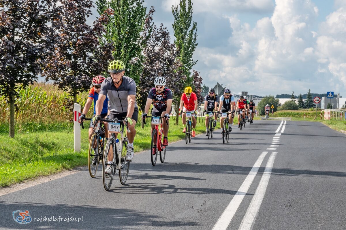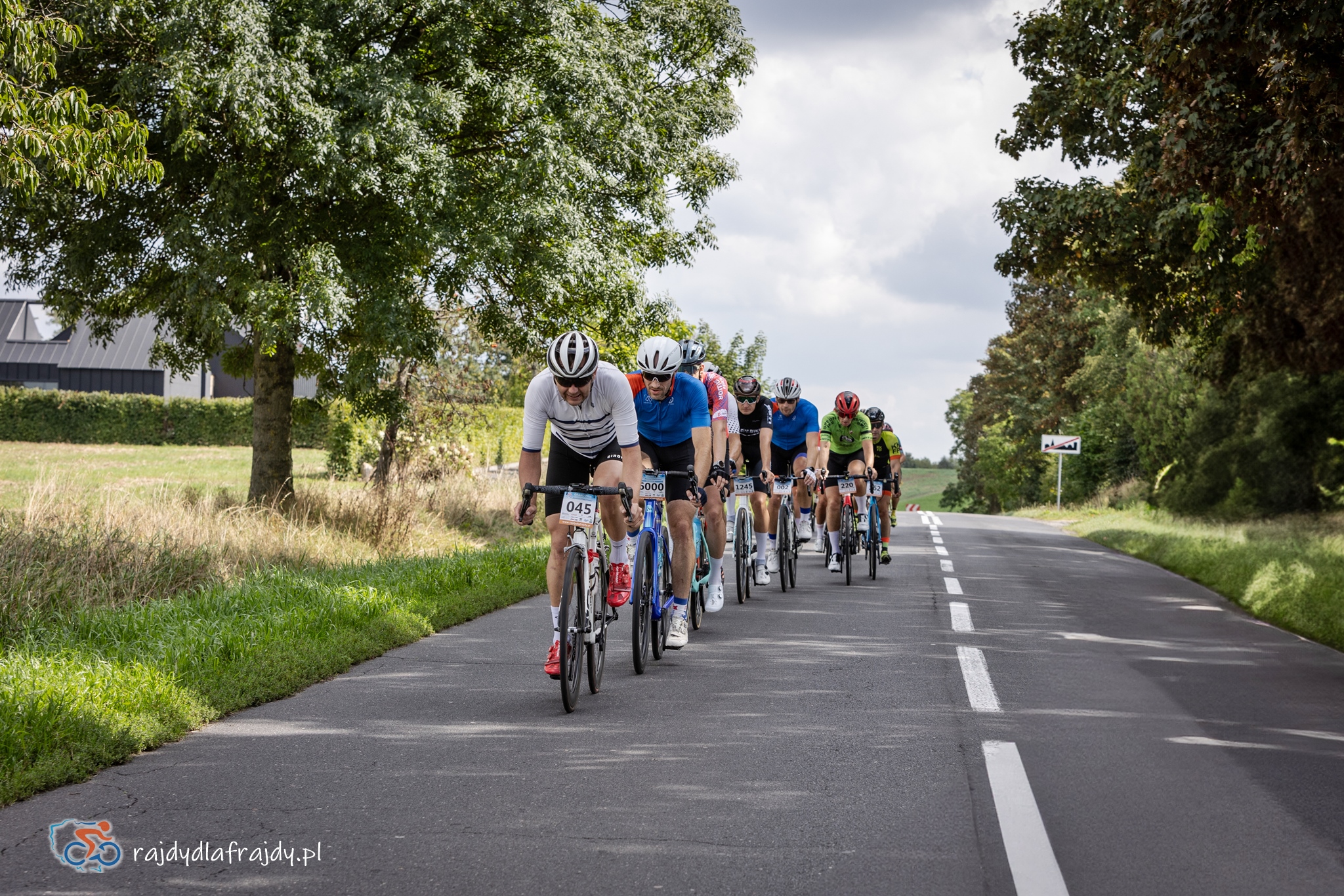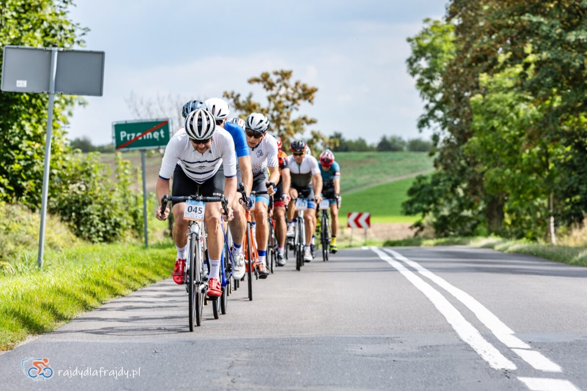 Z upływem czasu okazało się również, że droga wcale nie była aż taka łatwa i prosta, jak się z pozoru wydawało. Przede wszystkim – momentami było zaskakująco kręto, co w połączeniu z licznymi (na szczęście zazwyczaj łatwo omijalnymi) progami zwalniającymi wymagało sporej koncentracji. Poza tym – mimo iż przez przygniatającą większość czasu było płasko i bardzo płasko – tu i ówdzie teren kilka razy delikatnie zafalował, a na mecie ze zdyszanych ust padały takie określenia jak „na podjeździe” czy „pod górę” (:D :D). W końcowym rozrachunku nie mamy jednak pewności, jaki to „falowanie” miało wpływ na końcowe wyniki – bo finiszową kreskę ulokowaną w lasku między Stradyniem a Kębłowem w turbo tempie i z radosnymi okrzykami najczęściej przecinały kilku czy nawet kilkunastoosobowe składy (choć oczywiście pojedyncze wagoniki też się zdarzały). Co istotne – całe „ściganie” rozegrane zostało bezpiecznie i z zachowaniem kolarskiego fair-play 🤠👌