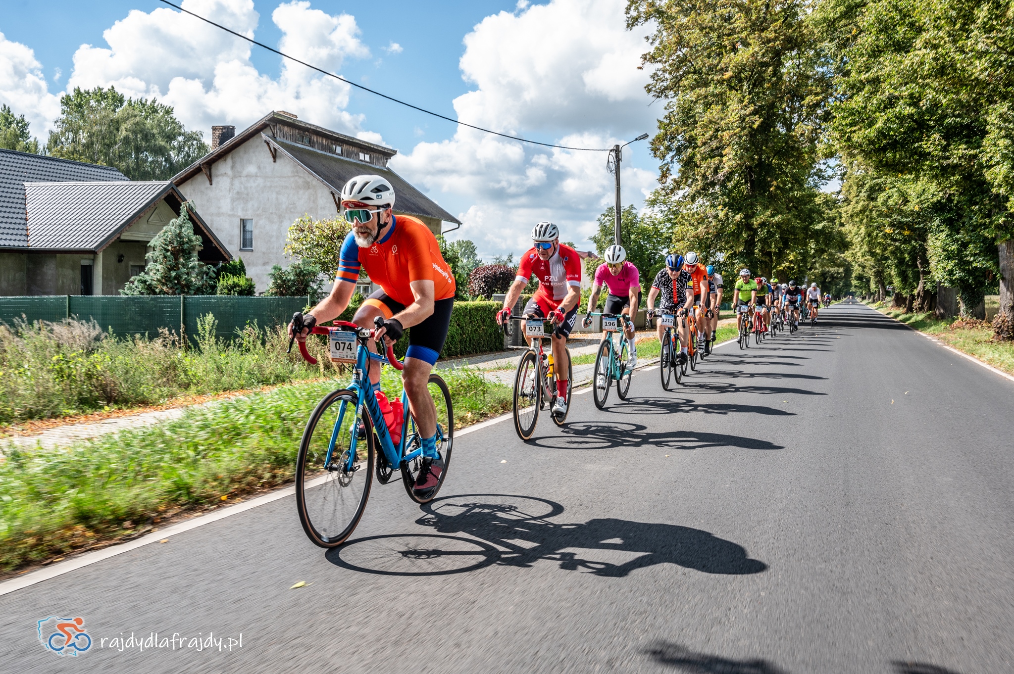 Jak na rozbudowaną siatkę połączeń przystało – opcje do wyboru były trzy: 80, 115 i 150km. Zdecydowana większość postawiła na środkowy dystans (czyli ten z największą domieszką sportowej rywalizacji), ale warianty Podróżniczy i Rekreacyjny też znalazły grona swoich fanów. Tym bardziej że bez względu na kilometraż zwiedzanie tytułowego „Pojezierza Wolsztyńsko-Przemęckiego” przebiegało w dość zbliżonej formie. Na pierwszy plan wysunęły się dające poczucie spokoju i przestrzeni rozległe pola i łąki, a w niektórych miejscowościach witały przypominające o dożynkach rozmaite słomiane konstrukcje, rzeźby i napisy. Sporadycznie trasę przecinały też leśne zagajniki, które często pozwalają złapać oddech od wiatru czy nadmiernie palącego słońca – a przy sprzyjających warunkach stanowią miłe urozmaicenie i odpoczynek dla oczu :)