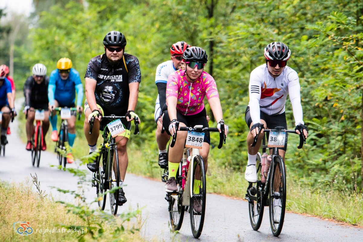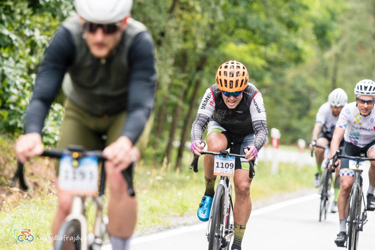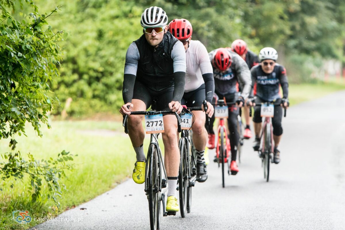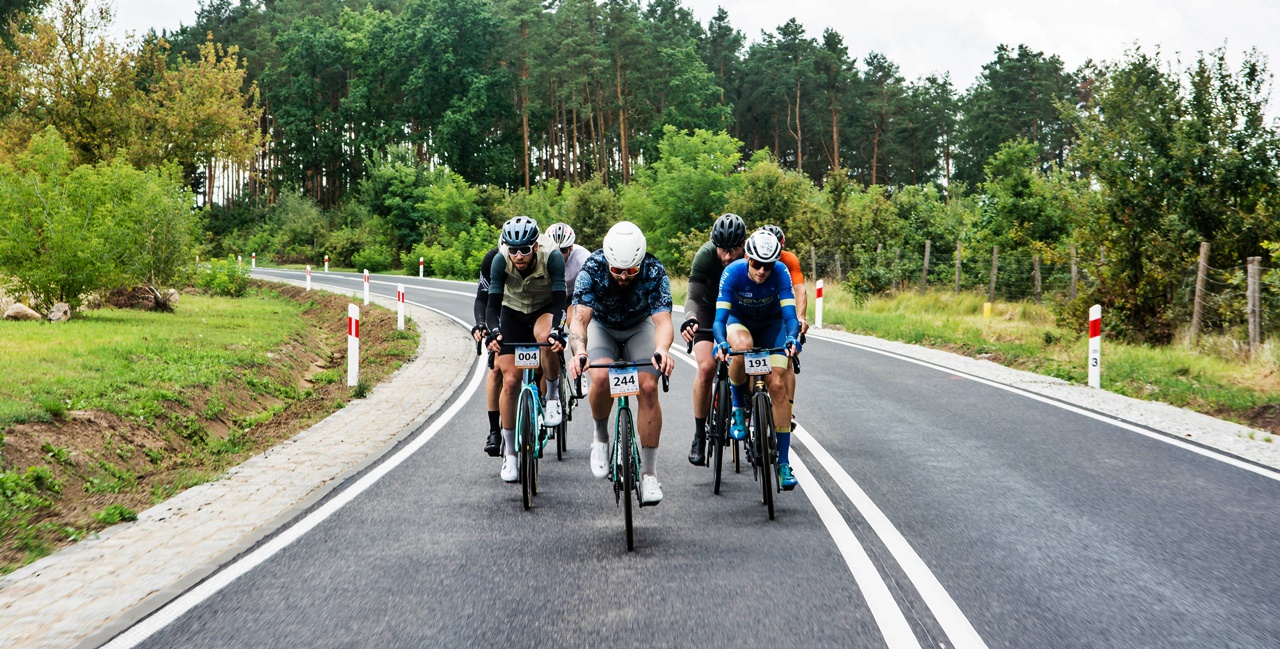 Jako że region jest w większości płaski oraz bardzo płaski, to raz uformowane pociągi w większości przypadków zgodnie pedałowały razem – choć jeśli ktoś się zagapił czy przez nieuwagę puścił koło, to w pojedynkę ciężko było wrócić do grupy! Odczuwalny przyrost prędkości systematycznie zaczął dochodzić do głosu na końcowych 40 km (które znów były wspólne dla wszystkich). Na szeroko rozpostartych skrzydłach udało się przefrunąć po niedawno wybudowanej i połączonej nowoczesnym mostem drodze w rejonie Milska – a następnie pod rosnącym naporem konkurentów trzeba było utrzymać moc i tempo na bardziej technicznych i o wiele węższych odcinkach przez Zabór, Dąbrowę i Czarną. Na szczęście niestraszne okazały się lokalne progi zwalniające czy fragmenty o niewyremontowanej jeszcze nawierzchni – i po domknięciu pętli zasadniczej w Niedoradzu można było z ulgą wyjechać na finałową prostą w stronę finiszu na przedmieściach Zielonej Góry i zasłużonej mety w zielonym otoczeniu Ośrodka Sportu w Drzonkowie ![]()