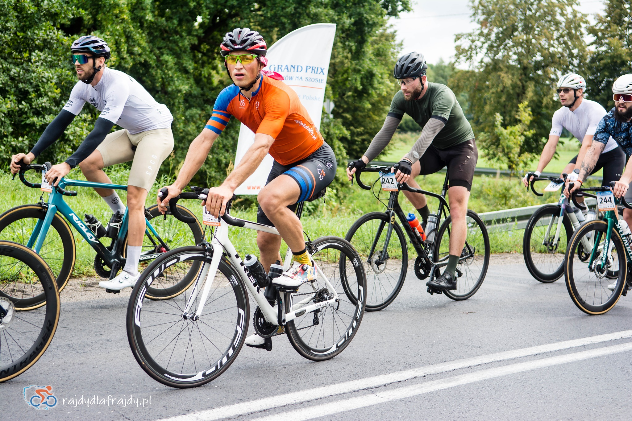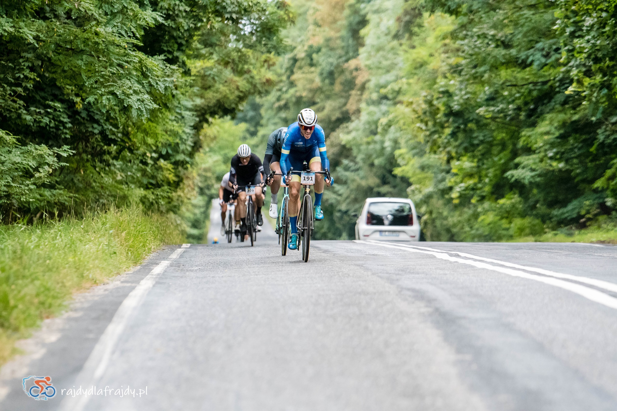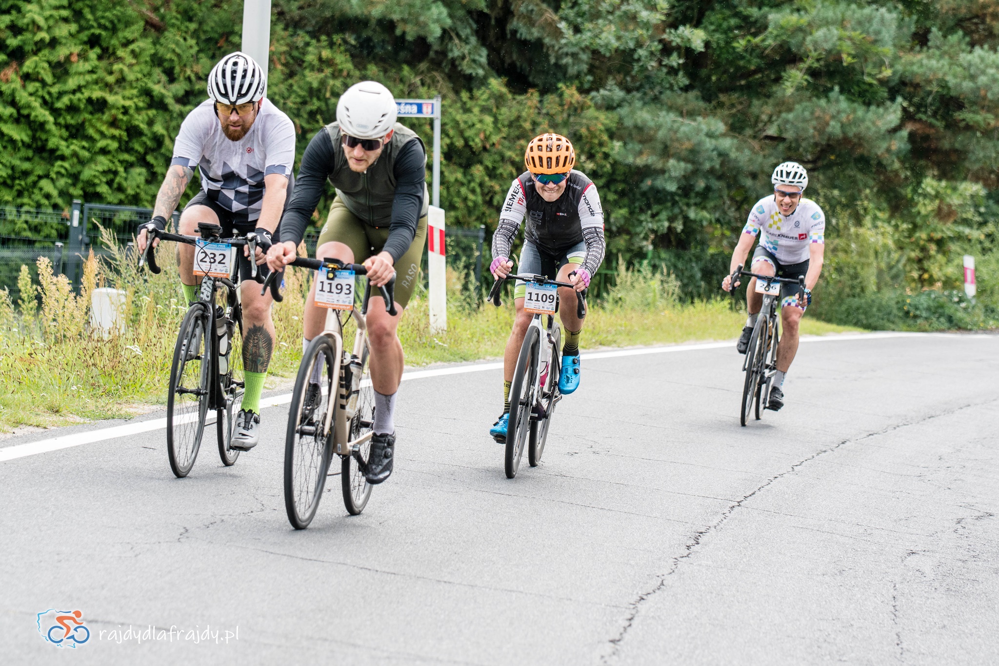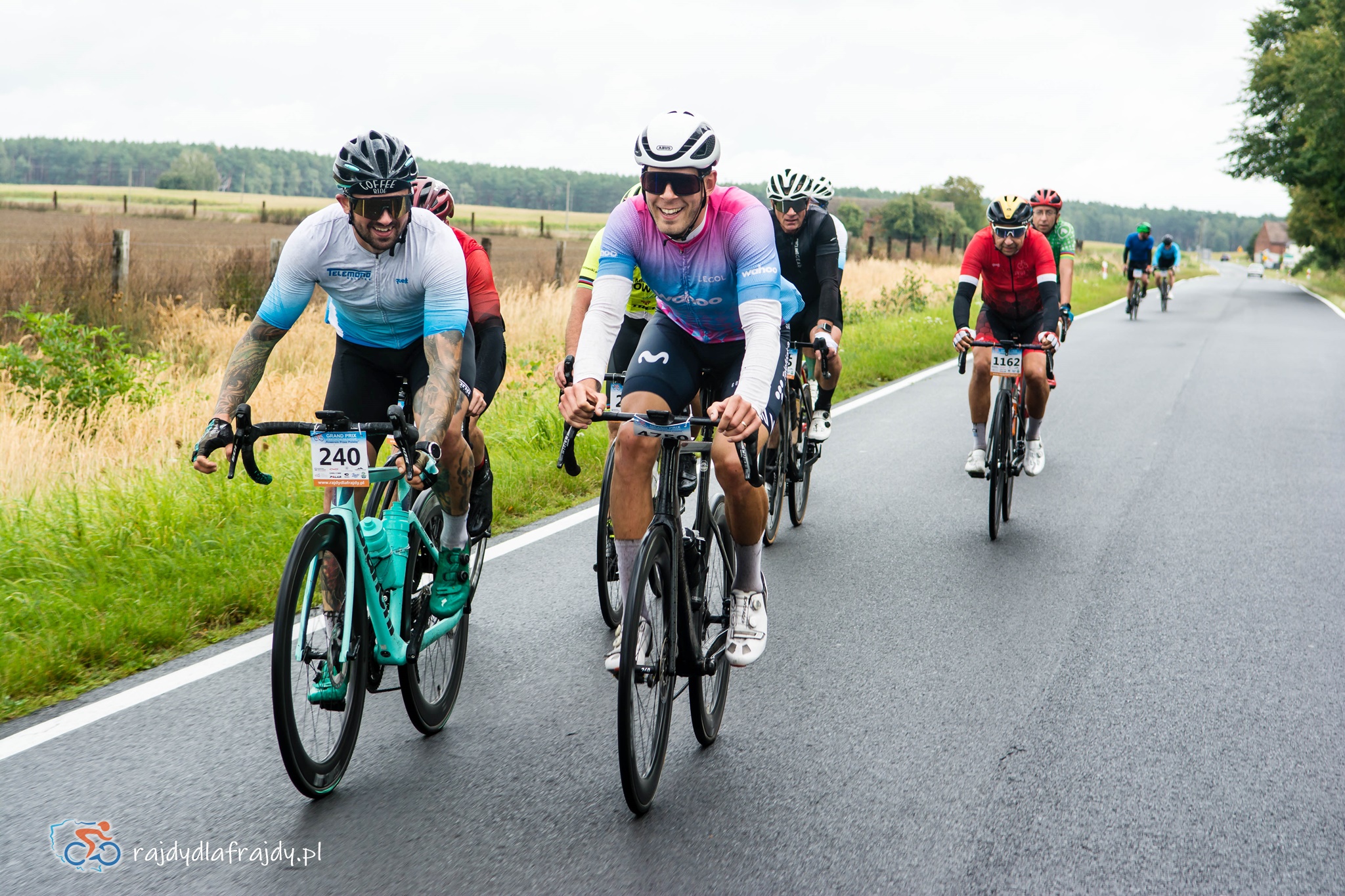Jako że region jest w większości płaski oraz bardzo płaski, to raz uformowane pociągi w większości przypadków zgodnie pedałowały razem – choć jeśli ktoś się zagapił czy przez nieuwagę puścił koło, to w pojedynkę ciężko było wrócić do grupy! Odczuwalny przyrost prędkości systematycznie zaczął dochodzić do głosu na końcowych 40 km (które znów były wspólne dla wszystkich). Na szeroko rozpostartych skrzydłach udało się przefrunąć po niedawno wybudowanej i połączonej nowoczesnym mostem drodze w rejonie Milska – a następnie pod rosnącym naporem konkurentów trzeba było utrzymać moc i tempo na bardziej technicznych i o wiele węższych odcinkach przez Zabór, Dąbrowę i Czarną. Na szczęście niestraszne okazały się lokalne progi zwalniające czy fragmenty o niewyremontowanej jeszcze nawierzchni – i po domknięciu pętli zasadniczej w Niedoradzu można było z ulgą wyjechać na finałową prostą w stronę finiszu na przedmieściach Zielonej Góry i zasłużonej mety w zielonym otoczeniu Ośrodka Sportu w Drzonkowie ![]()