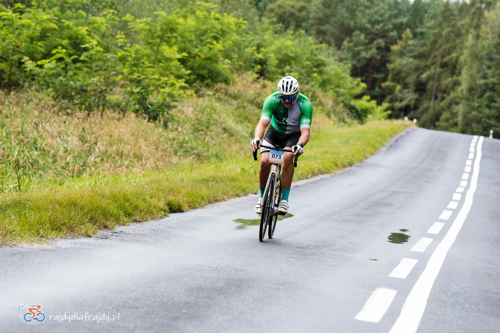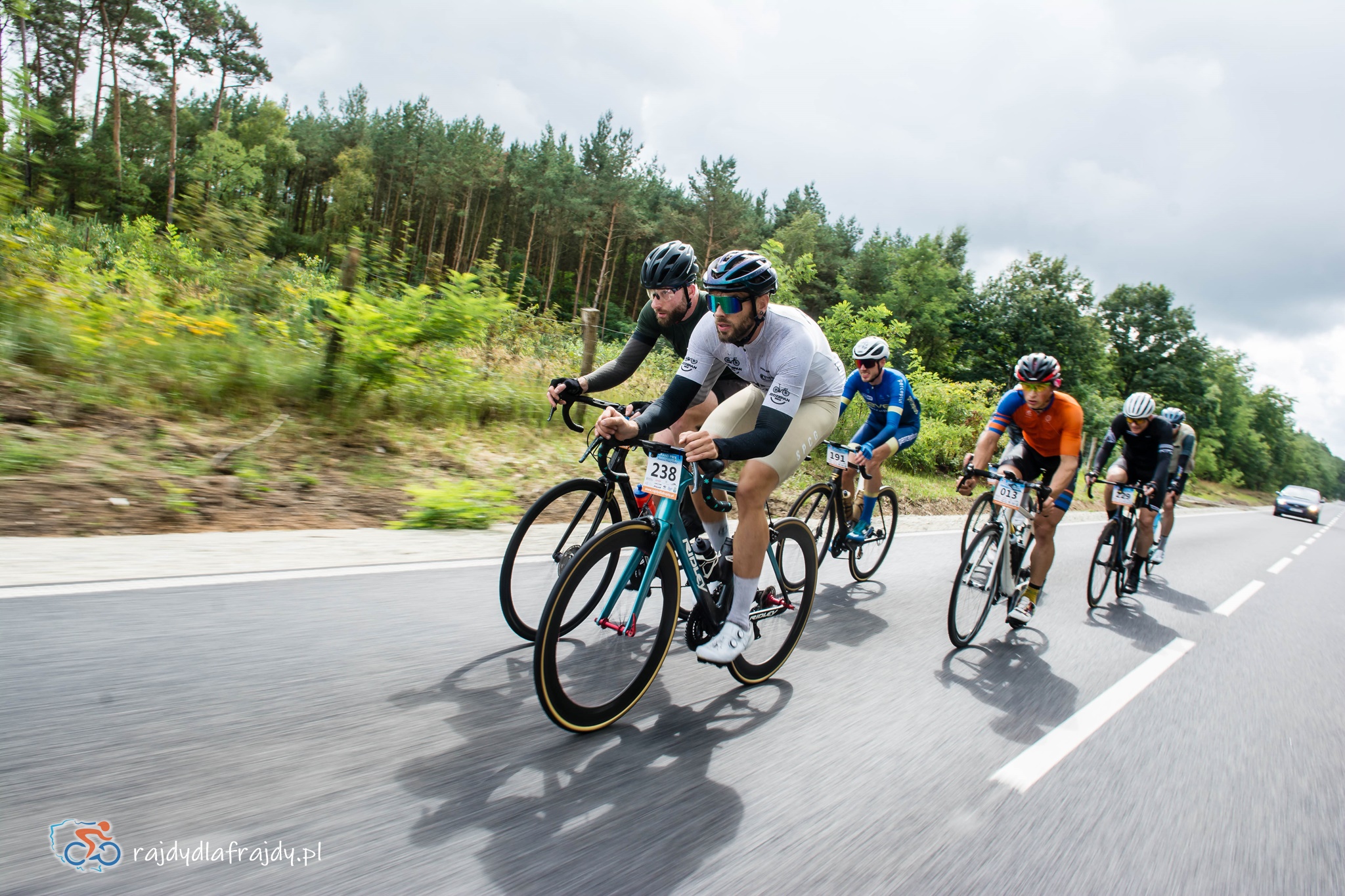 Z podobnym nastawieniem została pomyślana i przygotowana trasa – z początku bardziej rekreacyjna i krajoznawcza, a z upływem dystansu coraz bardziej sprzyjająca sportowej rywalizacji. Osią rajdu była jedna z młodszych atrakcji turystycznych regionu, czyli fragment niemal 50-kilometrowej trasy „Kolej na Rower” – jak łatwo się domyślić – biegnącej po śladzie nieistniejącej już linii kolejowej Żagań-Wolsztyn. Punktem kulminacyjnym całej rowerostrady jest pięknie odrestaurowany, imponujących rozmiarów drewniany most na Odrze, oddalony od stolicy województwa o nieco ponad 20km. Najłatwiej dotrzeć nań na 2 kołach lub ewentualnie pieszo – samochodów w promieniu 2-3 kilometrów raczej nie sposób uświadczyć. Spokojniejsza część peletonu jazdę w takich lekko spowolnionych, ale jednocześnie „odizolowanych” warunkach przyjęła z szerokim uśmiechem (niektórzy byli nawet chętni tak żeglować aż do mety). Natomiast ci jadący z przodu niecierpliwie zaczynali wypatrywać sposobności do podkręcenia tempa i bardziej szybkościowych wrażeń.